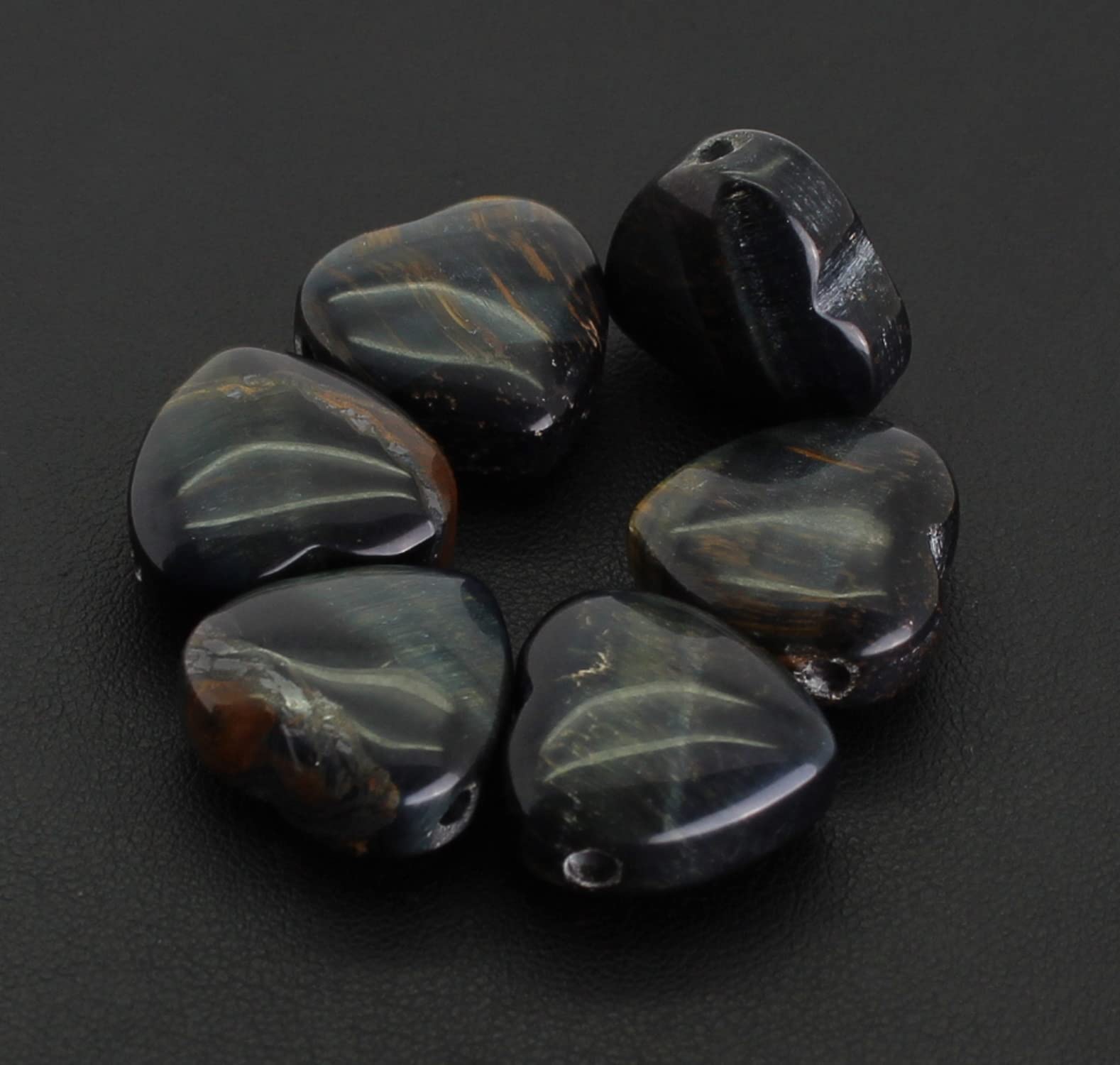 Falkenauge Herz Anhänger gebohrt ca. 20 x 20 mm – inkl. 1 m schwarzes Lederband – Edelstein Schmuck – Naturstein Herzanhänger – Lieferung im Organza Beutel