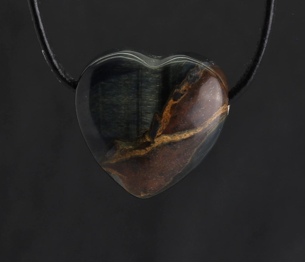 Herzanhänger aus echtem Falkenauge: Der Anhänger besteht aus poliertem, natürlichen Falkenauge in Herzform – mit faszinierendem seidigem Glanz und individueller Maserung.