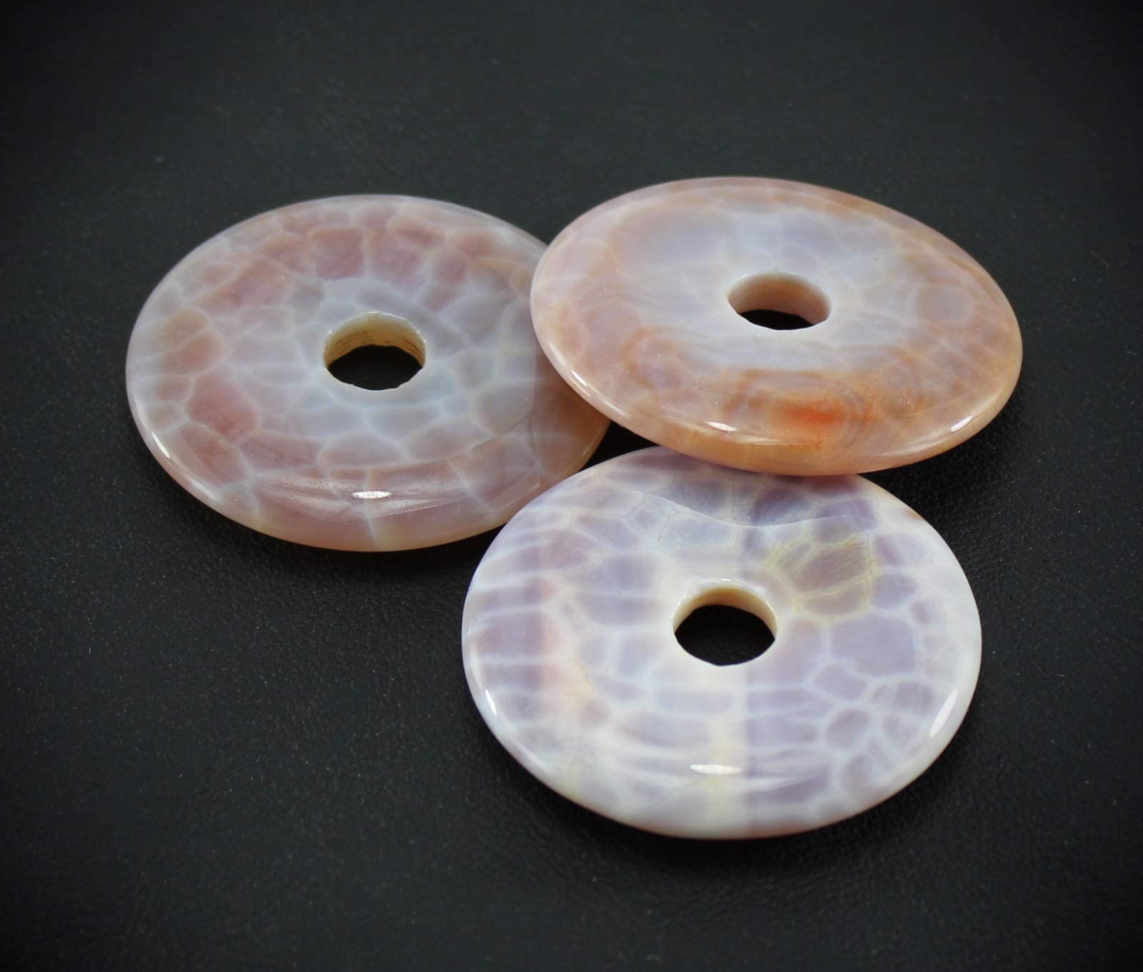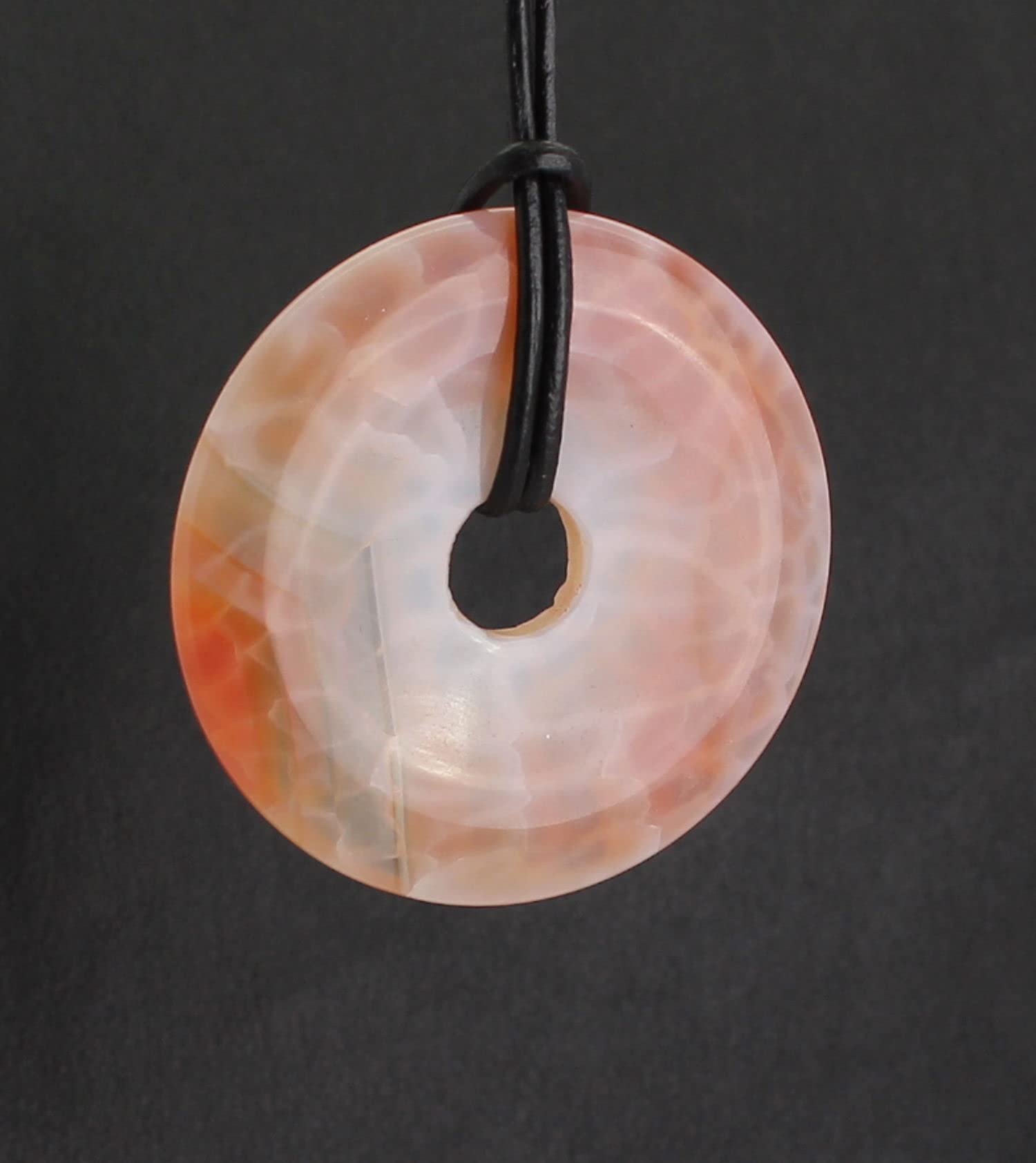 Feuerachat Donut Anhänger Kettenanhänger 40 mm mit Lederband