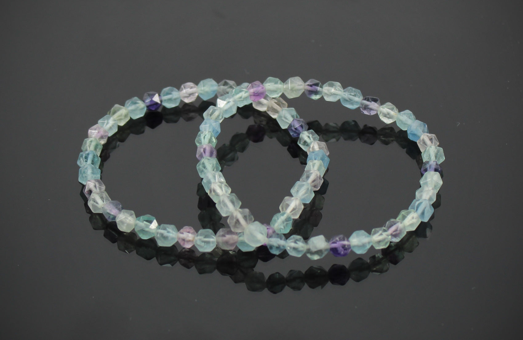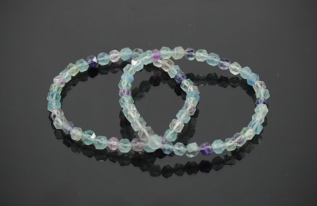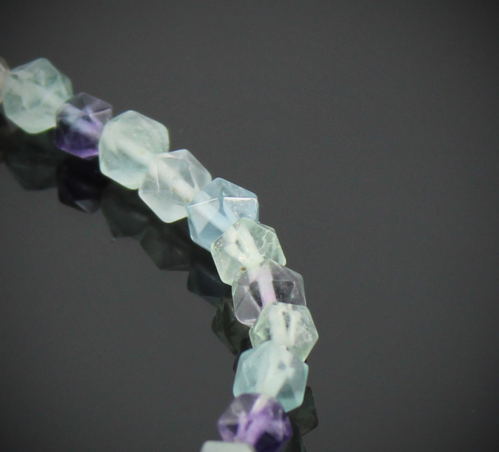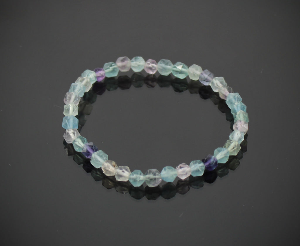 Regenbogen Fluorit Armband Stretcharmband Perlen facettiert auf Stretchband