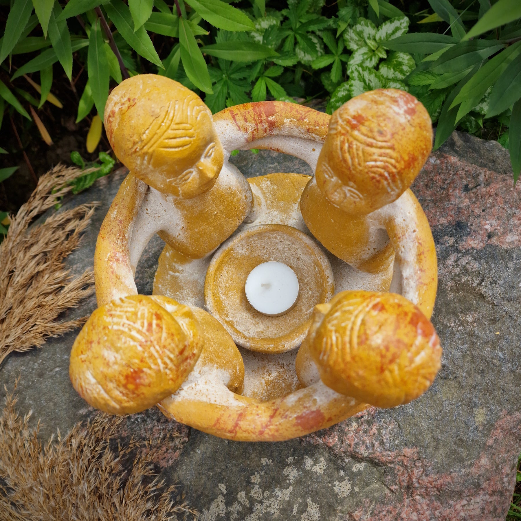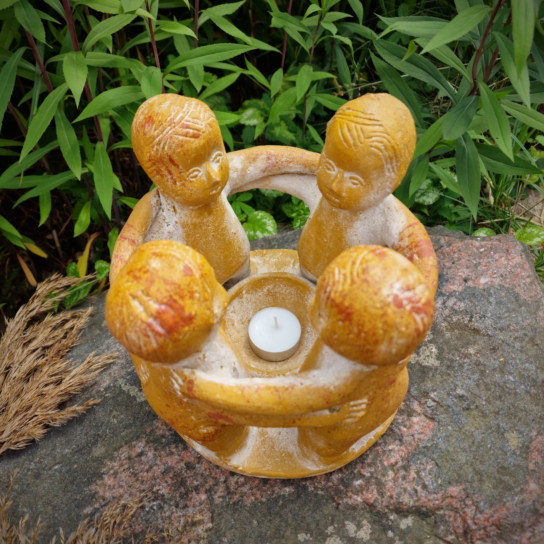 - Rundum-Design: Die Figuren sind zu einem Kreis verbunden und halten sich fest, was die Kreisform und das Motiv der Einheit symbolisiert. / Vielseitige Verwendung: Kann als Dekoration, Teelichthalter oder spirituelles Symbol für Zusammengehörigkeit genutzt werden.