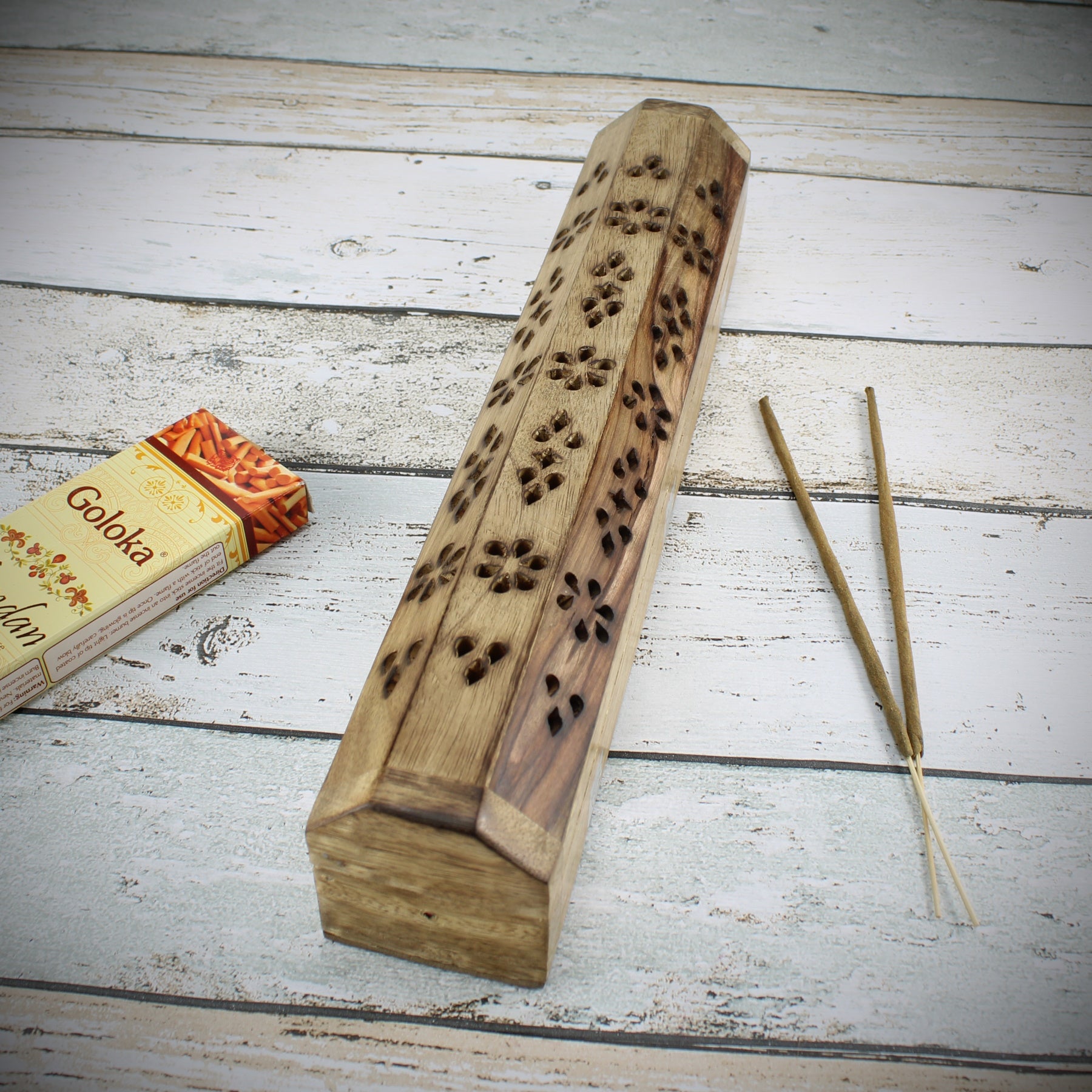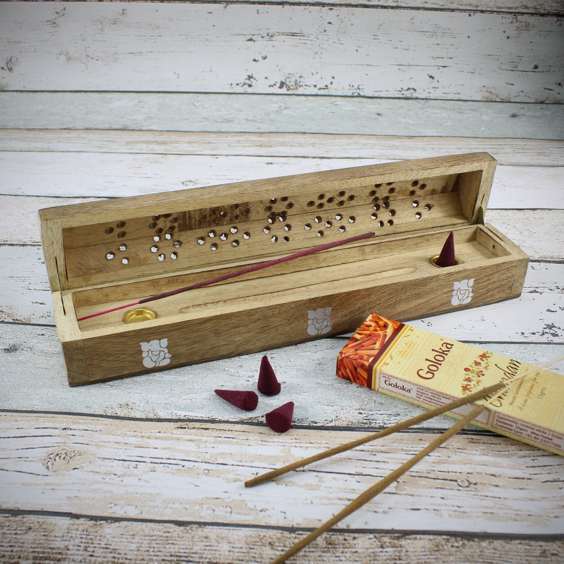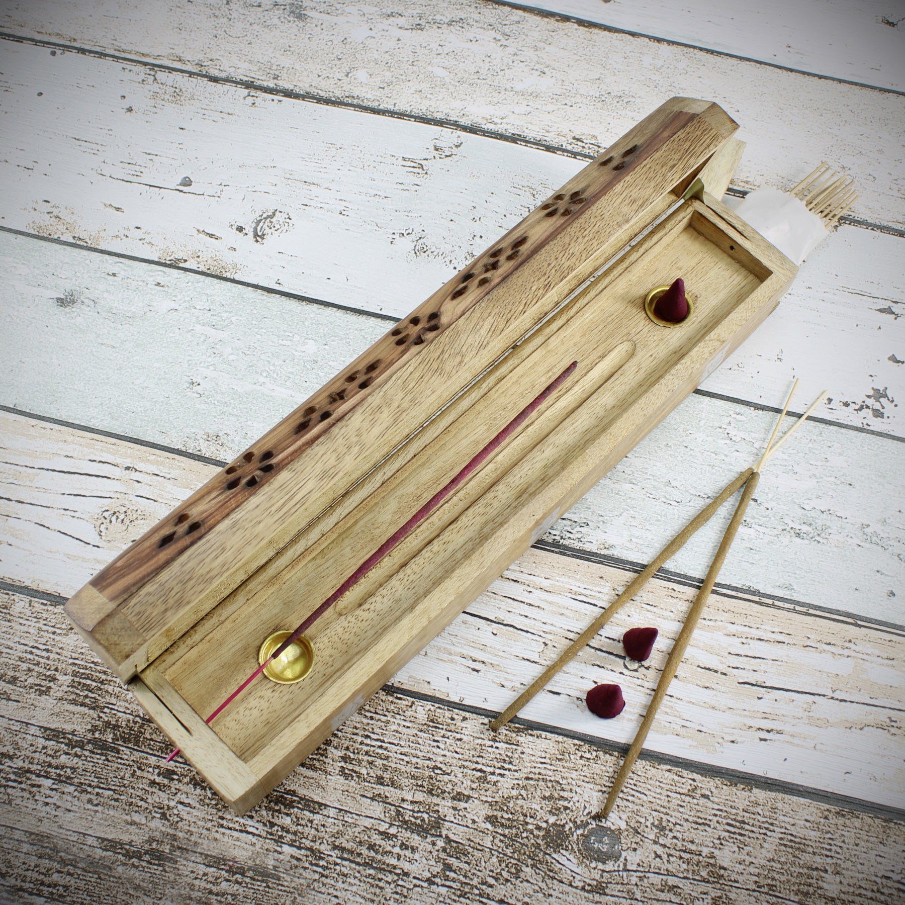 - Material: Holz / mit praktischen Vorratsbehälter für Räucherstäbchen