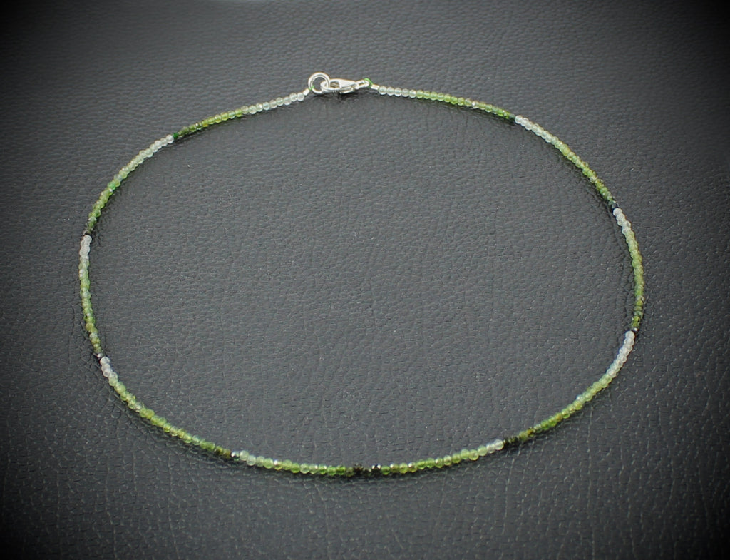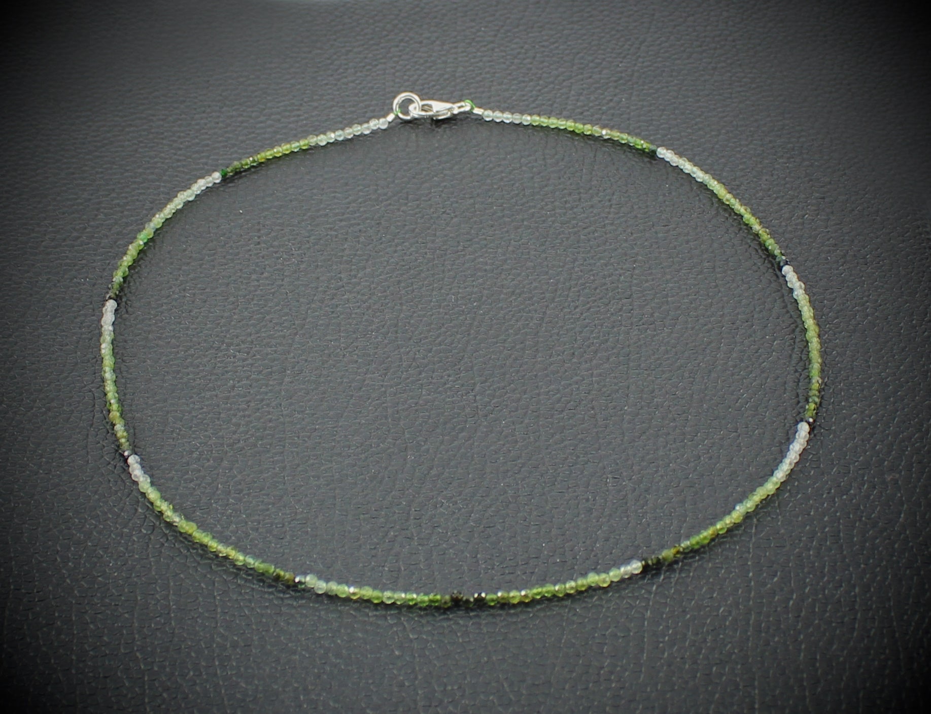 grüne Turmalin Kette Halskette Perlen facettiert 925 Silber Verschluss