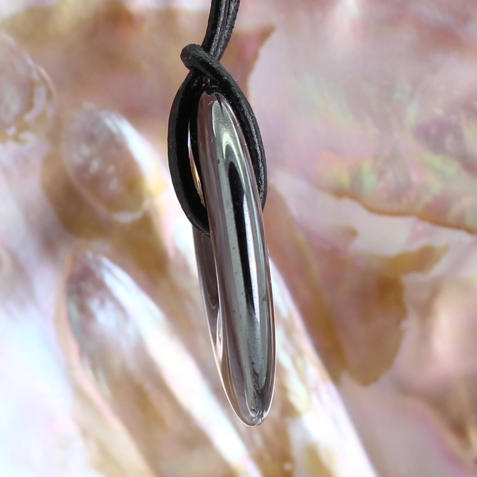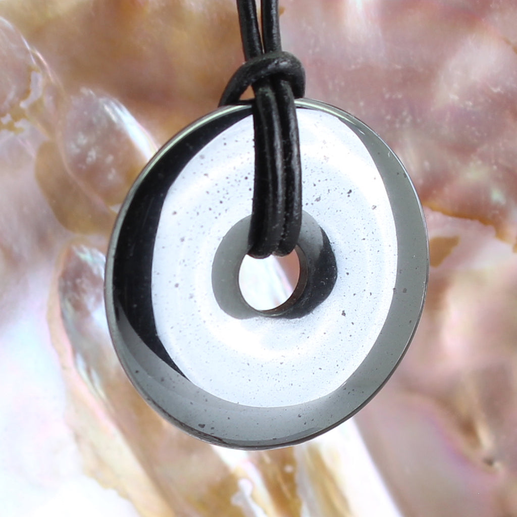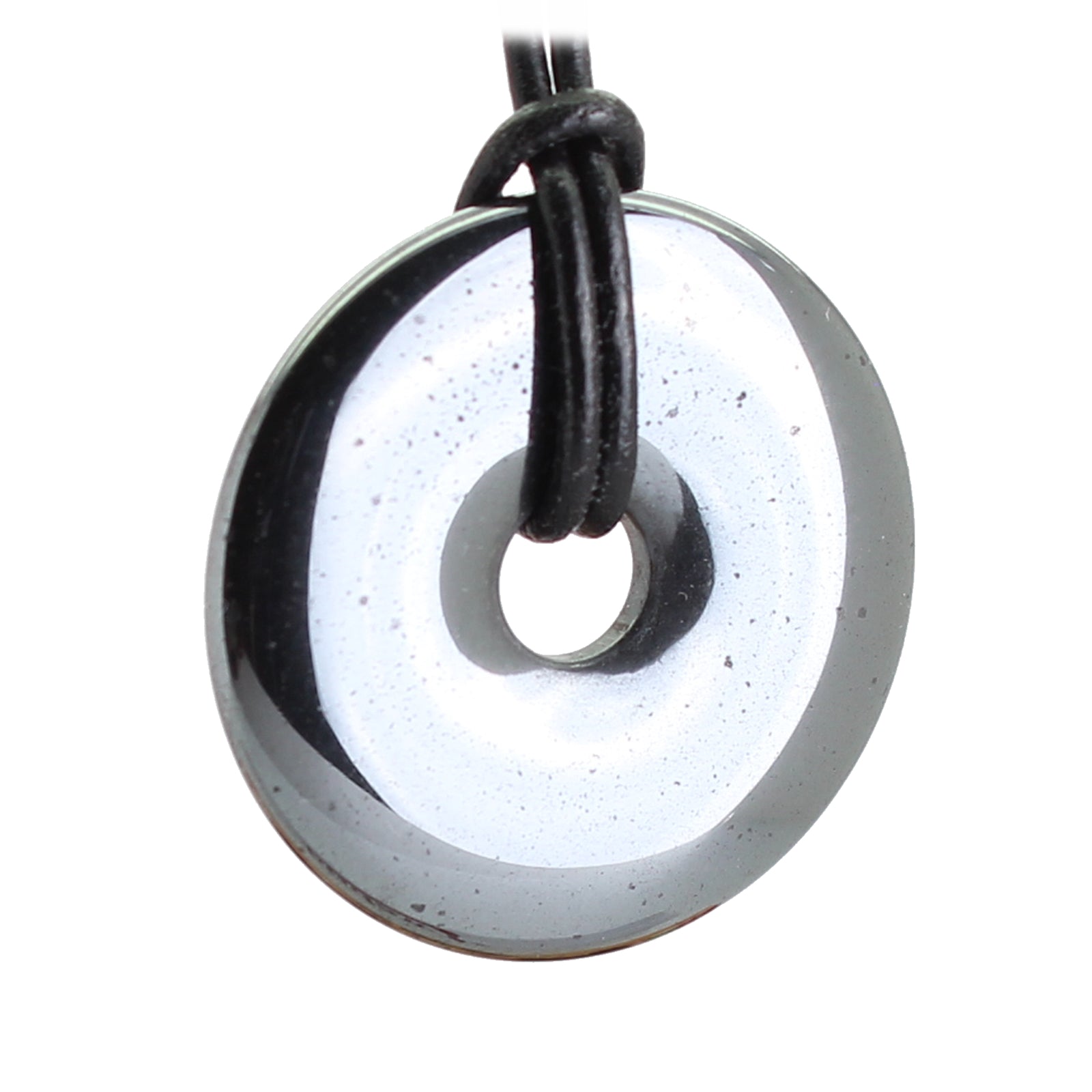 - Sie erhalten hier einen Donut Anhänger aus dem Stein Hämatit (rek.) mit Lederband.