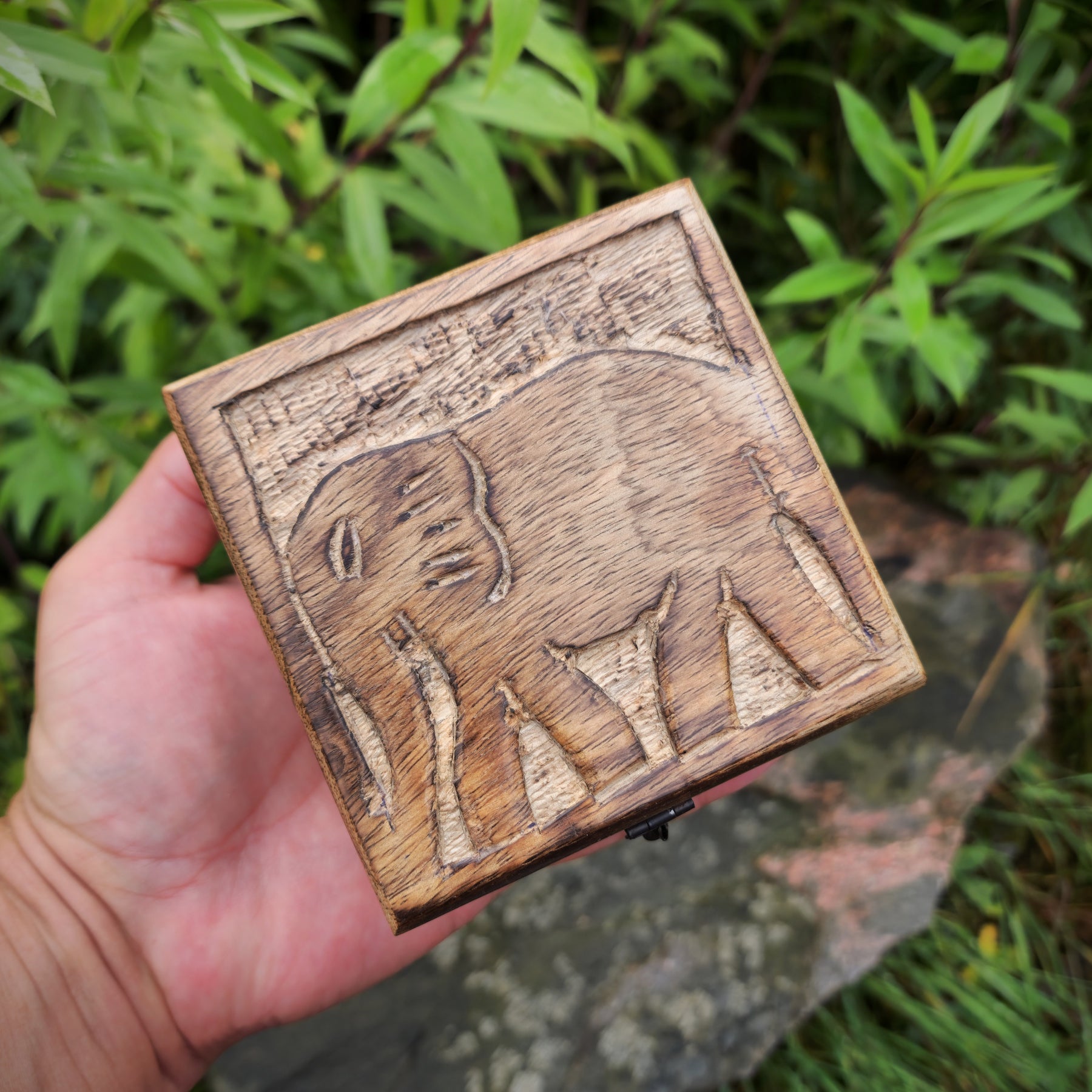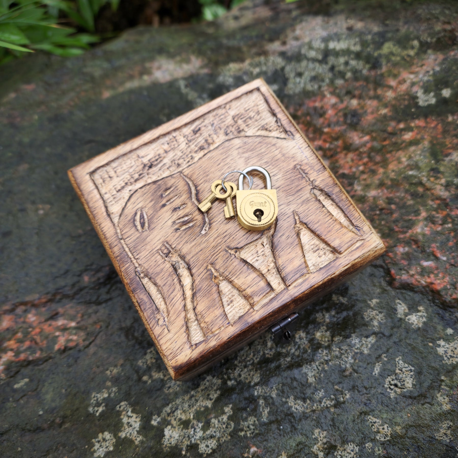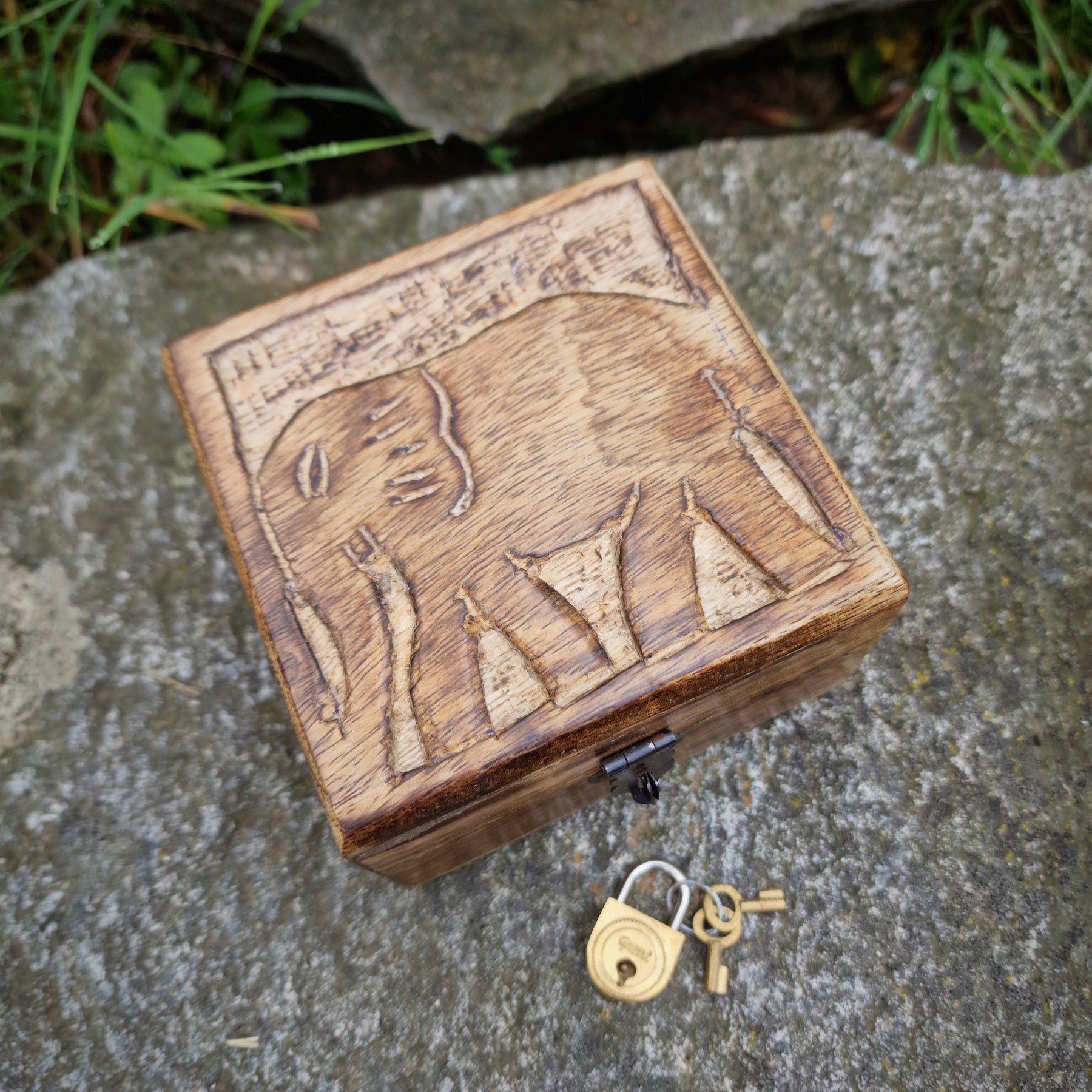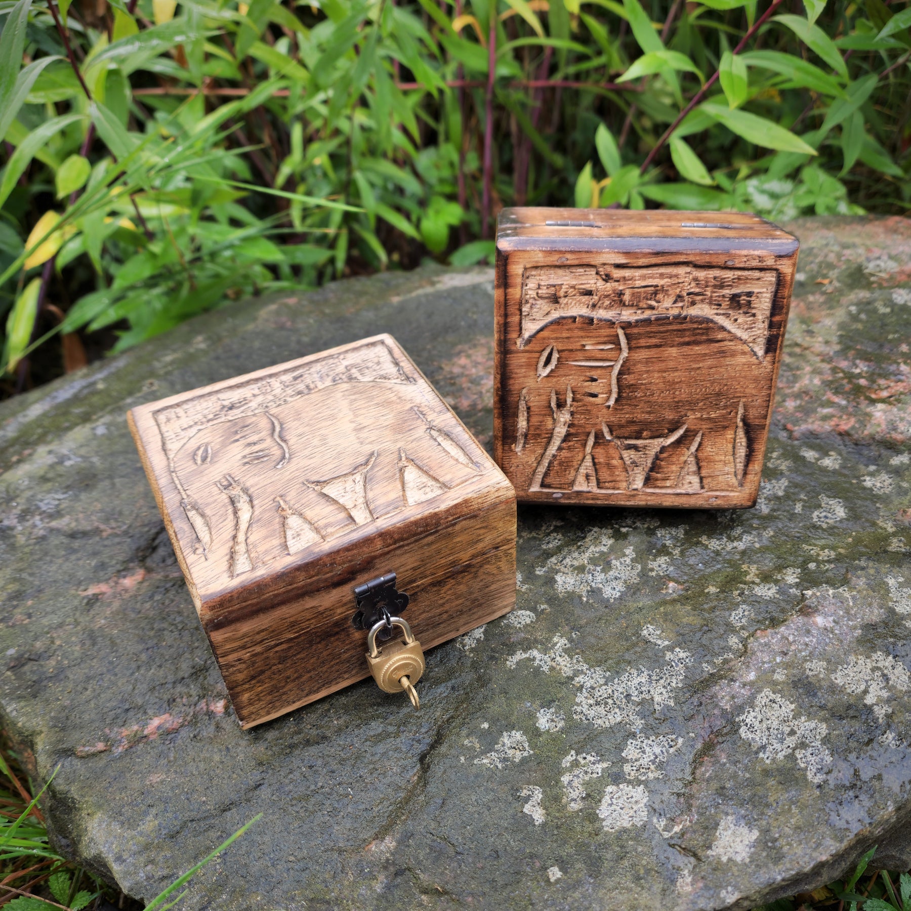 ✅ Handgefertigt: Jede Box ist ein Unikat – liebevoll gefertigt aus echtem Mangoholz 🌞 Dekoratives Motiv: Fein geschnitzter Elefant auf dem Deckel – rustikaler Look mit traditionellem Charme 🔒 verschließbar: Mit Schloss und zwei Schlüsseln – ideal zum sicheren Aufbewahren von Schmuck oder Erinnerungsstücken 📏 Maße: Außen ca. 10 x 10 x 6 cm / Innenmaß ca. 7 x 7 x 5 cm – perfekt für Schmuck, kleine Schätze oder Erinnerungsstücke 🪵 Material & Farbe: Massives Mangoholz in warmem Braun – natürlich, langlebig und stilvoll 🎁 Vielseitig einsetzbar: Als Schmuckkästchen, Geschenkbox, für Meditation oder als dekoratives Element im Wohnraum