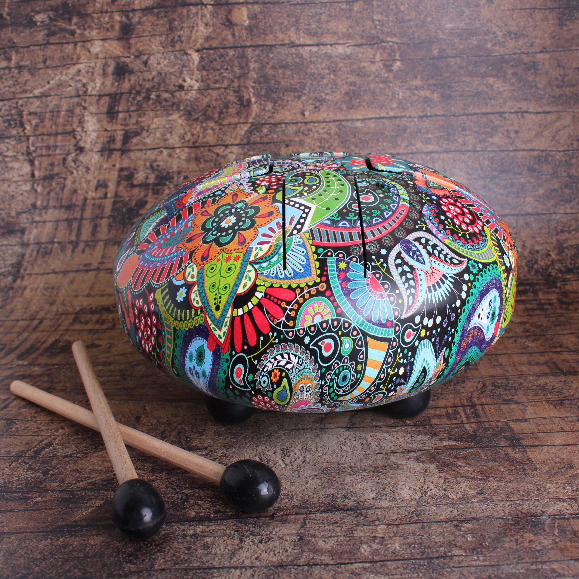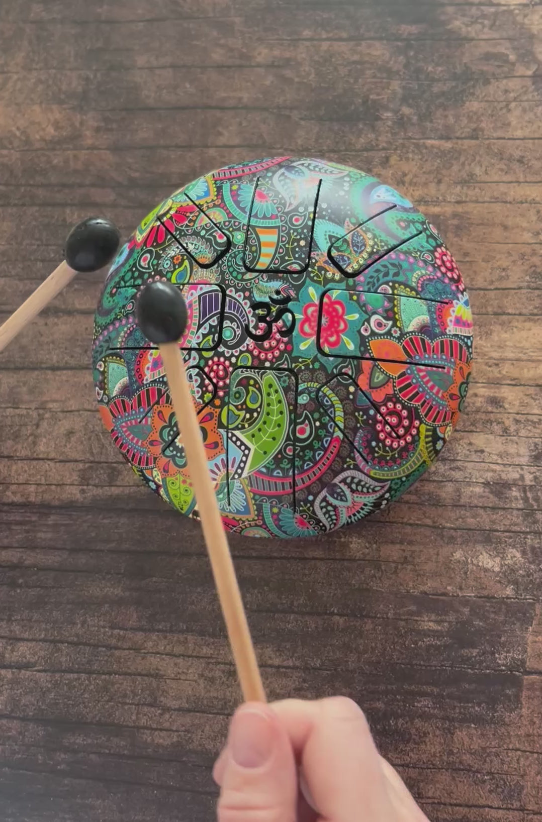 Mit ihren 8 fein abgestimmten Klangzungen bietet jede Sonodrum eine Vielzahl harmonischer Töne, die sowohl Anfängern als auch erfahrenen Musiker:innen Freude bereiten. Sie kann mit den beiliegenden Schlägeln oder mit den Händen gespielt werden – in beiden Fällen entsteht ein sanfter, warmer Klang, der Körper und Geist in Einklang bringt.