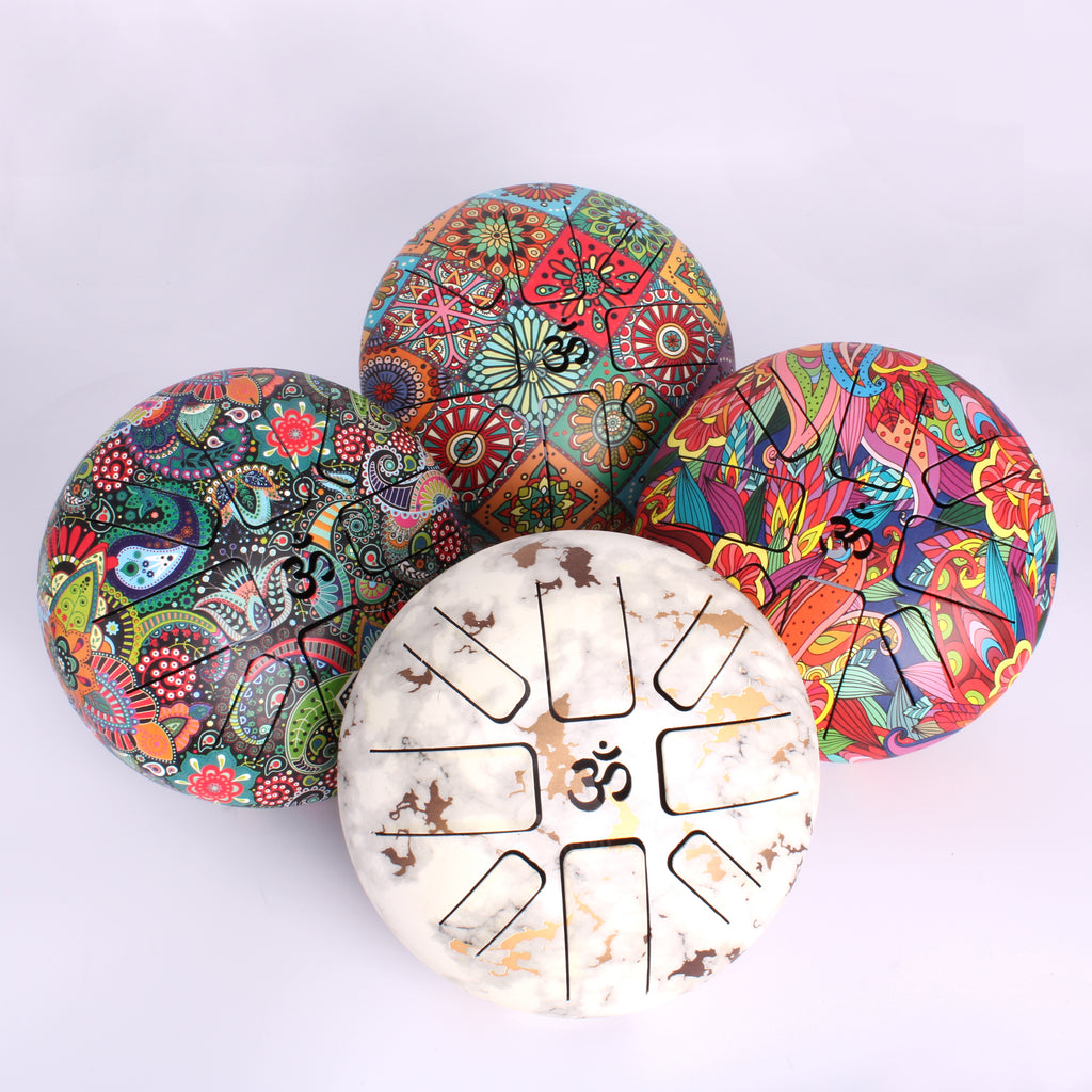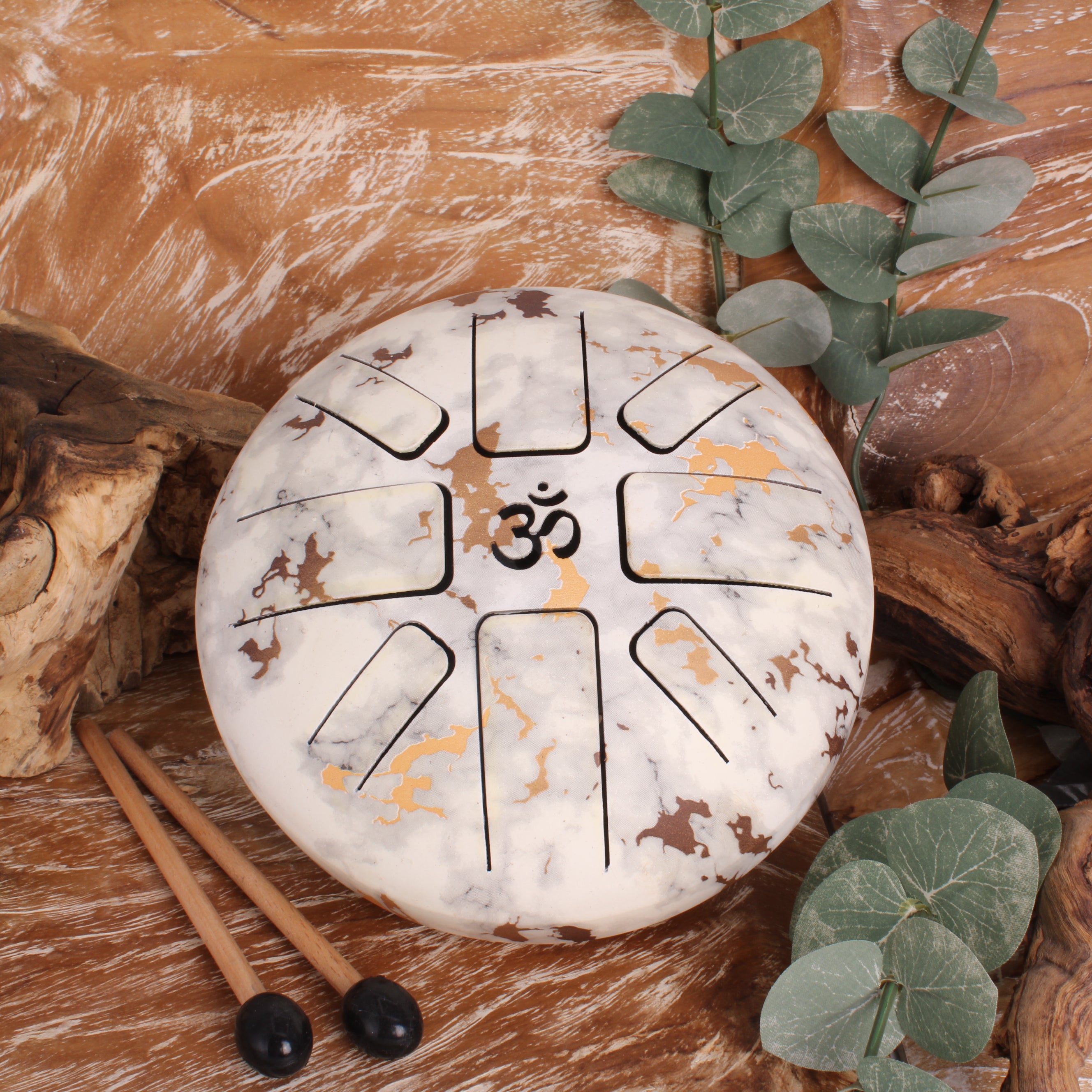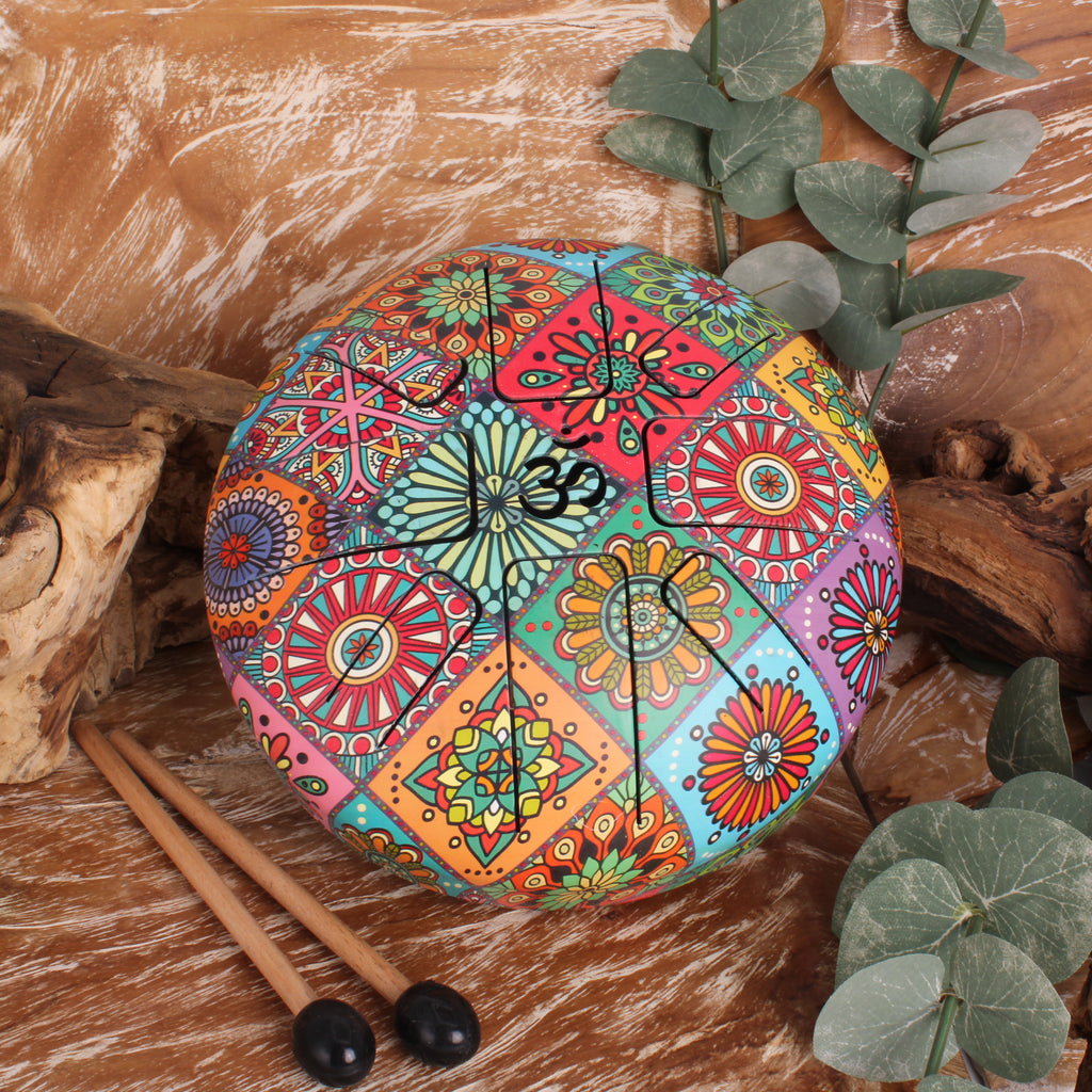 handgefertigte Sonodrum 16 cm – 8-Ton Zungentrommel aus Stahl, 4 Modelle: Multi, Mandala, Paisley, White Gold, mit Schlägel & Tragetasche