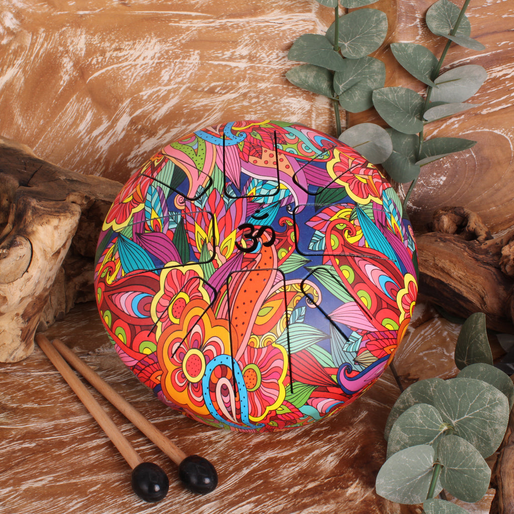 Tauche ein in die beruhigende Welt der Klänge mit dieser liebevoll gefertigten Sonodrum, einer 8-Ton Zungentrommel aus hochwertigem Stahl, die durch harmonischen Klang und kunstvolles Design begeistert.