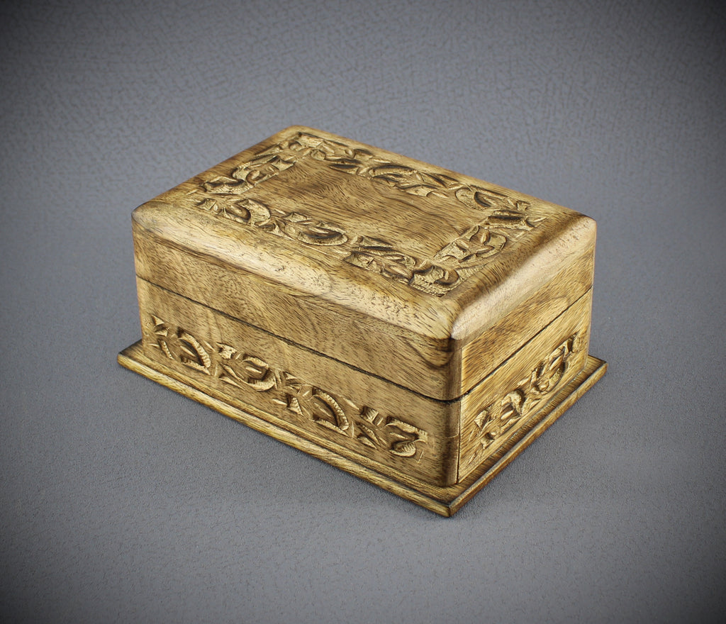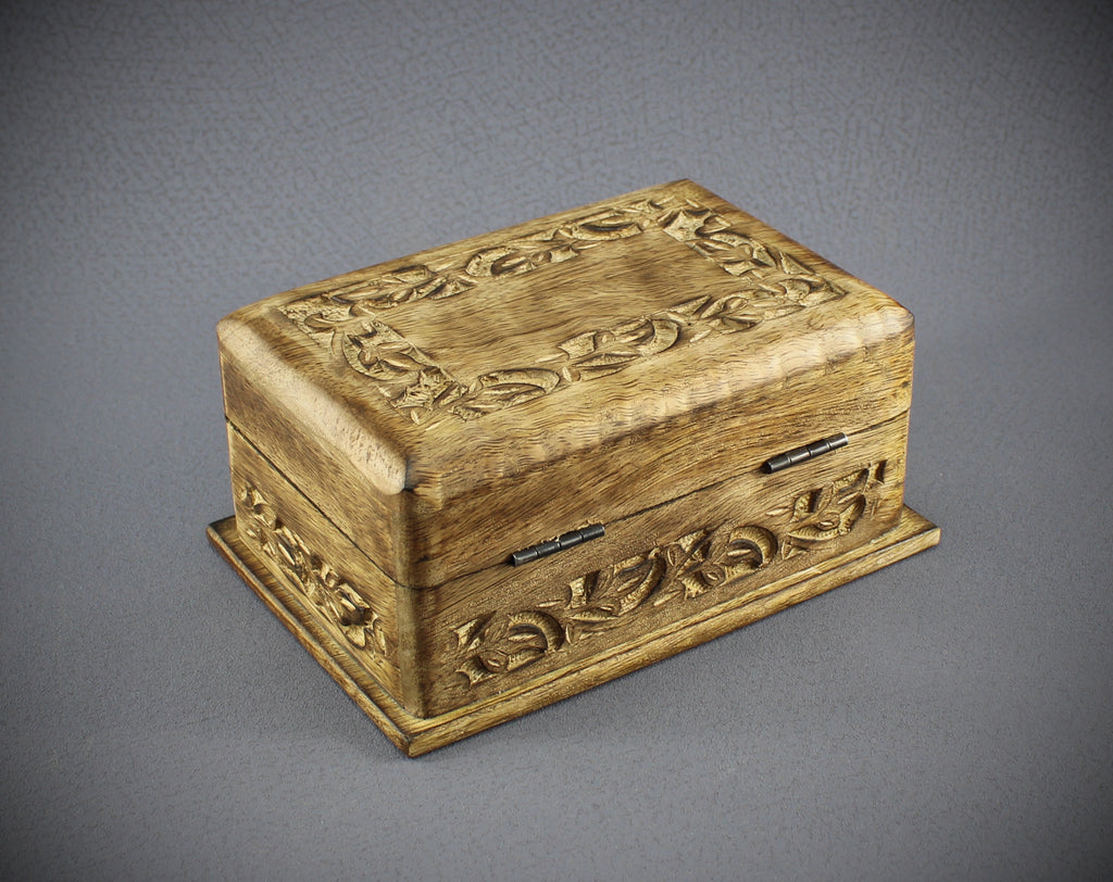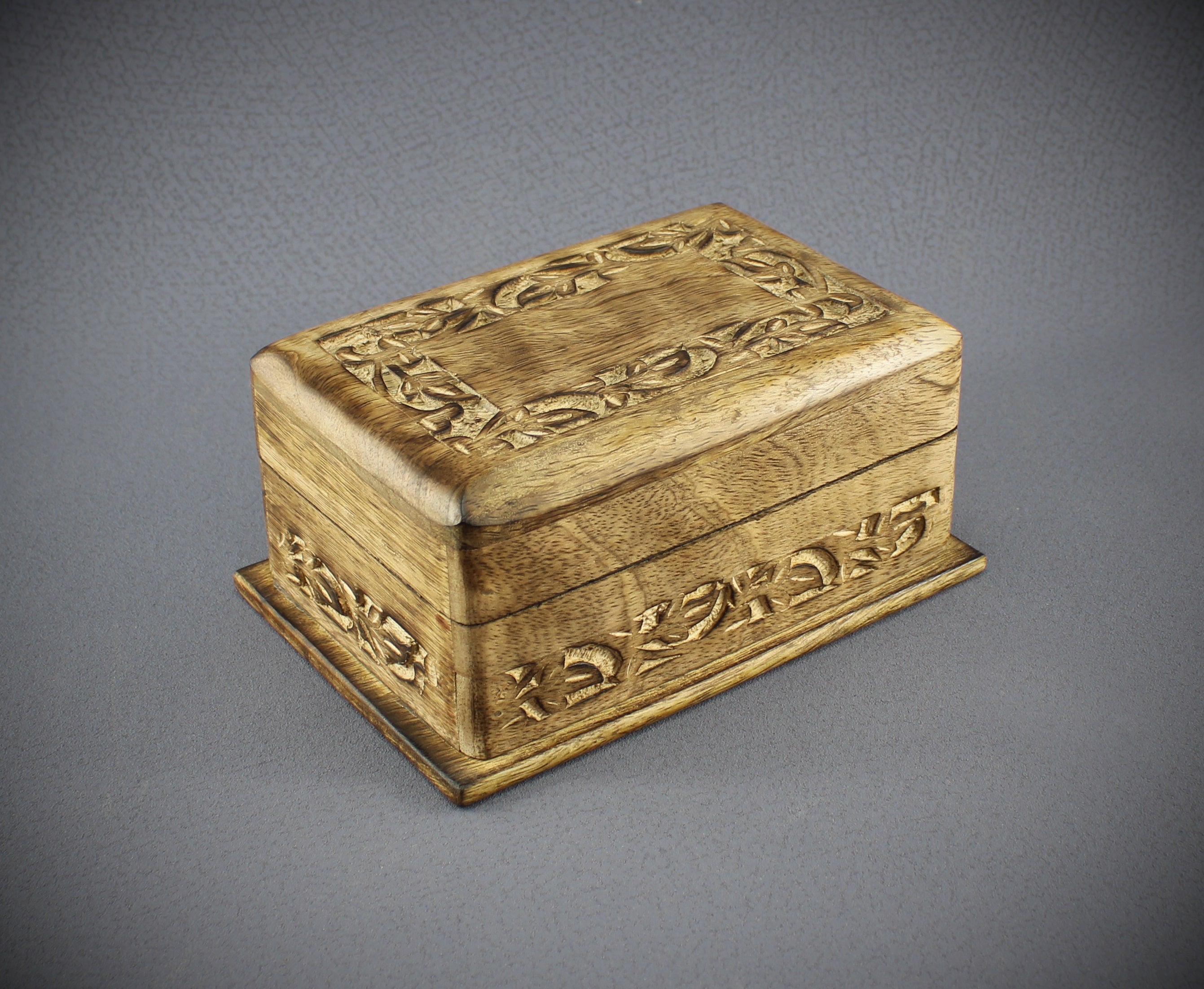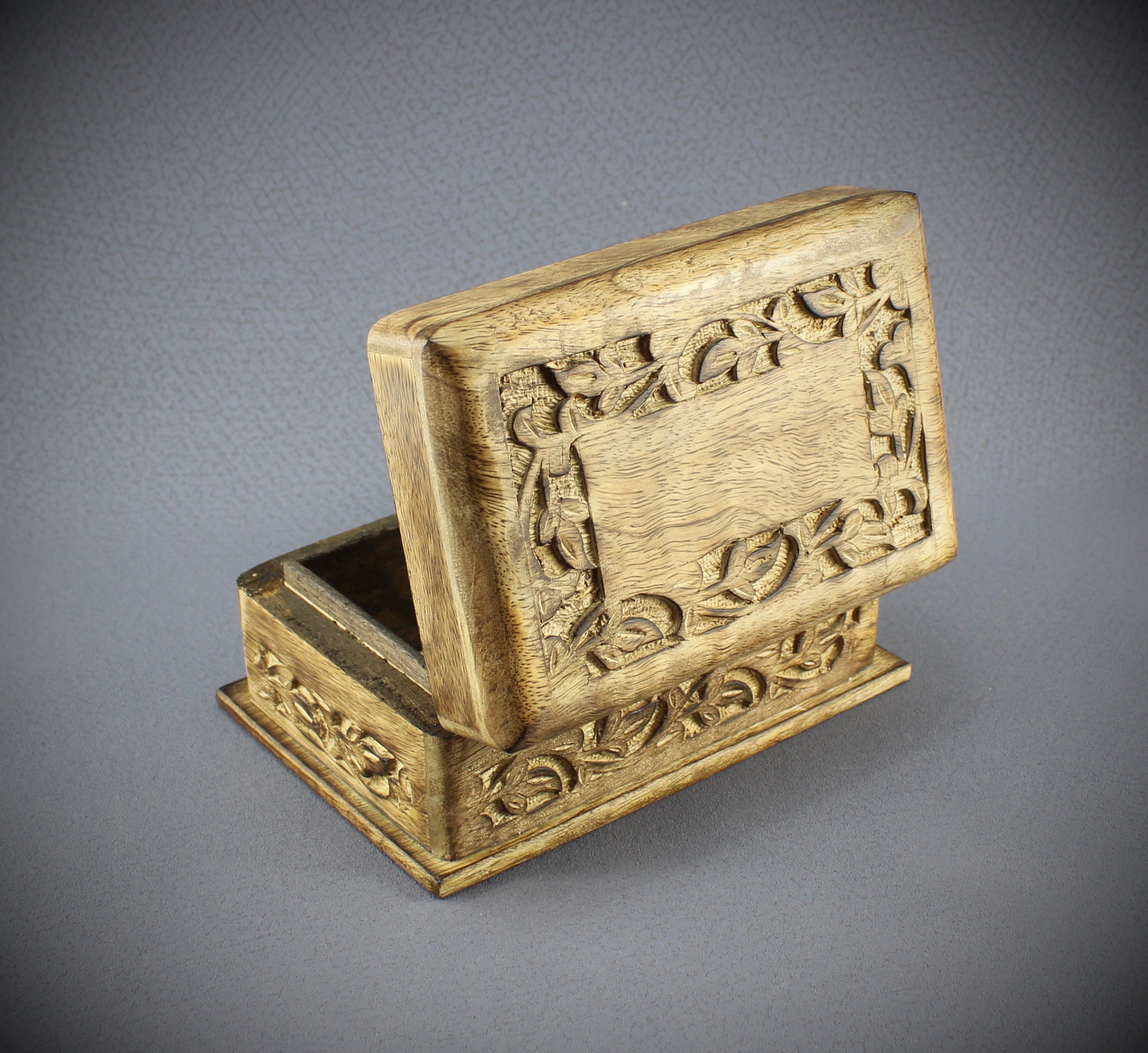 - Unsere handgemachte Holzschatulle aus Mangoholz mit Blumenornament ist ein einzigartiges und wunderschönes Stück, das Ihre persönlichen Schätze sicher aufbewahren wird. Das Mangoholz, aus dem die Schatulle gefertigt wird, ist von höchster Qualität und verleiht jedem Raum eine warme und natürliche Atmosphäre. Jede Schatulle wird von erfahrenen Handwerkern hergestellt und ist somit ein Unikat.
