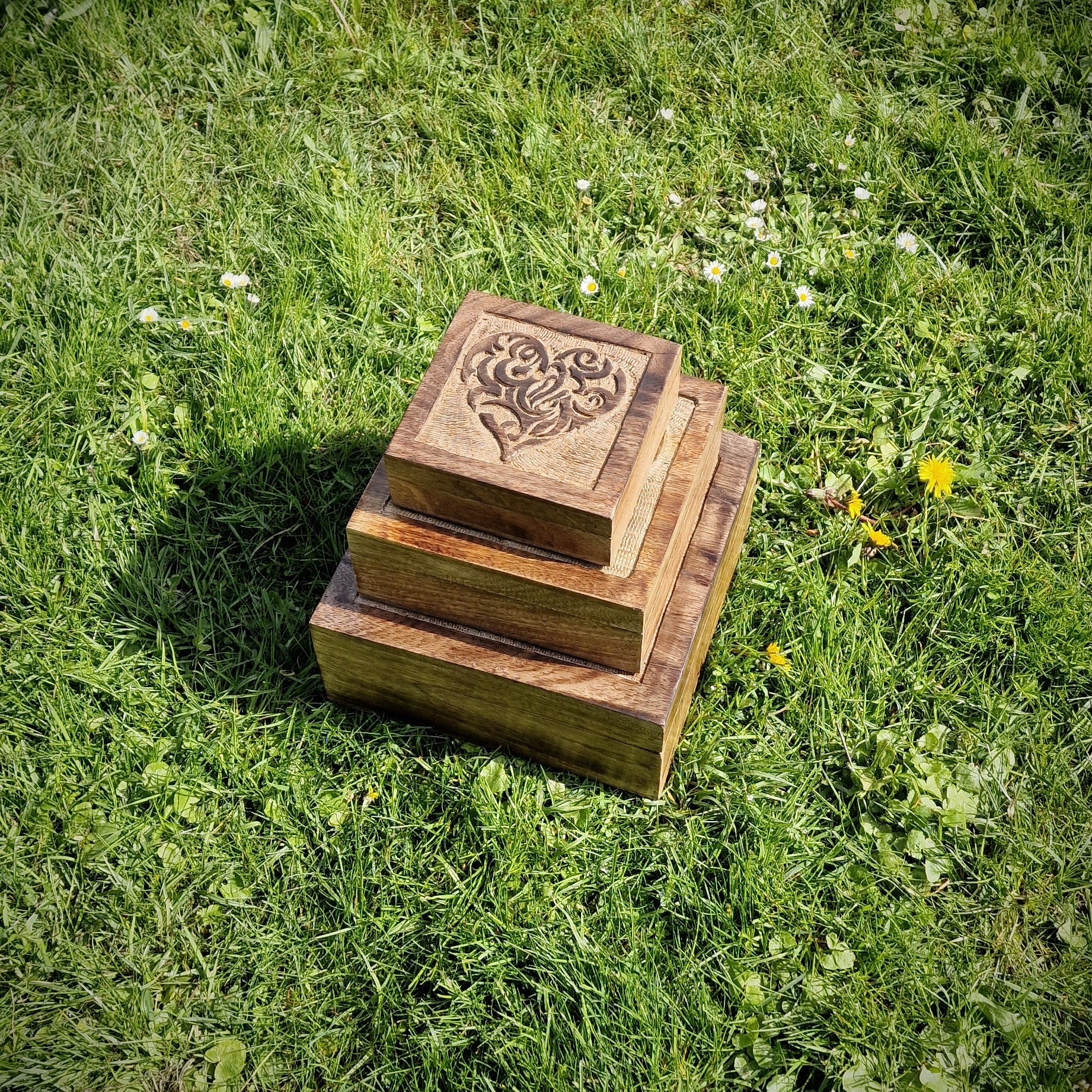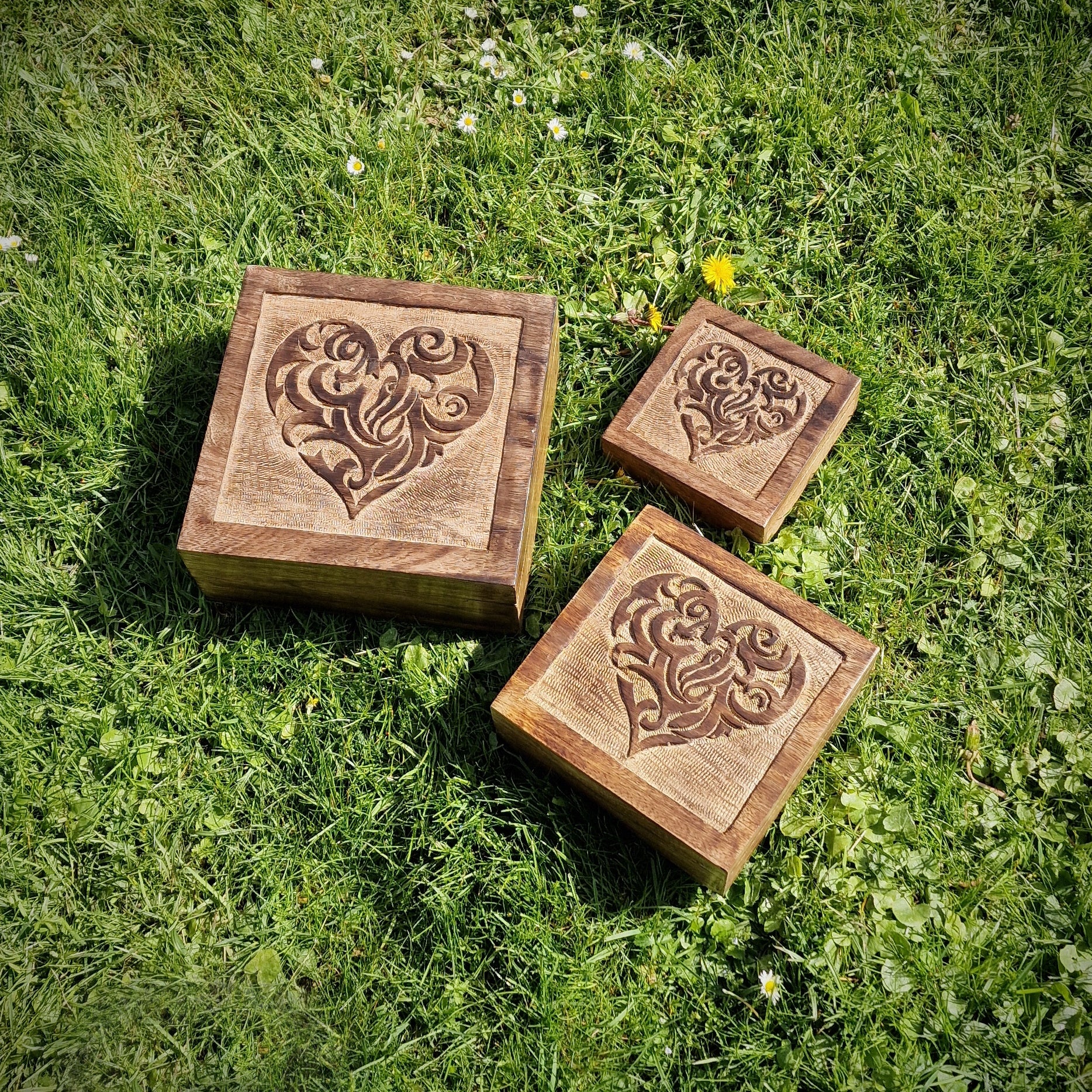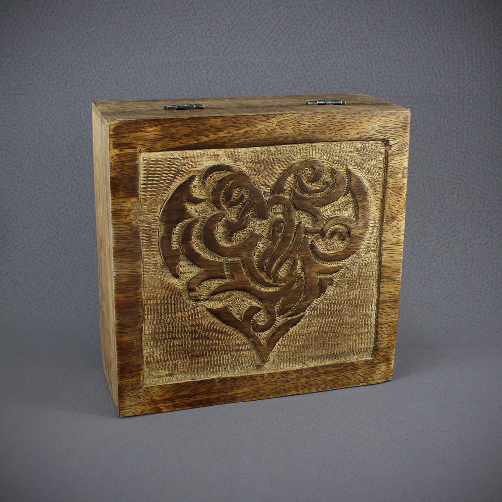 Holztruhe Holzbox Holzkiste aus Mangoholz keltisches Herz mittel Box Schachtel Schatulle