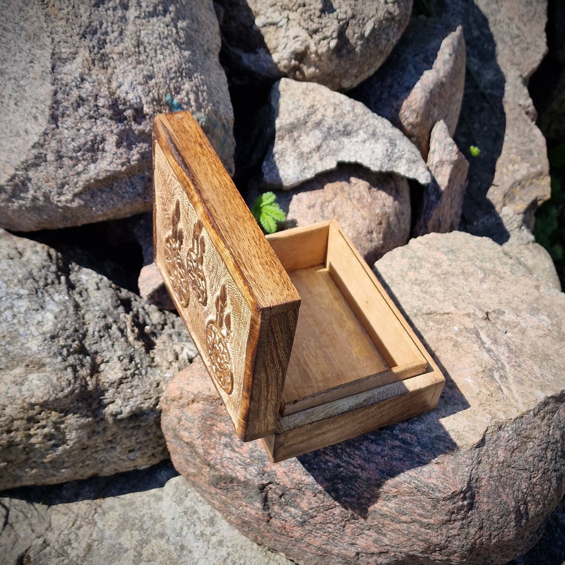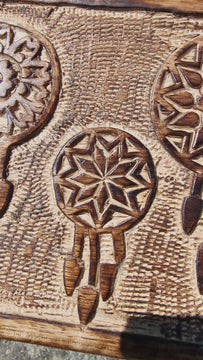 - Sie erhalten hier eine Holztruhe aus Mangoholz mit Motiv Traumfänger.