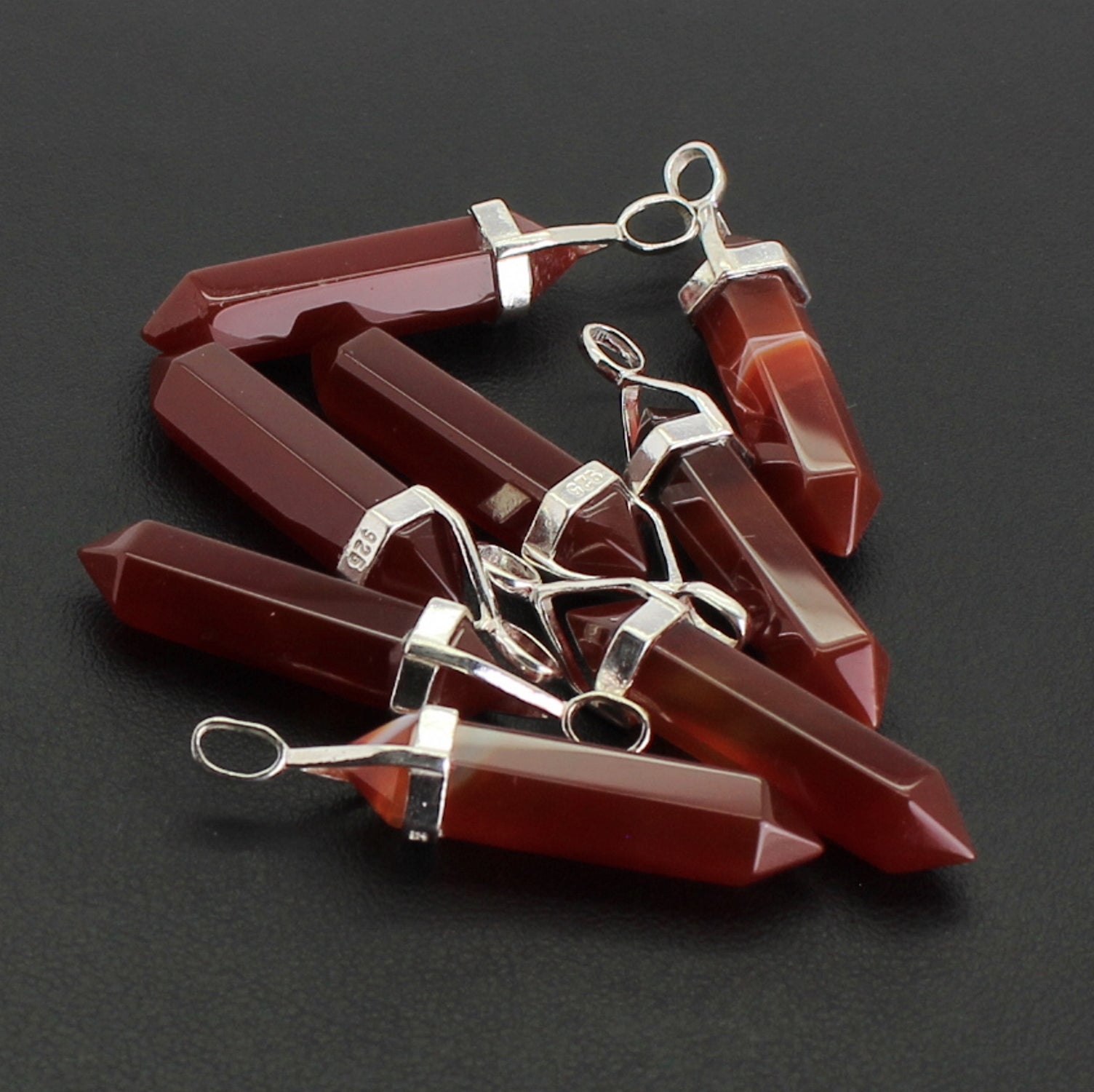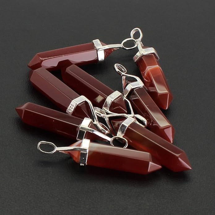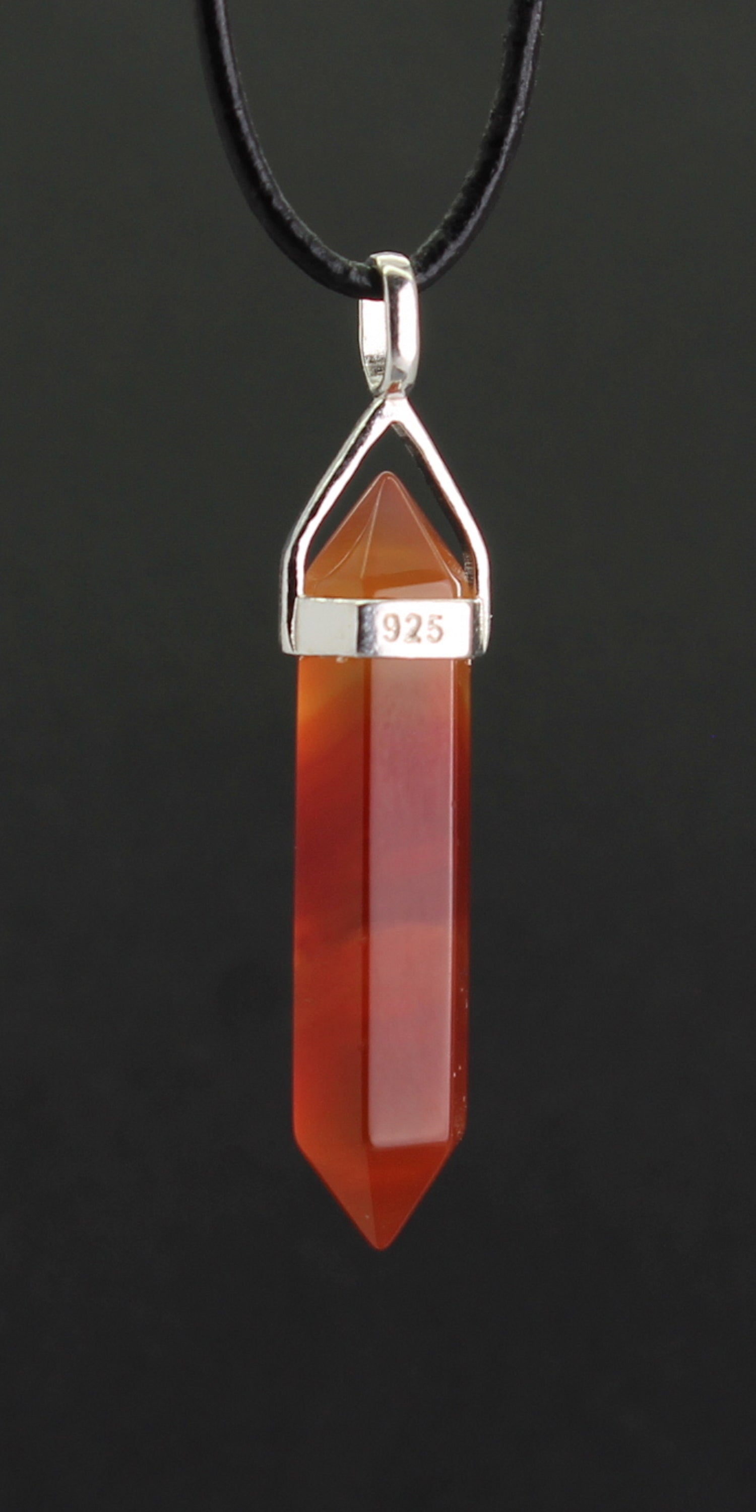 Karneol Edelstein Kristall Anhänger Doppelspitze Doppelender 925er Silberbügel