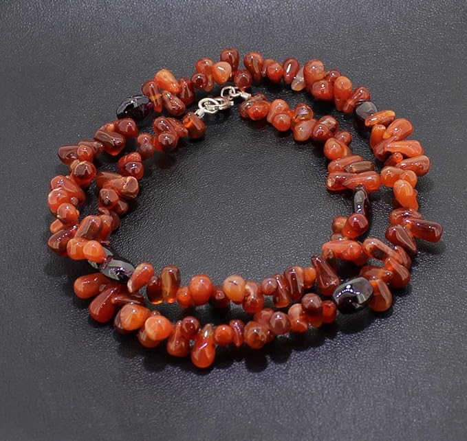 Karneol mit Granat Kette Halskette Collier 925 Silber Verschluss