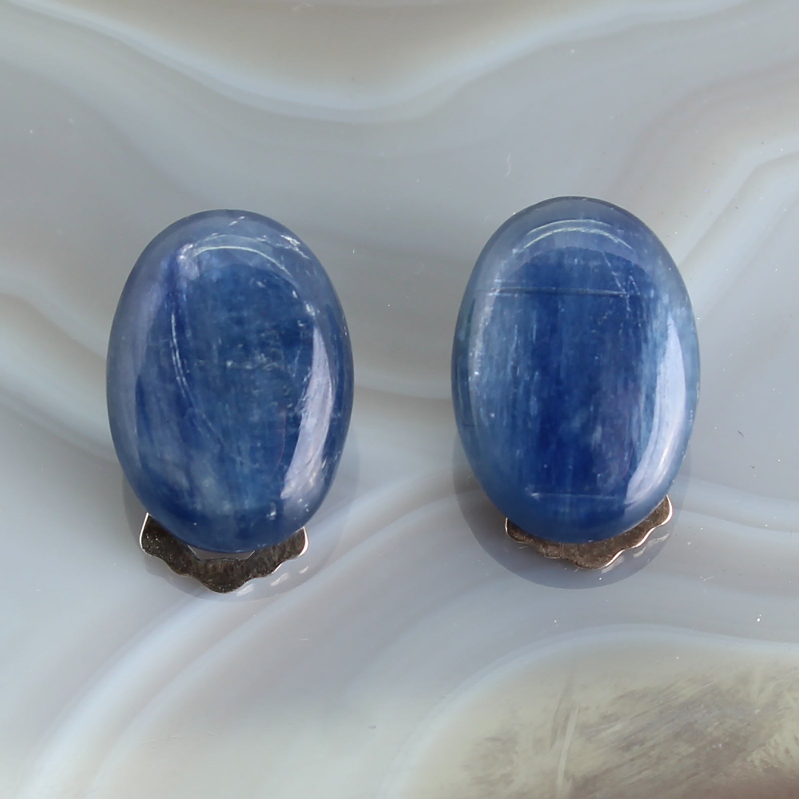 • Ovale Cabochonform: Die glatt polierten Cabochons betonen die Tiefe und das Farbspiel des Kyanits – stilvoll und natürlich zugleich.