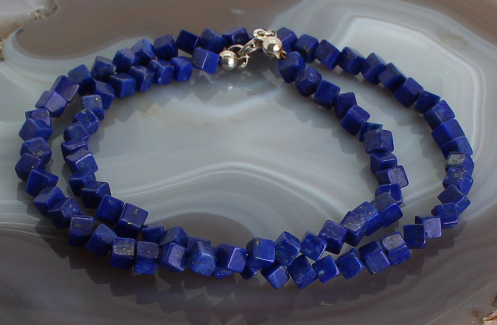 Lapislazuli Kette Halskette Collier Würfel 925er Silberverschluss…