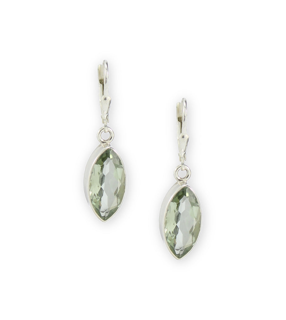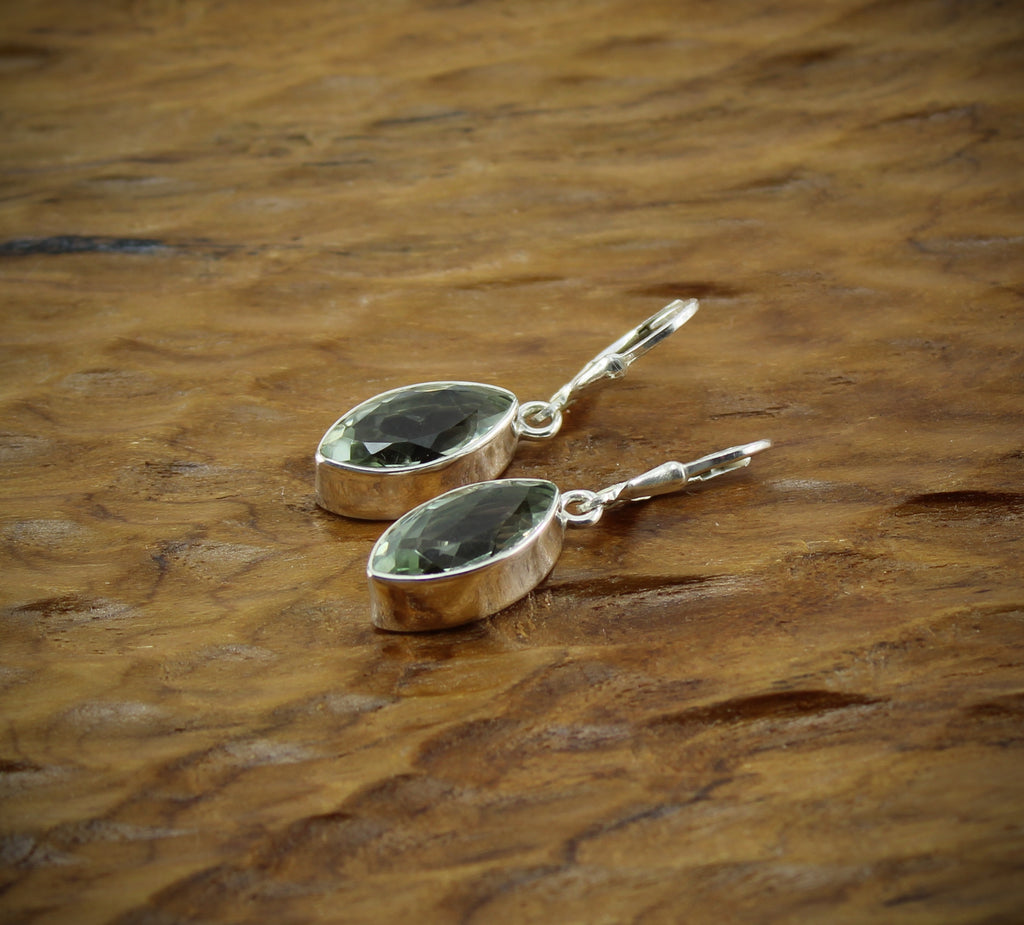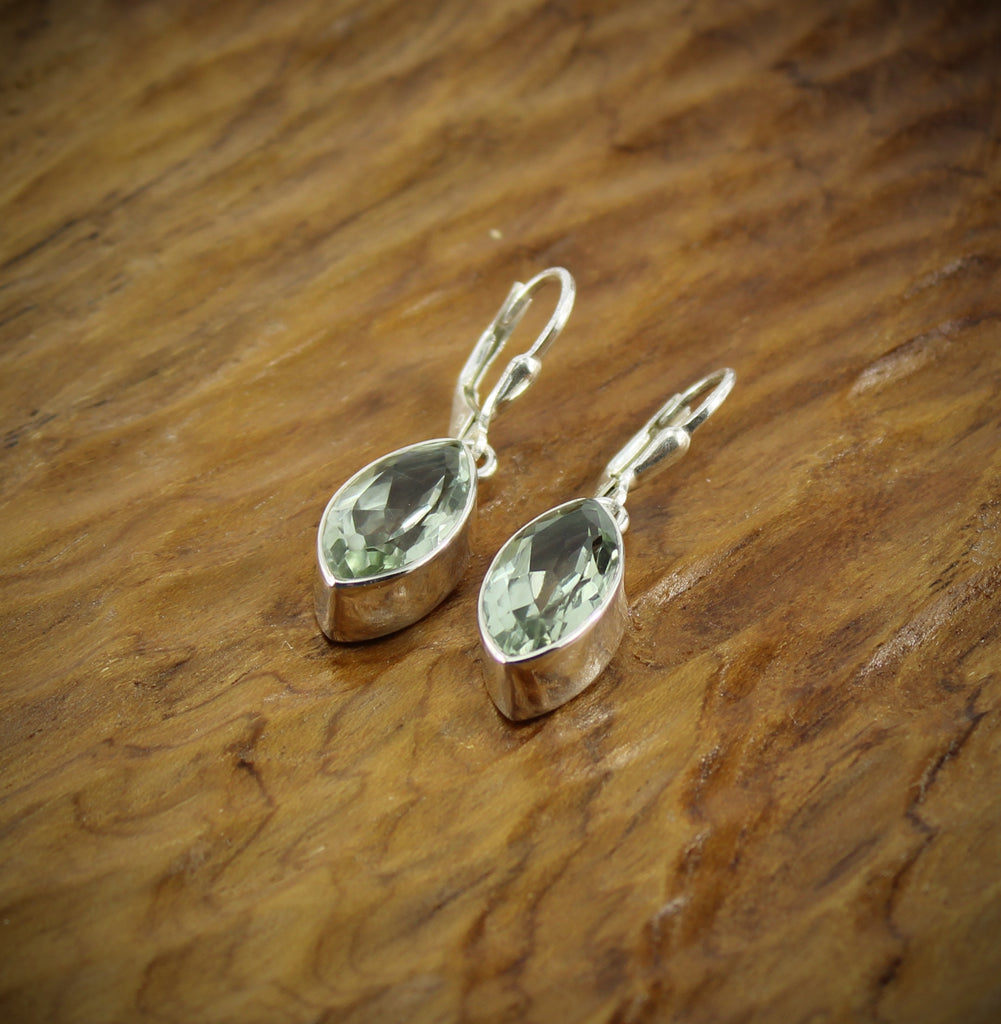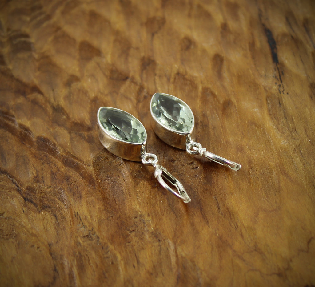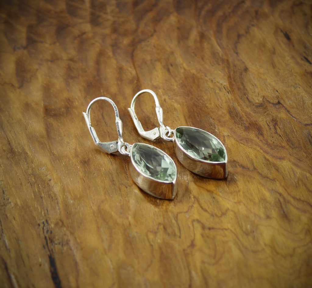 Edle Prasiolith-Ohrhänger – Zartgrüne, facettierte Navetten in eleganter Tropfenform für einen stilvollen Look.
