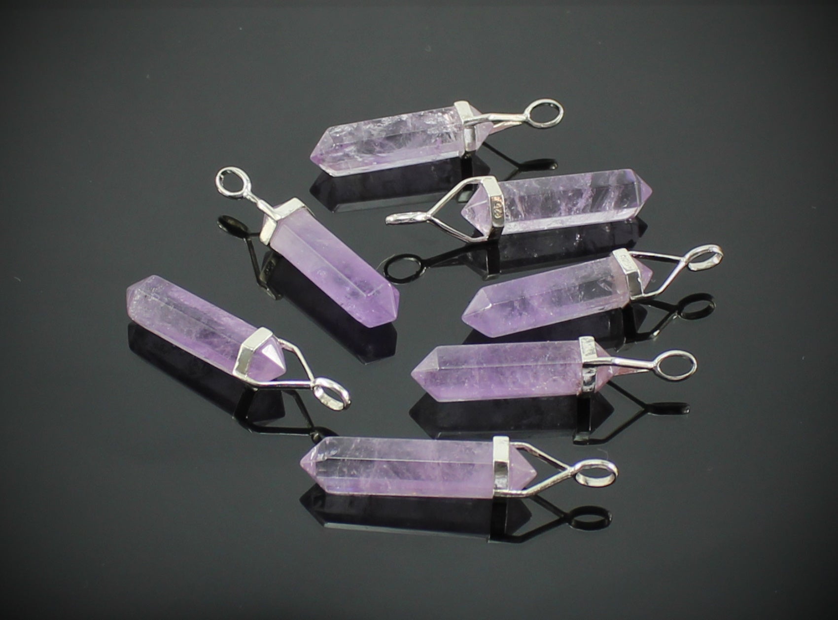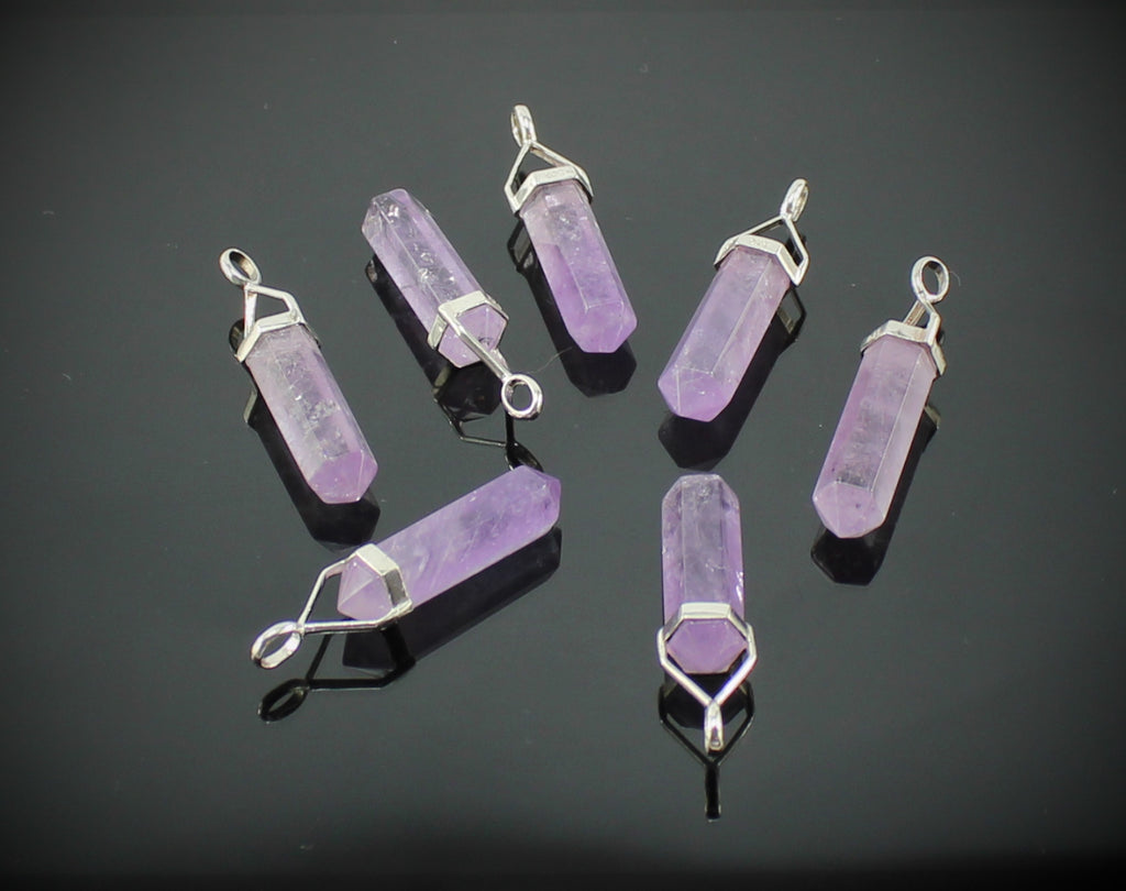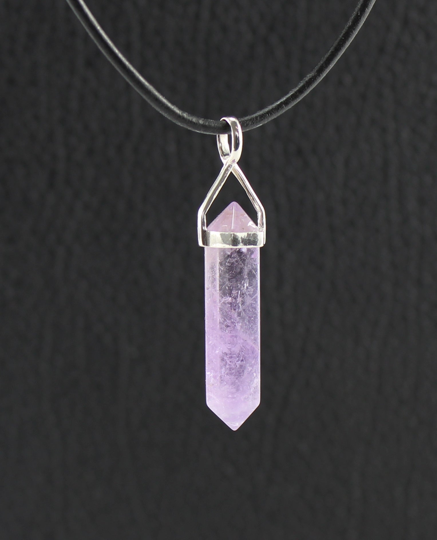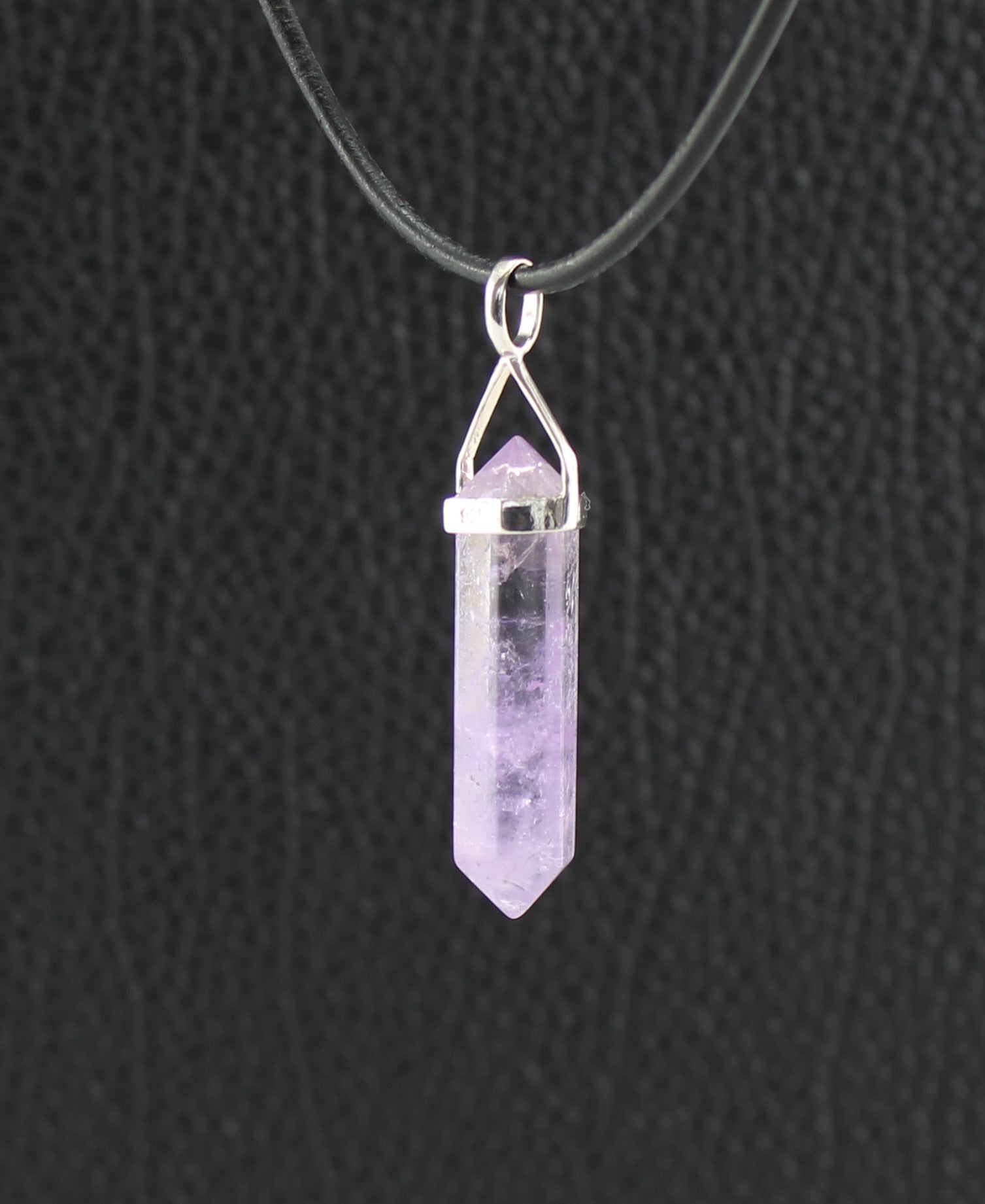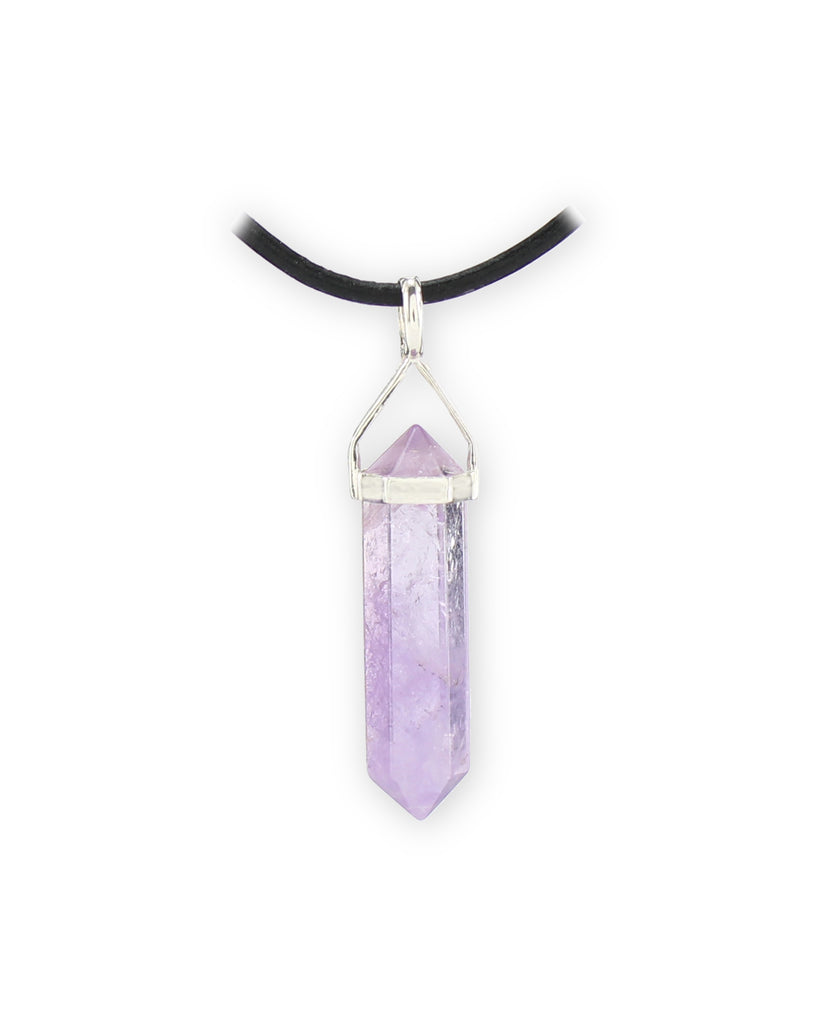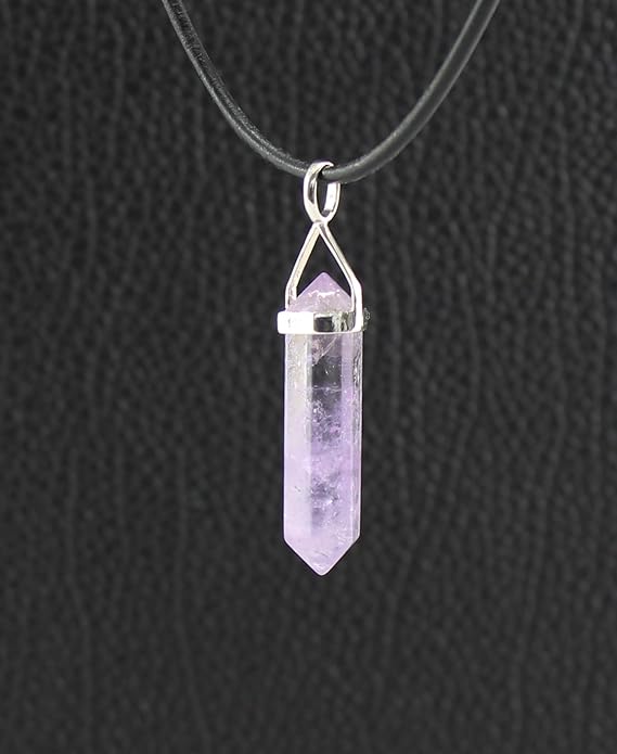 Amethyst Doppelender Anhänger – ca. 4 cm – mit 925er Silberbügel & Lederband – Echter Edelstein – Spiritueller Schmuck in Geschenkschachtel