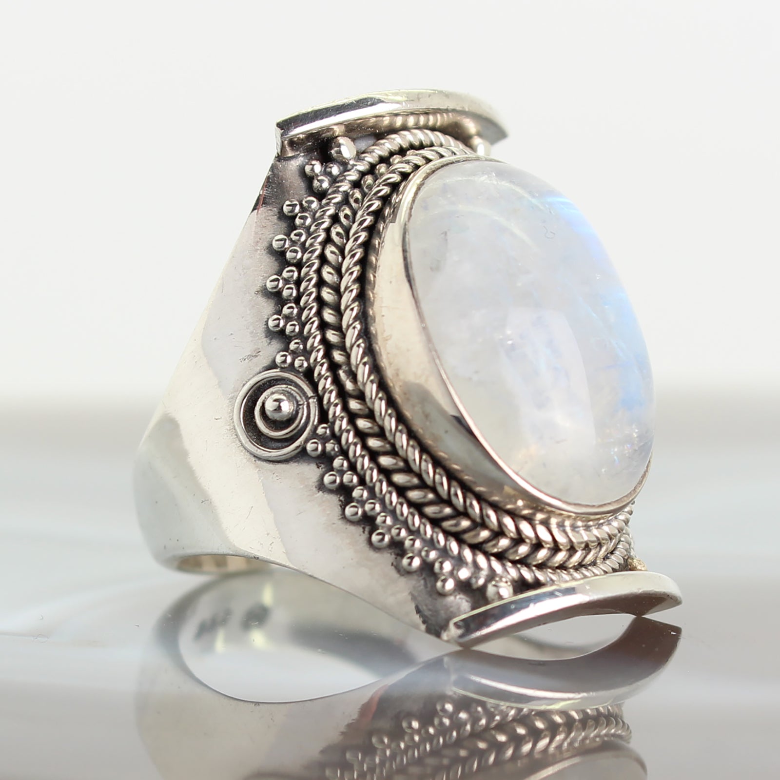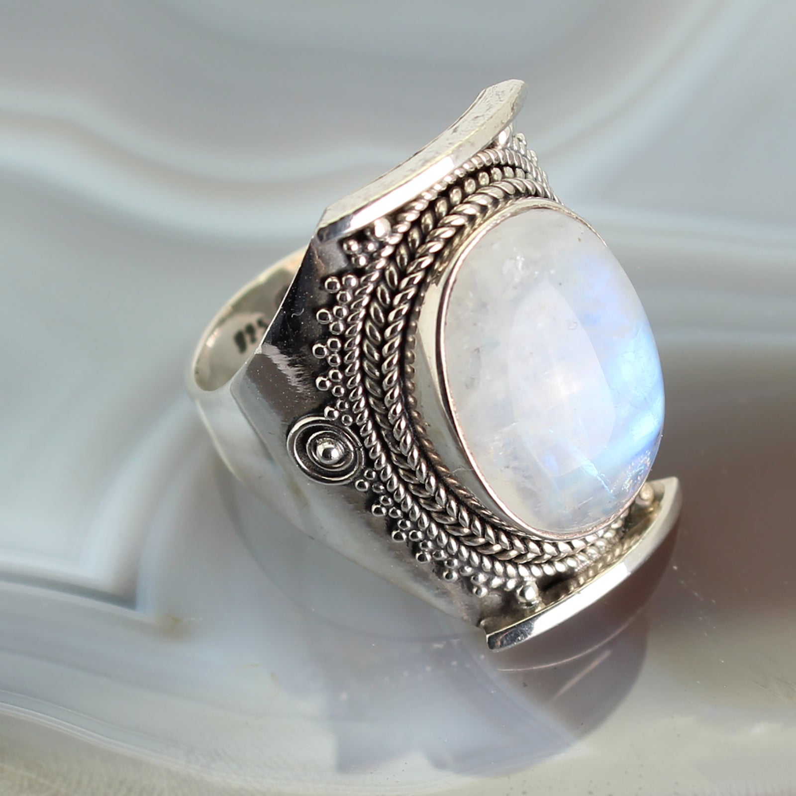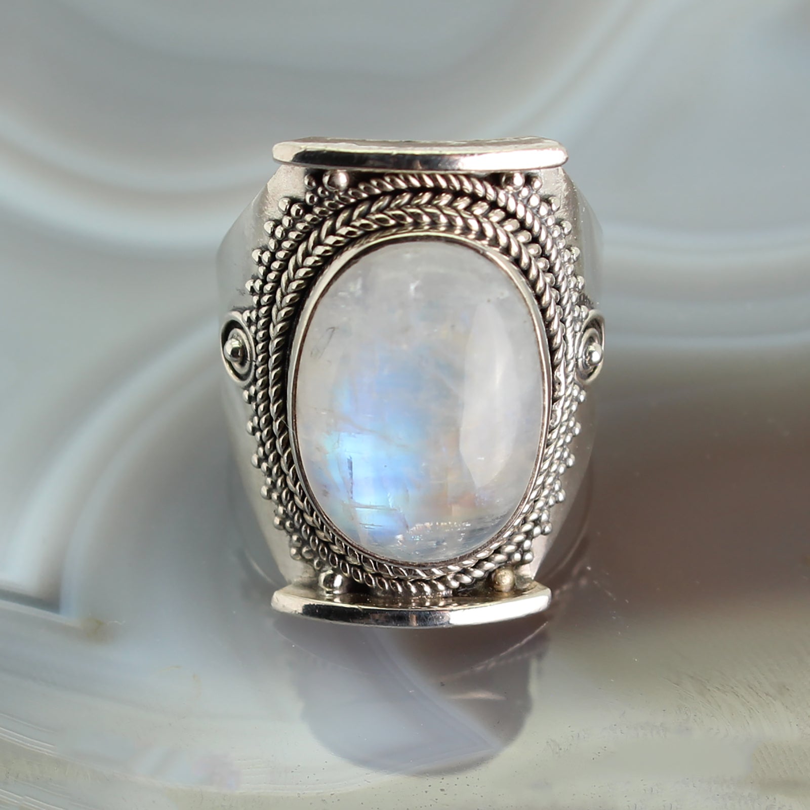 Regenbogenmondstein Ring Fingerring 925er Silber Größe 61