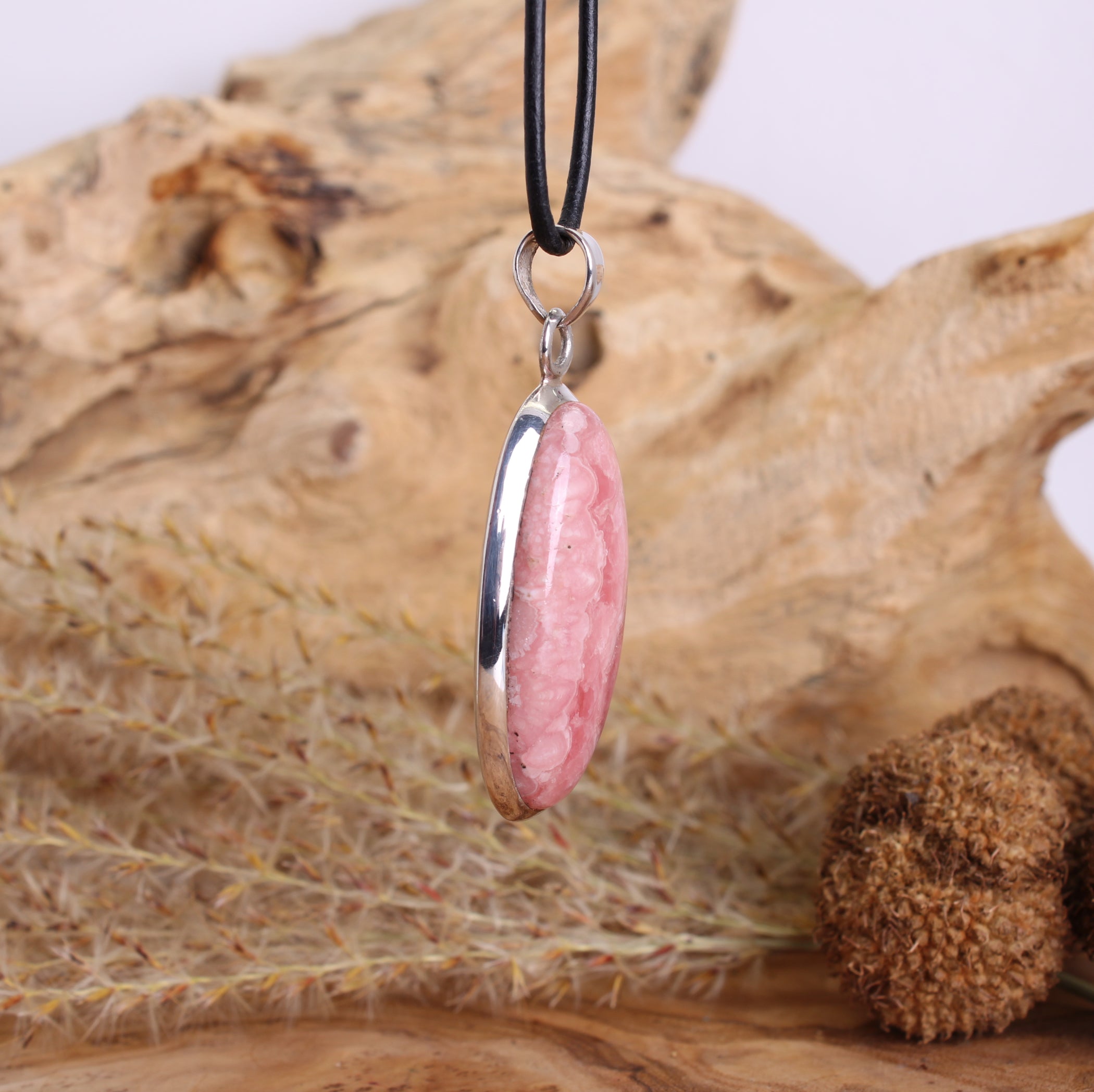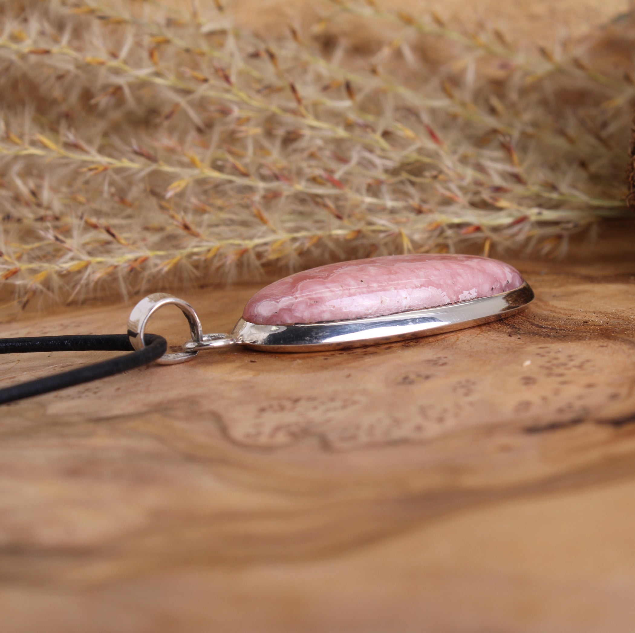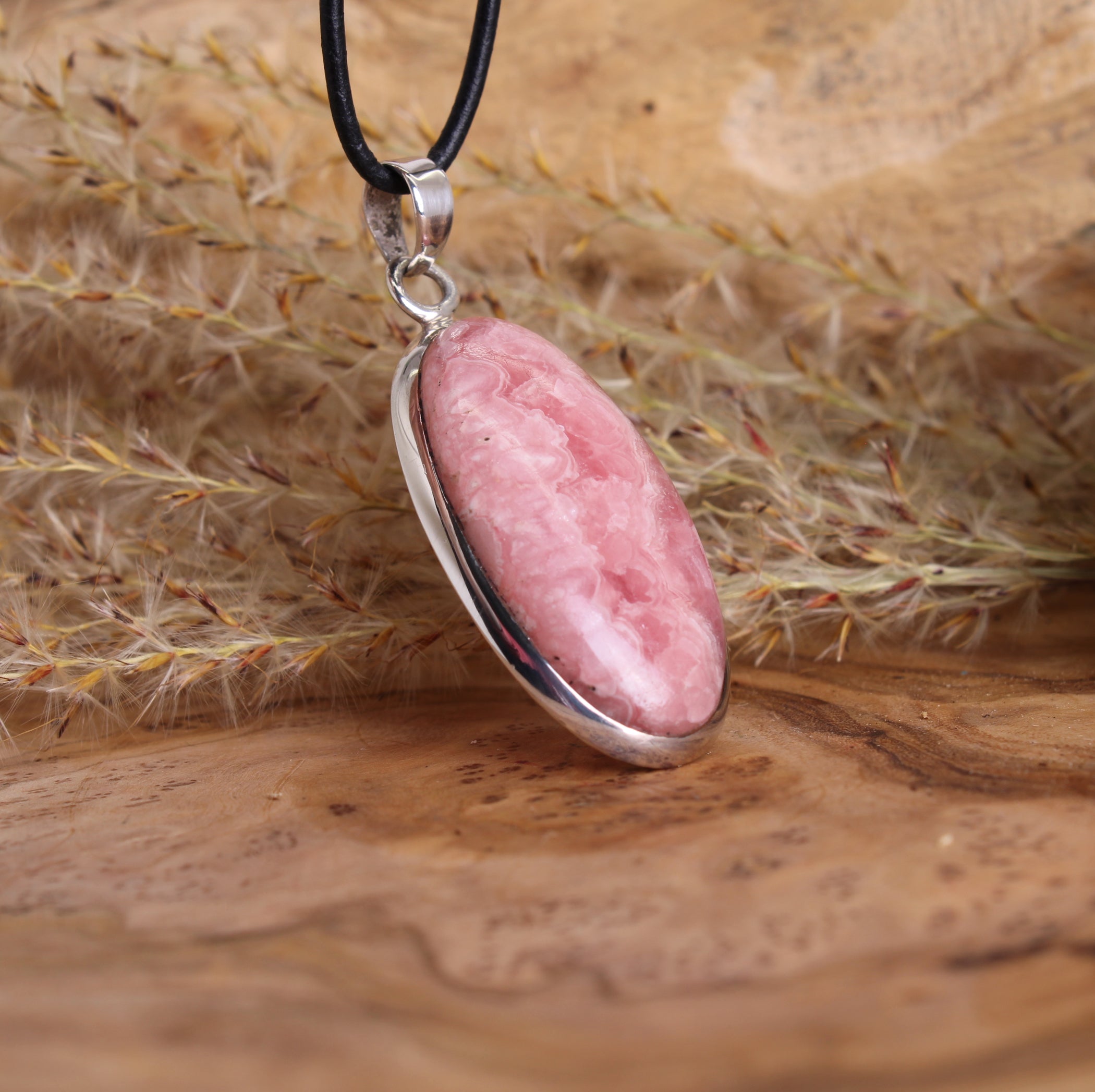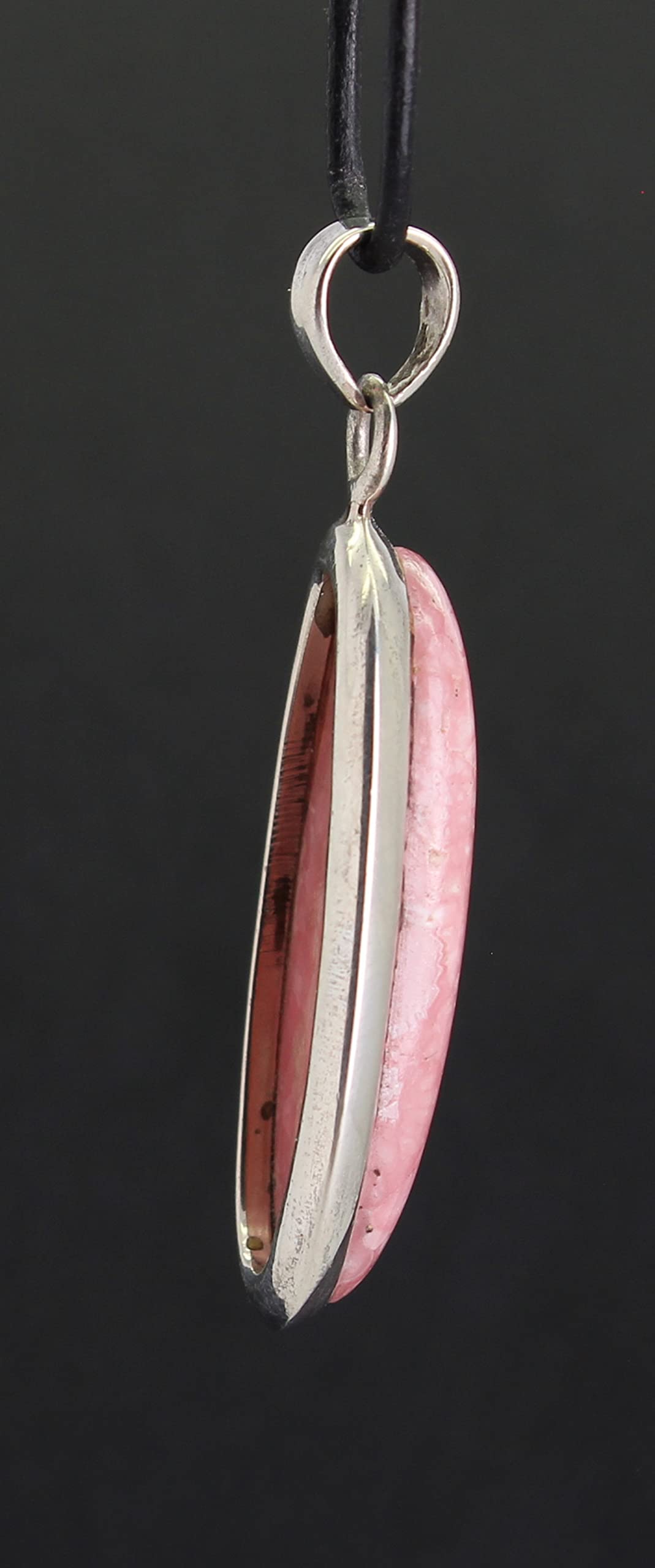 Rhodochrosit Anhänger Ketten Hals Schmuck 925 Sterling Silber echter Edelstein mit Lederband - Einzelstück