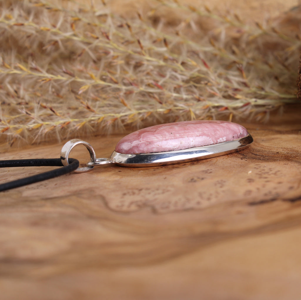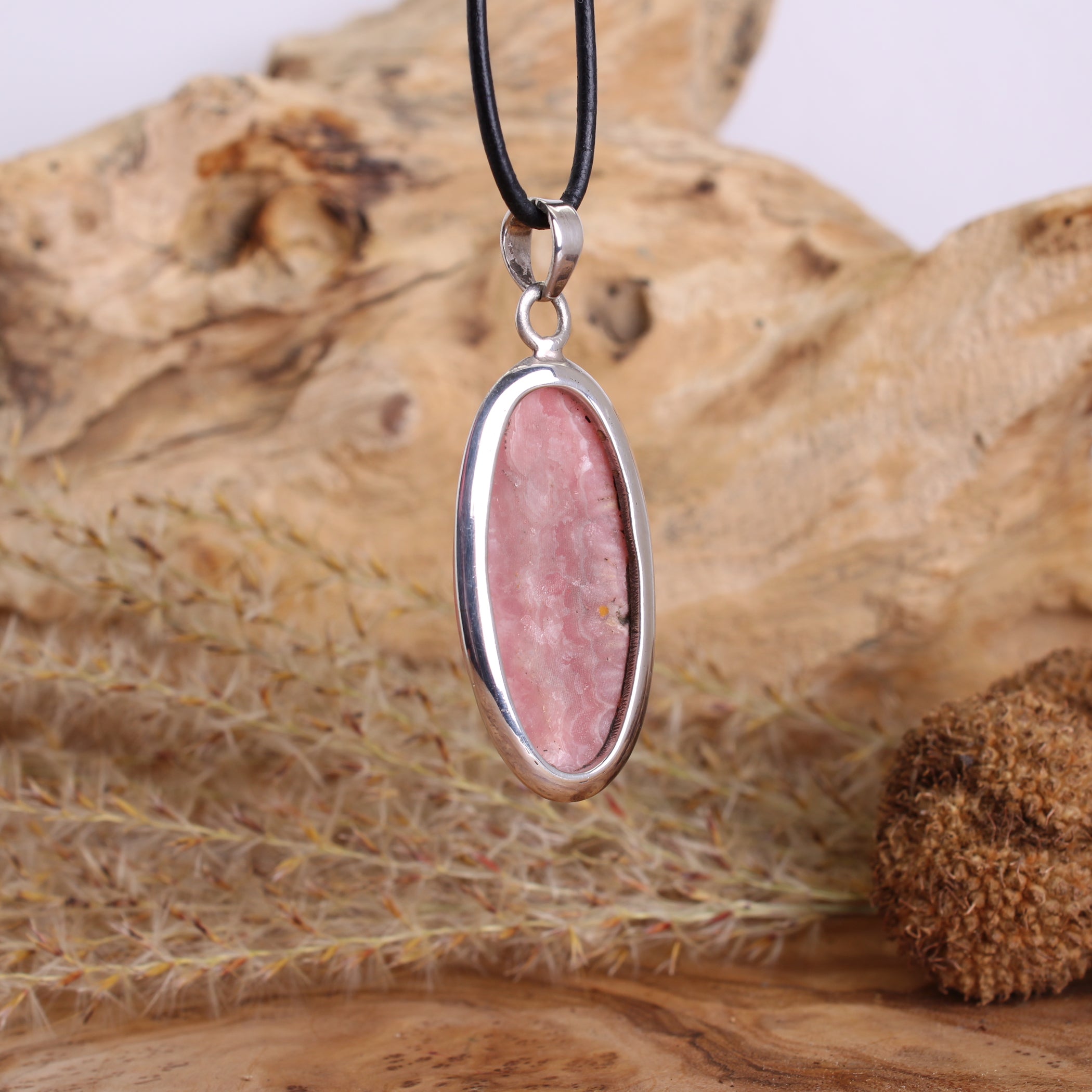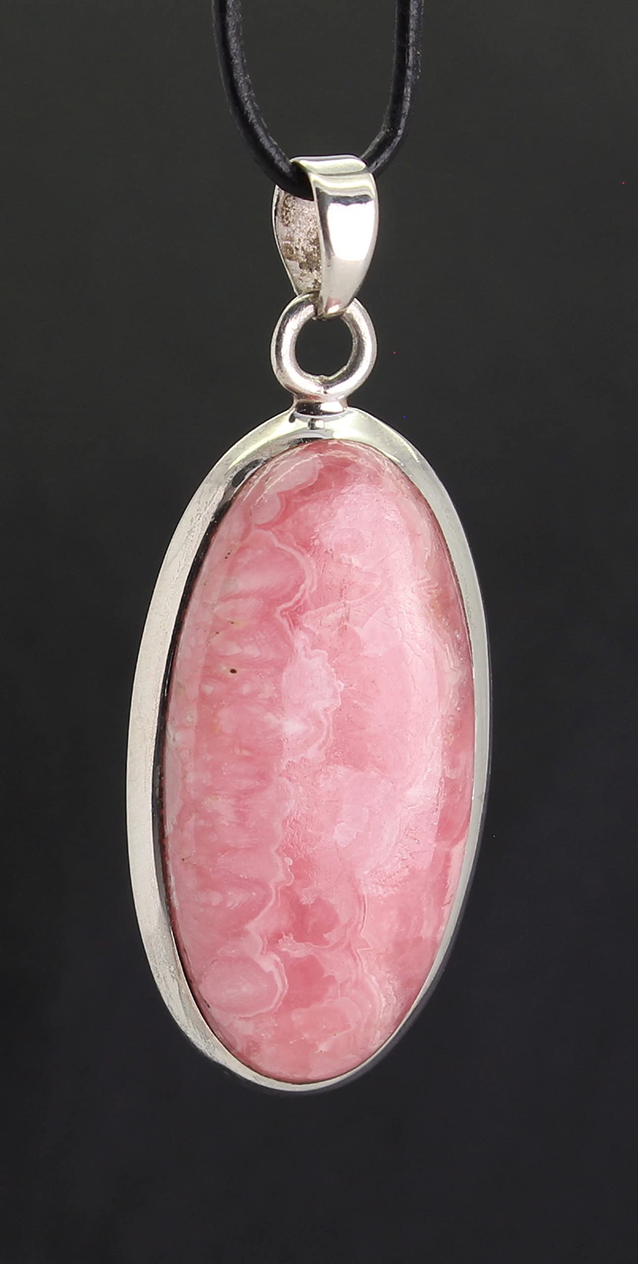 Rhodochrosit Anhänger Ketten Hals Schmuck 925 Sterling Silber echter Edelstein mit Lederband - Einzelstück