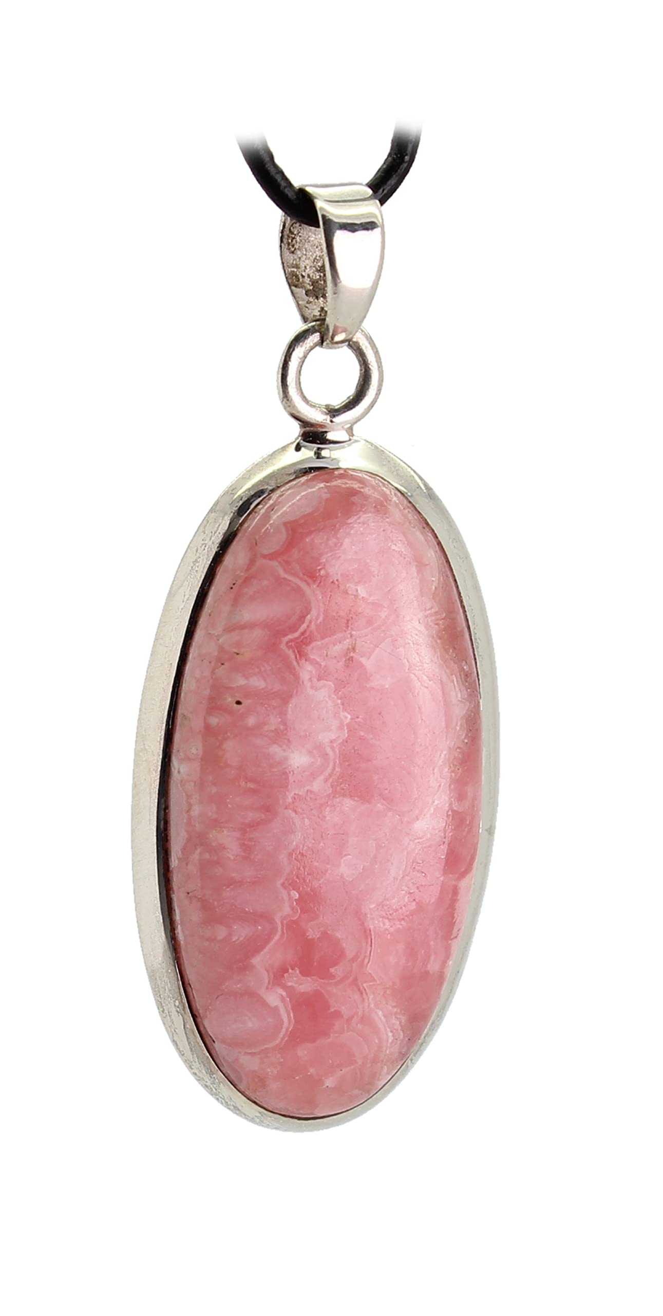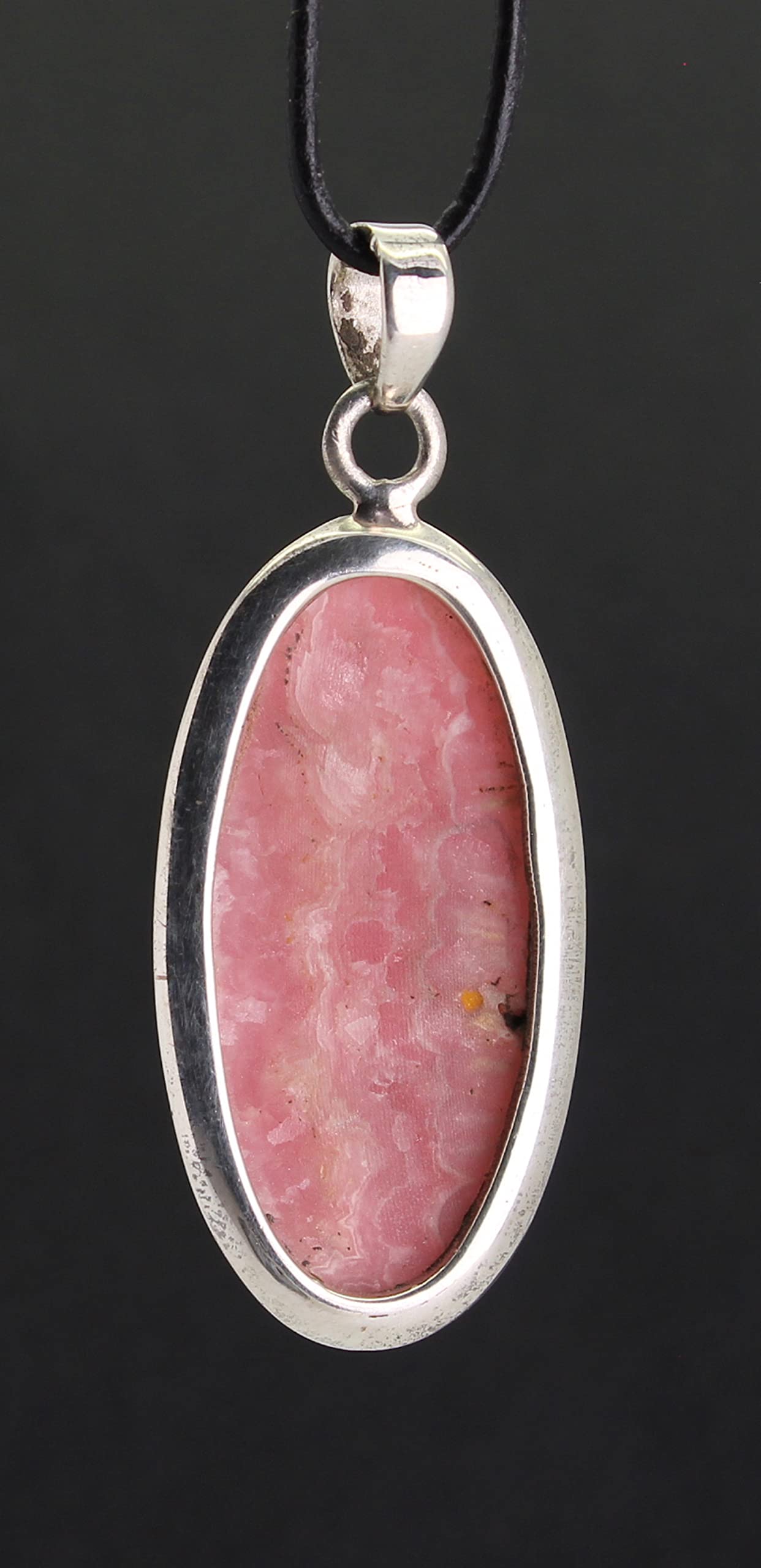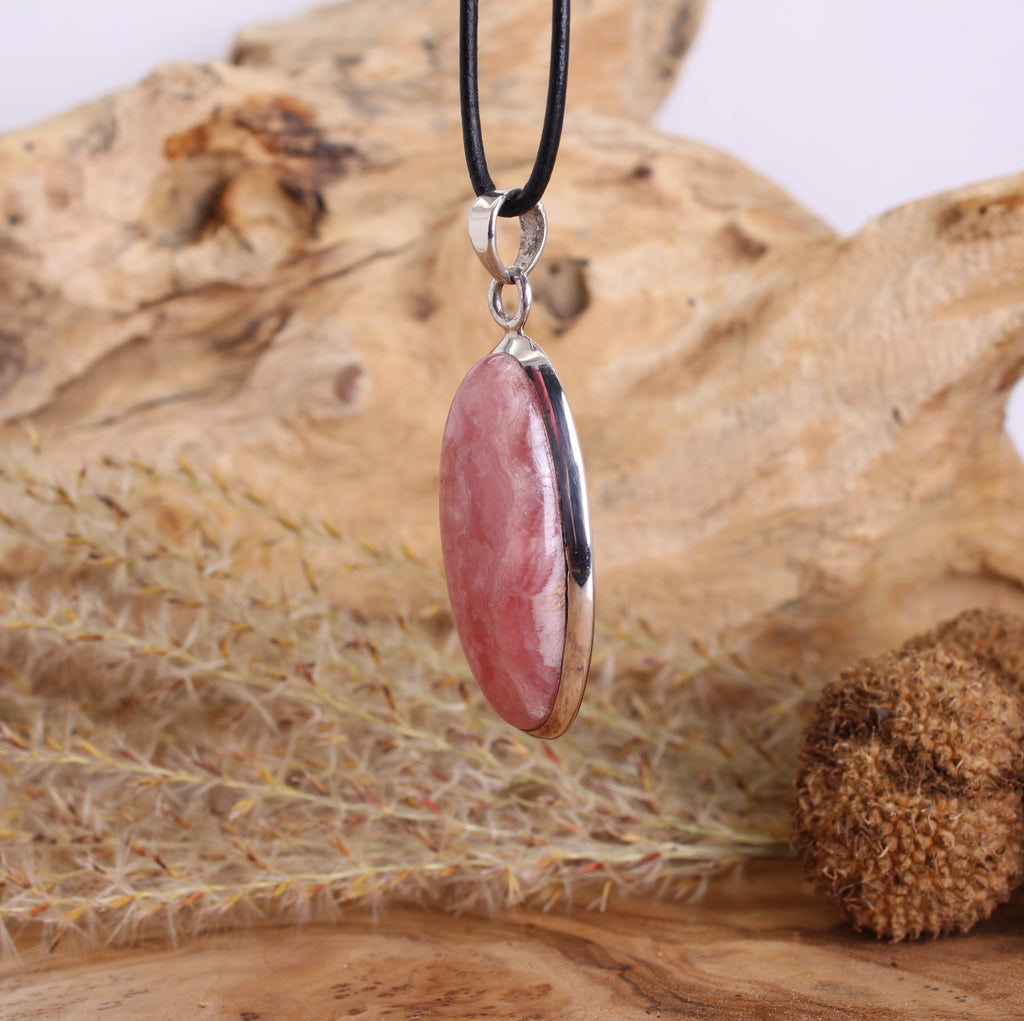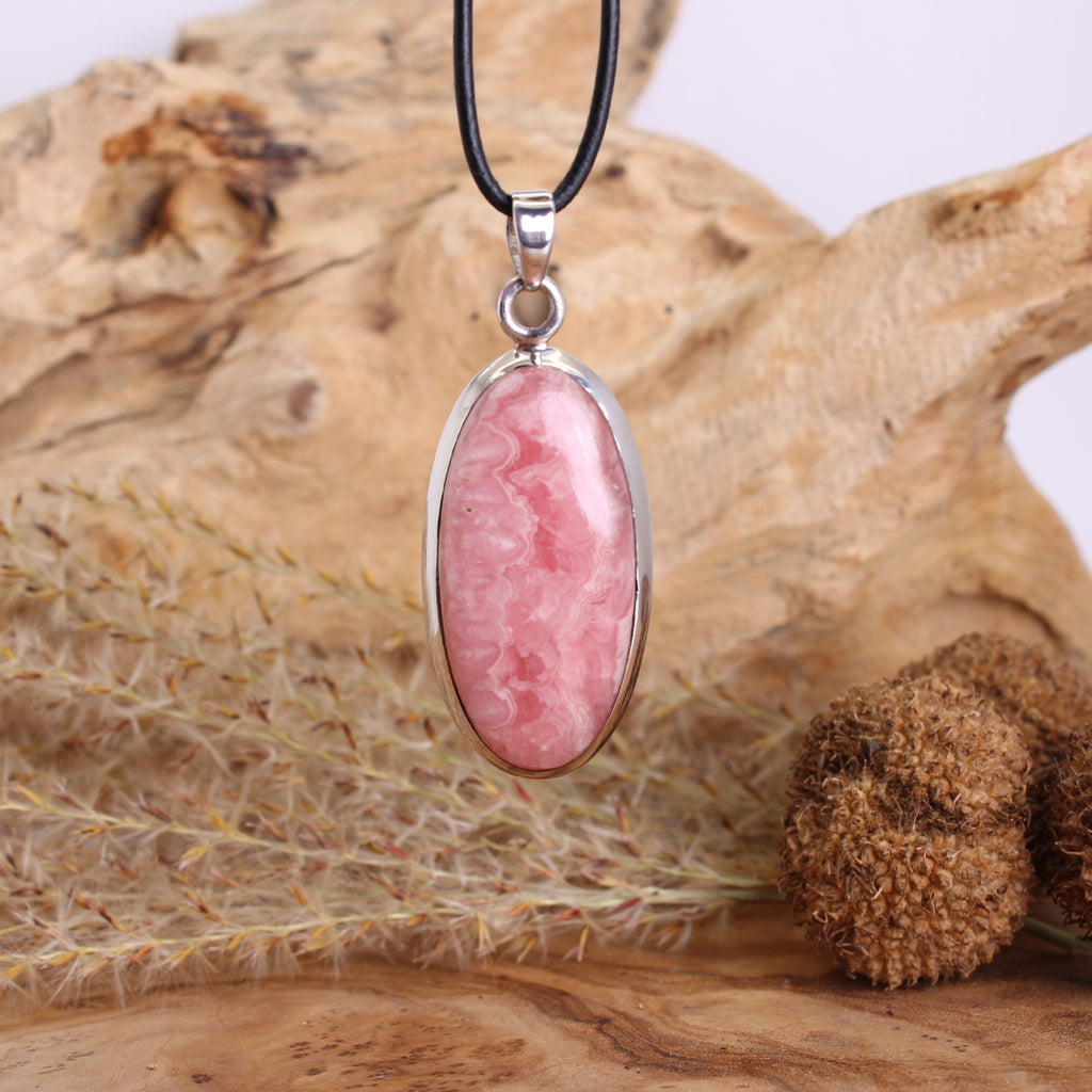 Rhodochrosit Anhänger Ketten Hals Schmuck 925 Sterling Silber echter Edelstein mit Lederband - Einzelstück