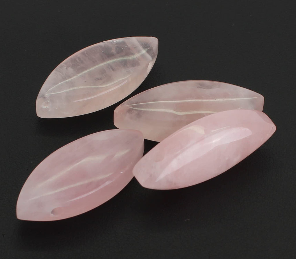 Harmonischer Edelstein: Rosenquarz in edler Navettenform – bekannt als Stein der Liebe, mit zart rosafarbener Ausstrahlung und beruhigender Wirkung