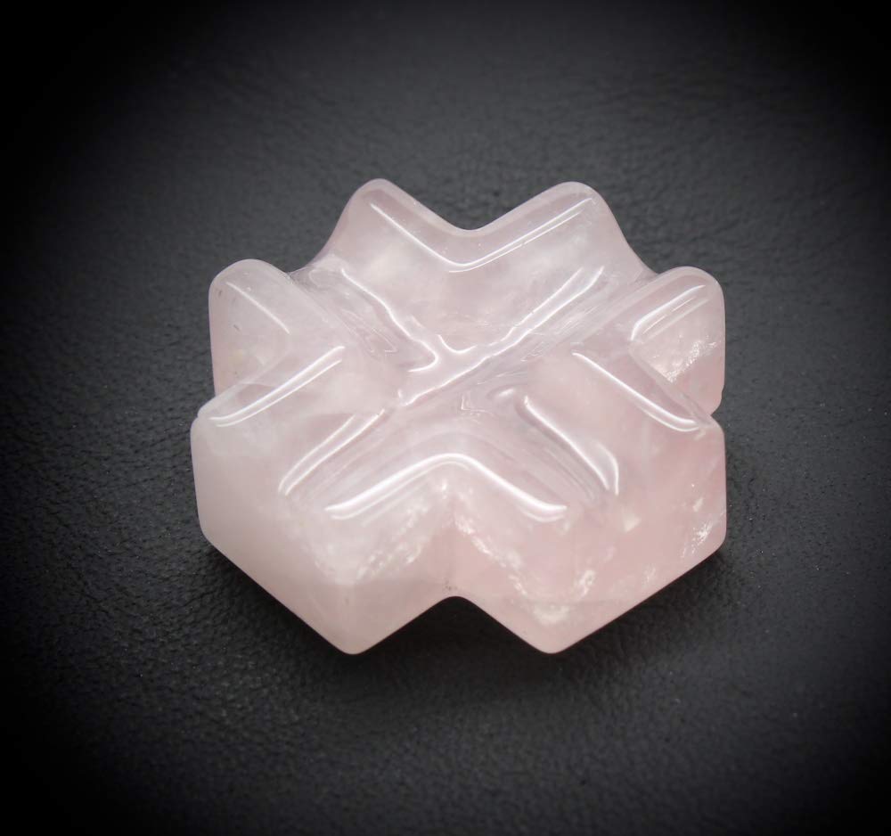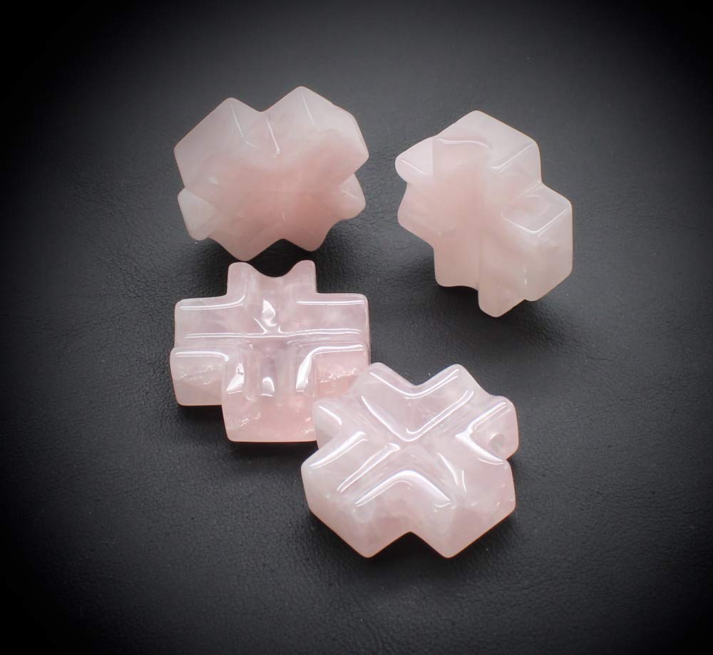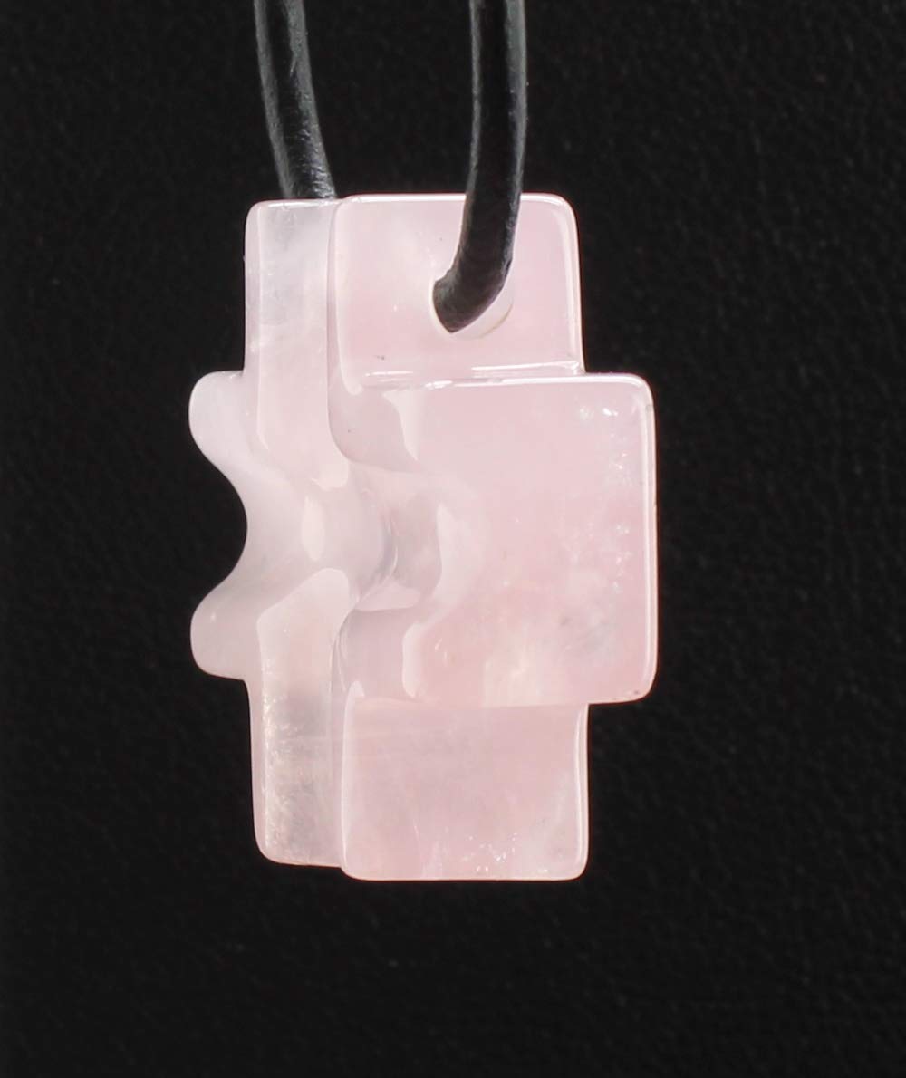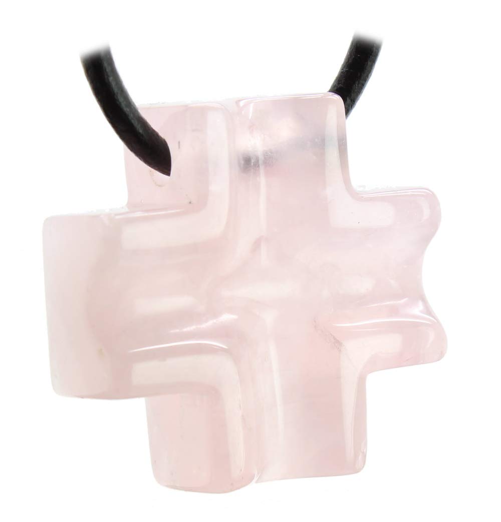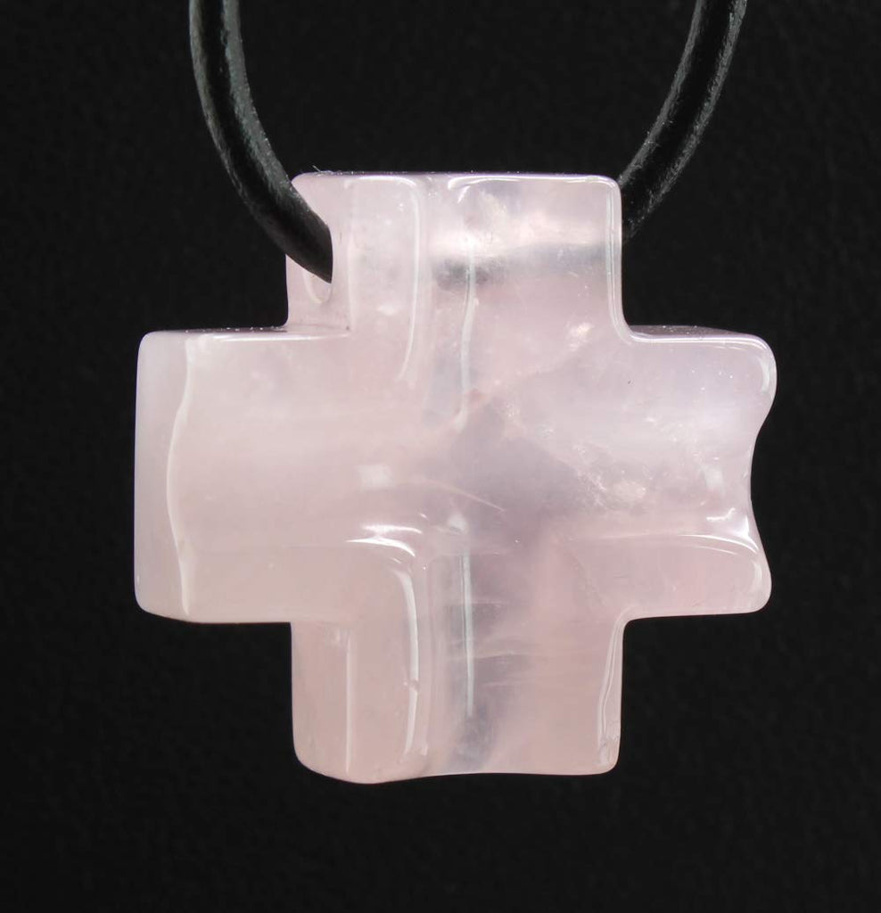 Rosenquarz Kreuz Anhänger ca. 25 x 25 mm – kleiner gebohrter Edelstein mit Lederband – spirituelles Symbol für Liebe & Schutz – inkl. Organzasäckchen
