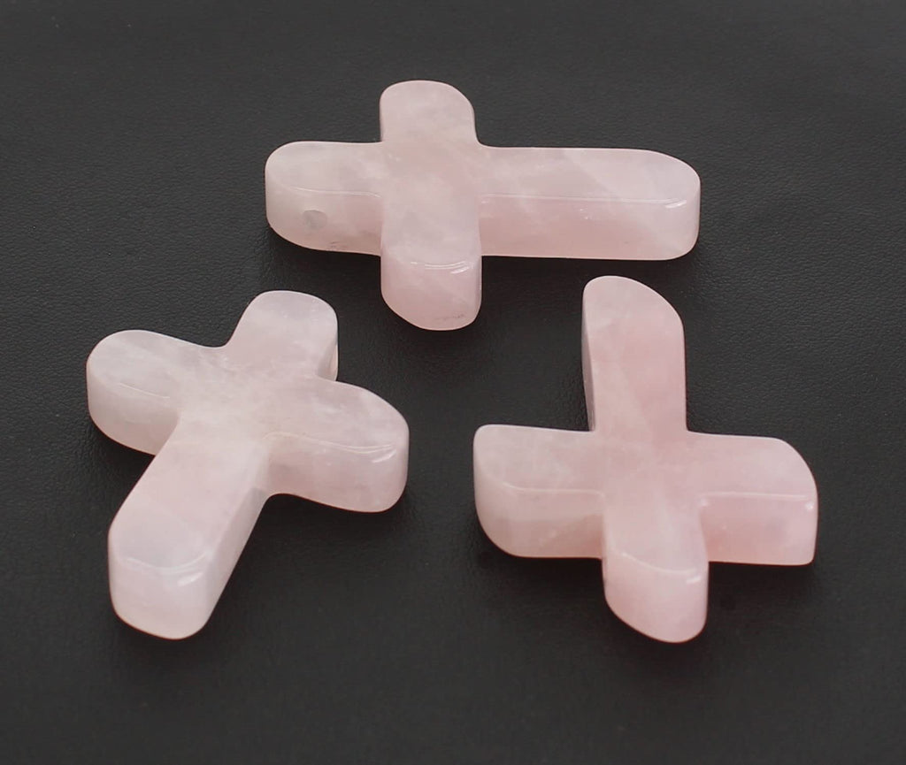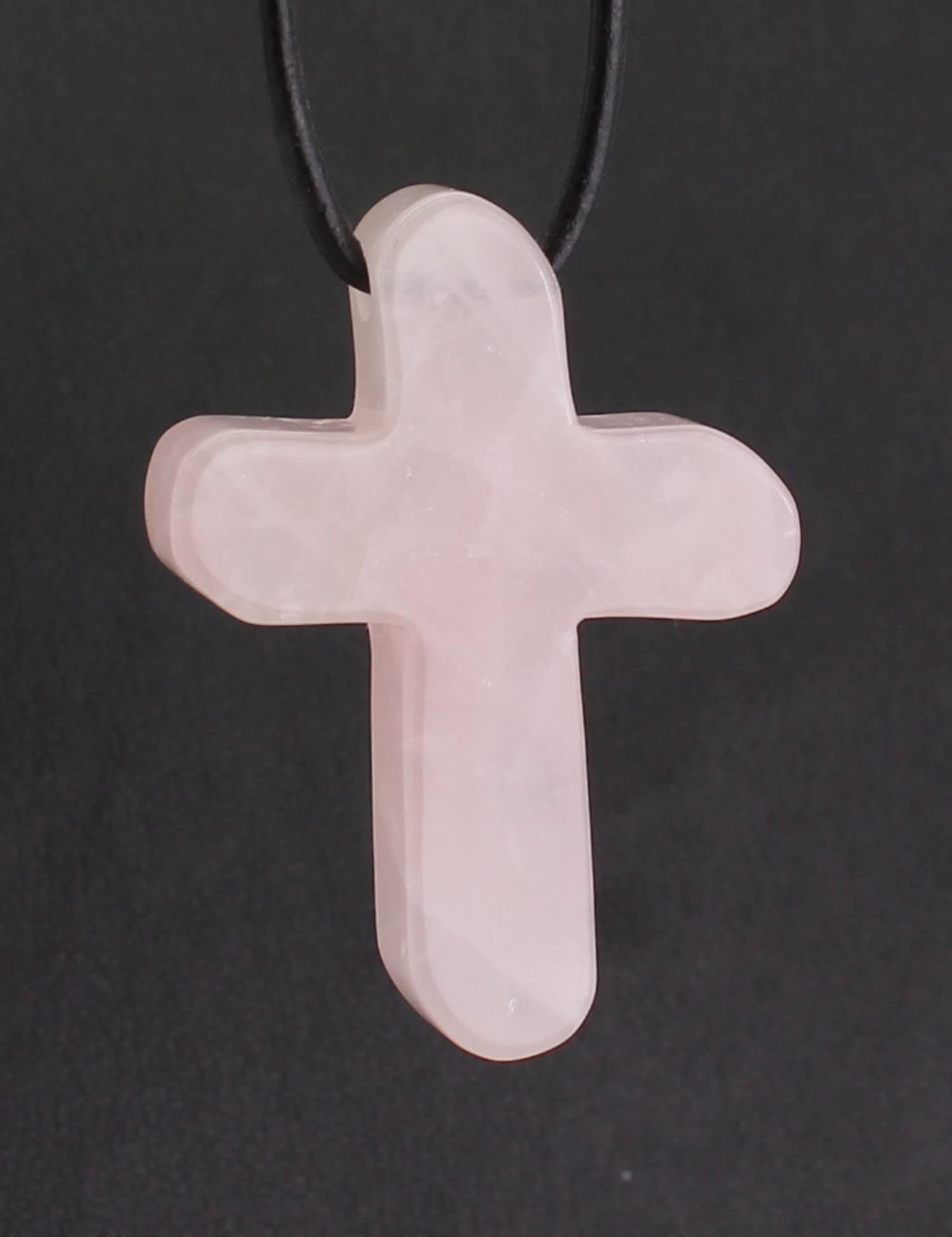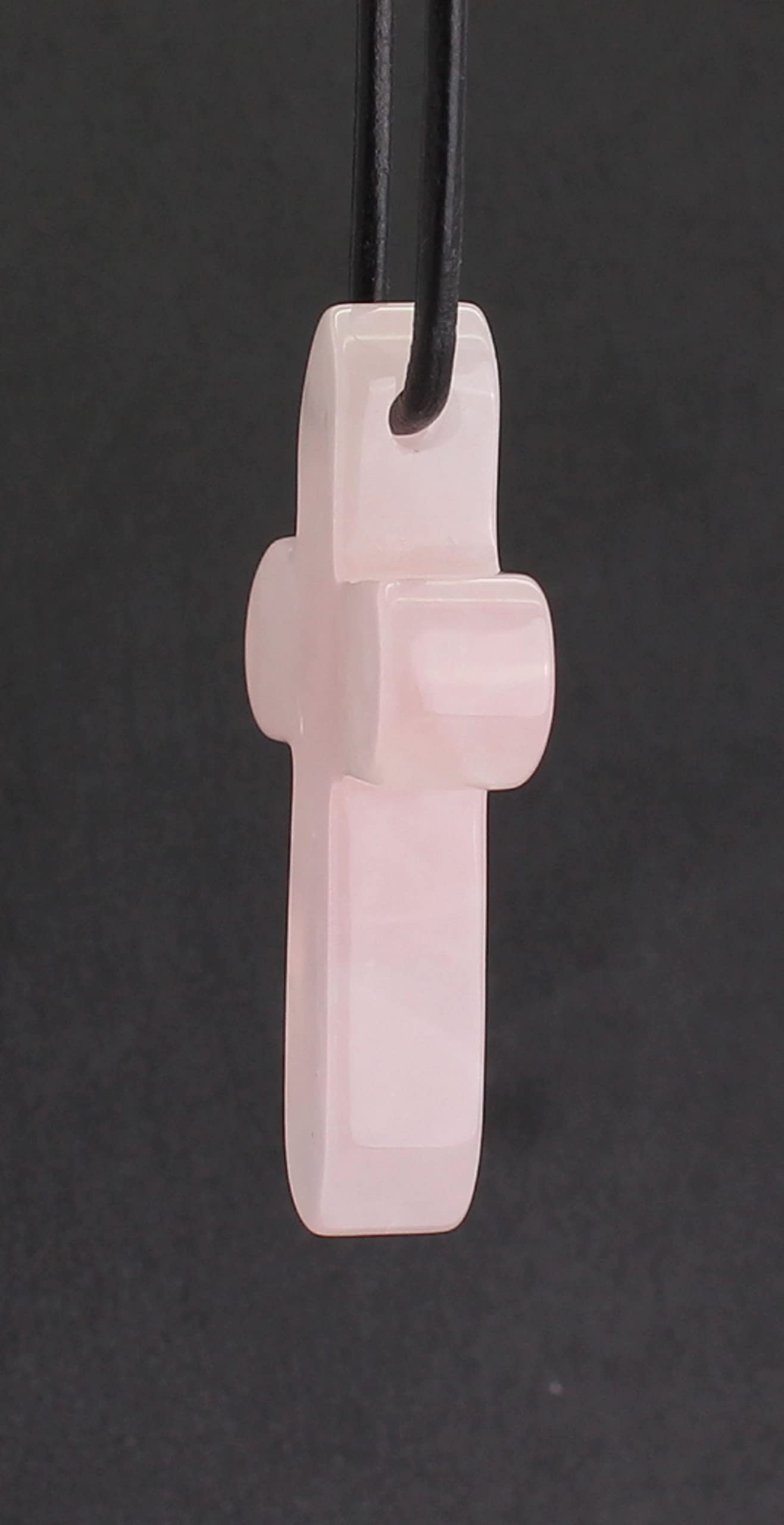 Kraftvolles Symbol: Kreuz-Anhänger aus echtem Rosenquarz – Stein der Liebe und Heilung mit sanftem Rosa-Ton und spiritueller Bedeutung