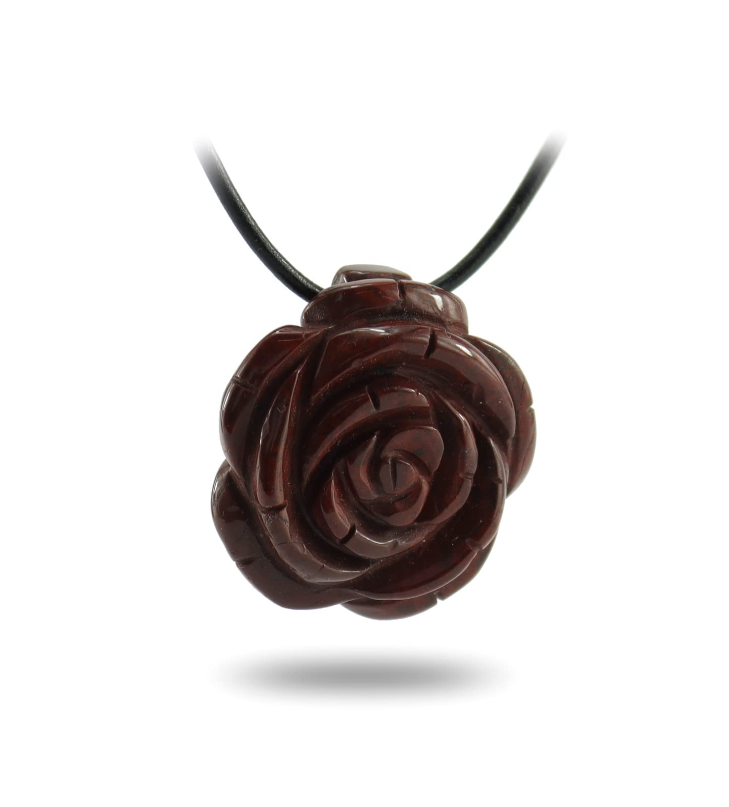 Jaspis Edelstein Anhänger Rose Kettenanhänger mit Lederband