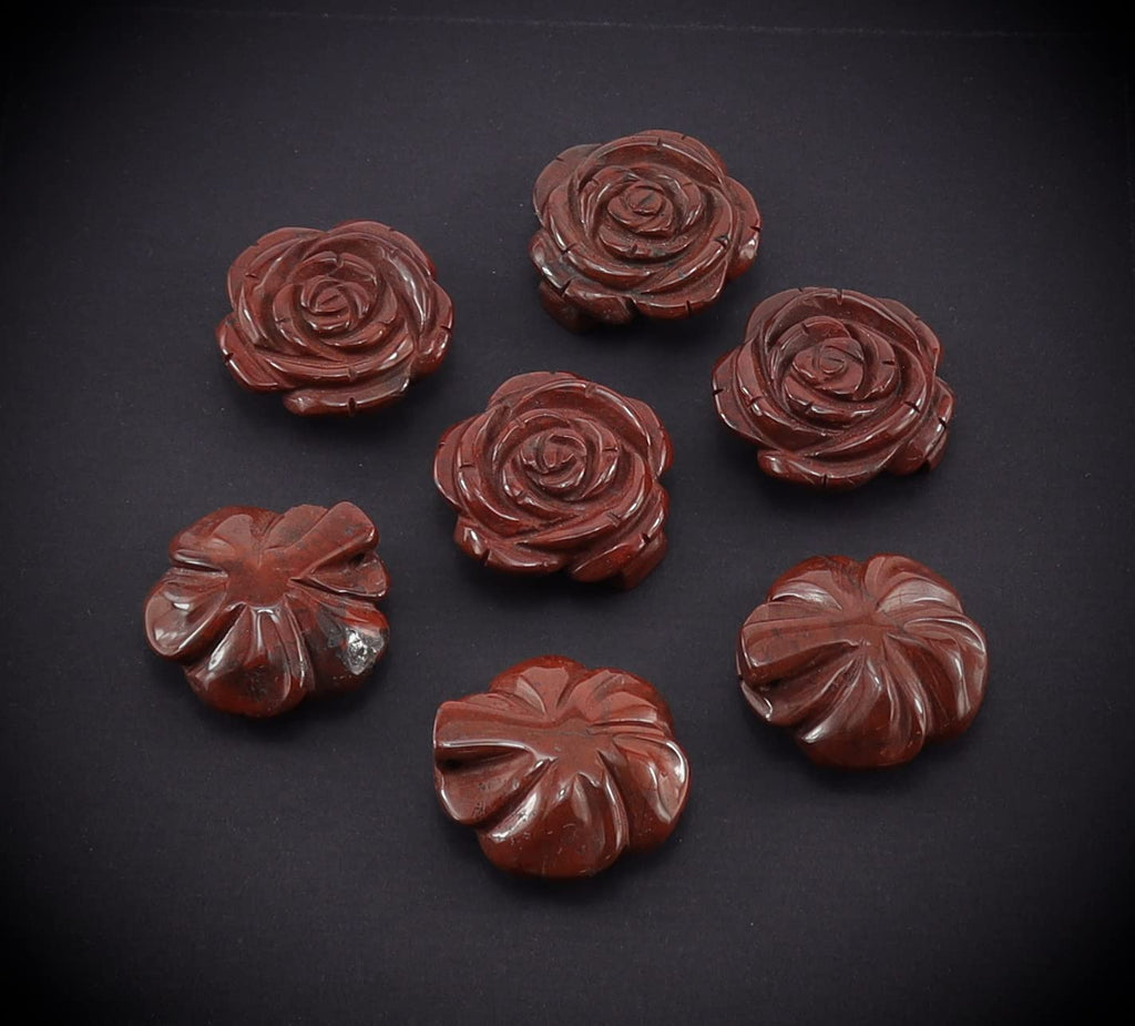 Sie erhalten hier einen Kettenanhänger Rosenblüte aus dem Edelstein Jaspis. Der Anhänger misst eine Größe von ca. 35 mm und wird mit einem schwarzen Lederband in einem Organzasäckchen geliefert. Bitte beachten Sie vor Ihrem Kauf, dass die Produktbilder als Beispiel dienen, denn Edelsteine sind ein Naturprodukt und können daher in Farbe, Form und Zeichnung variieren. Jeder Edelstein ist ein Unikat.