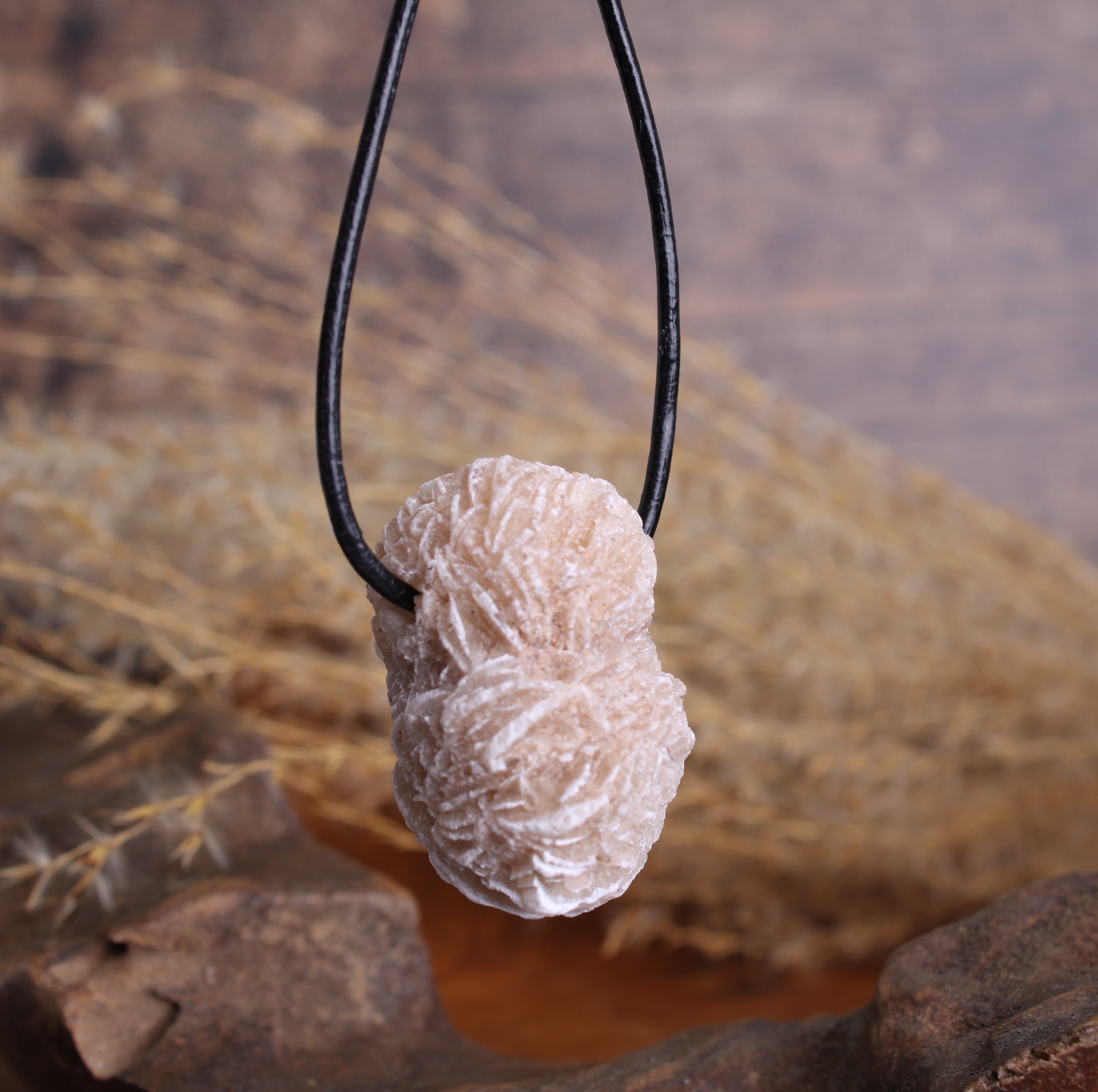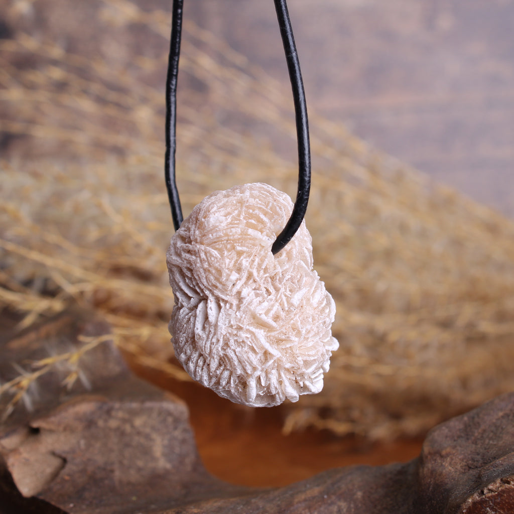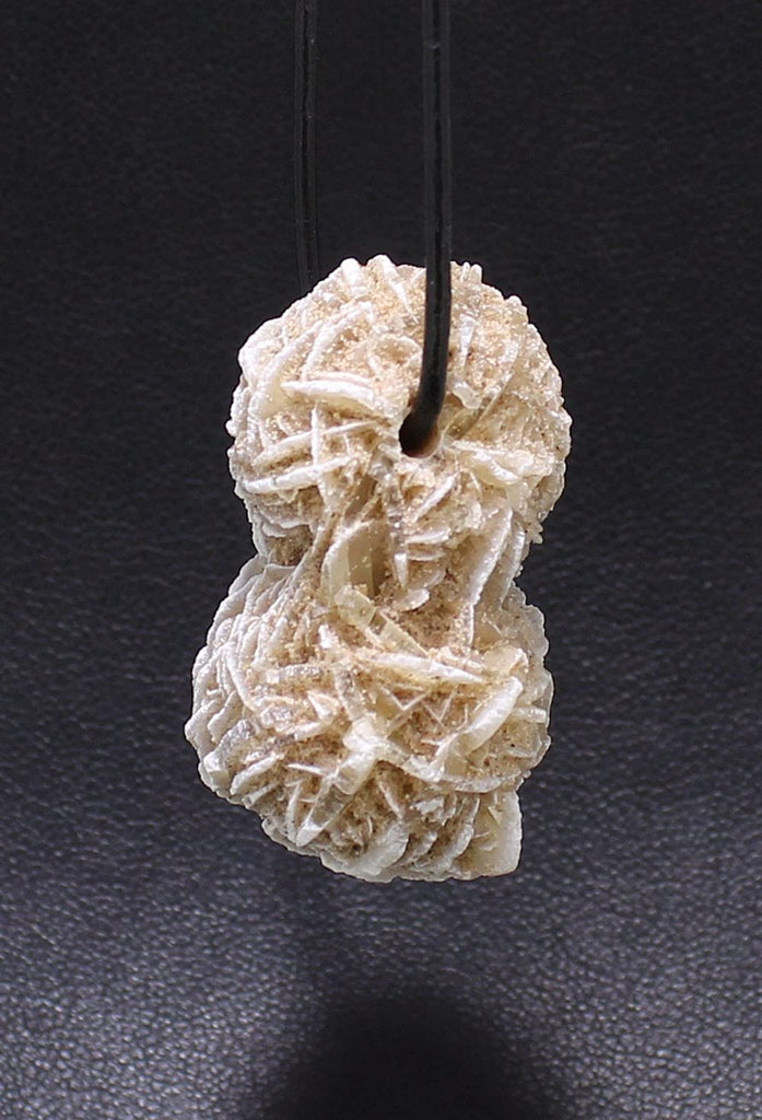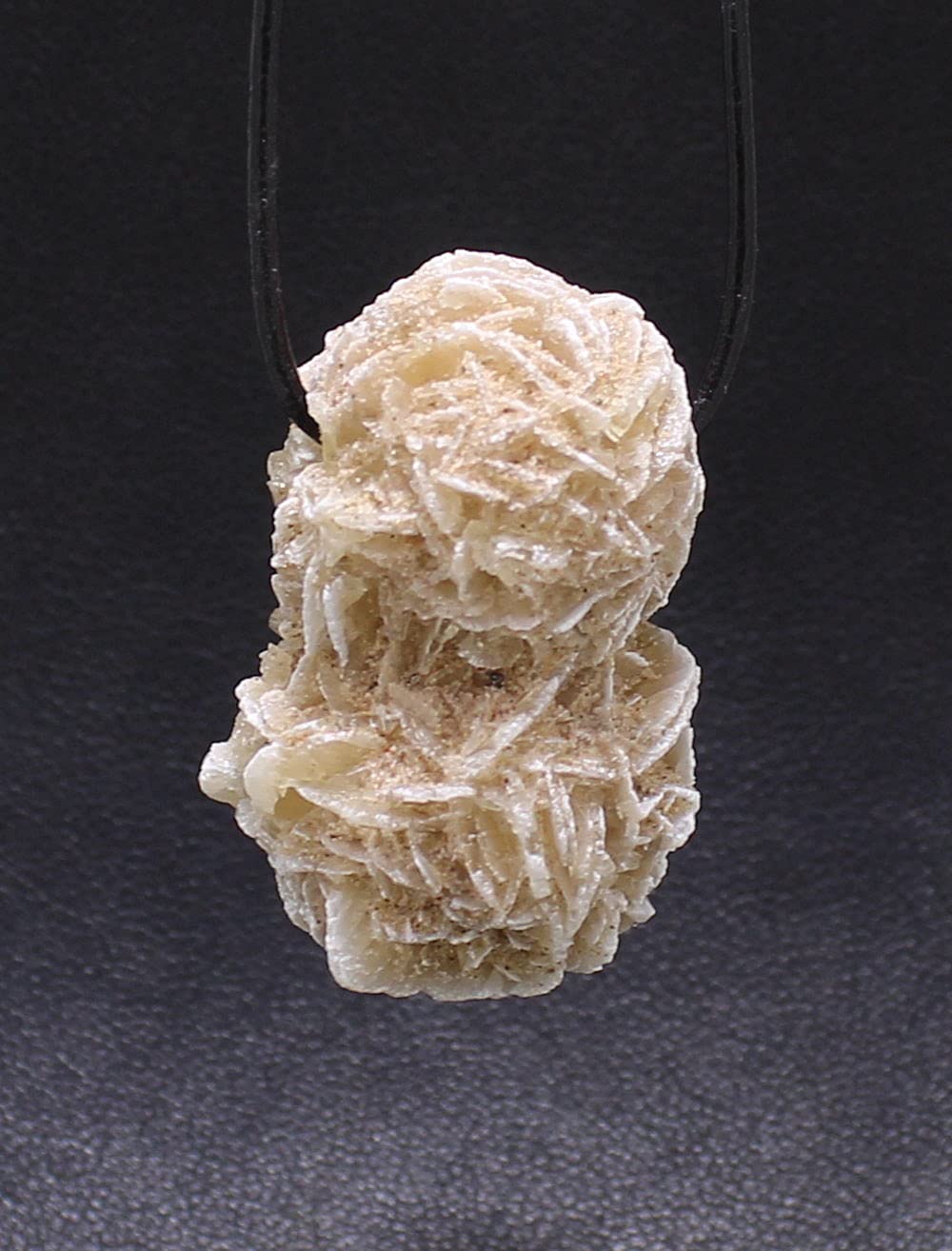 Sandrose Anhänger – gebohrtes Einzelstück – Naturstein mit 1 m Lederband (kürzbar) – Lieferung im Organzasäckchen