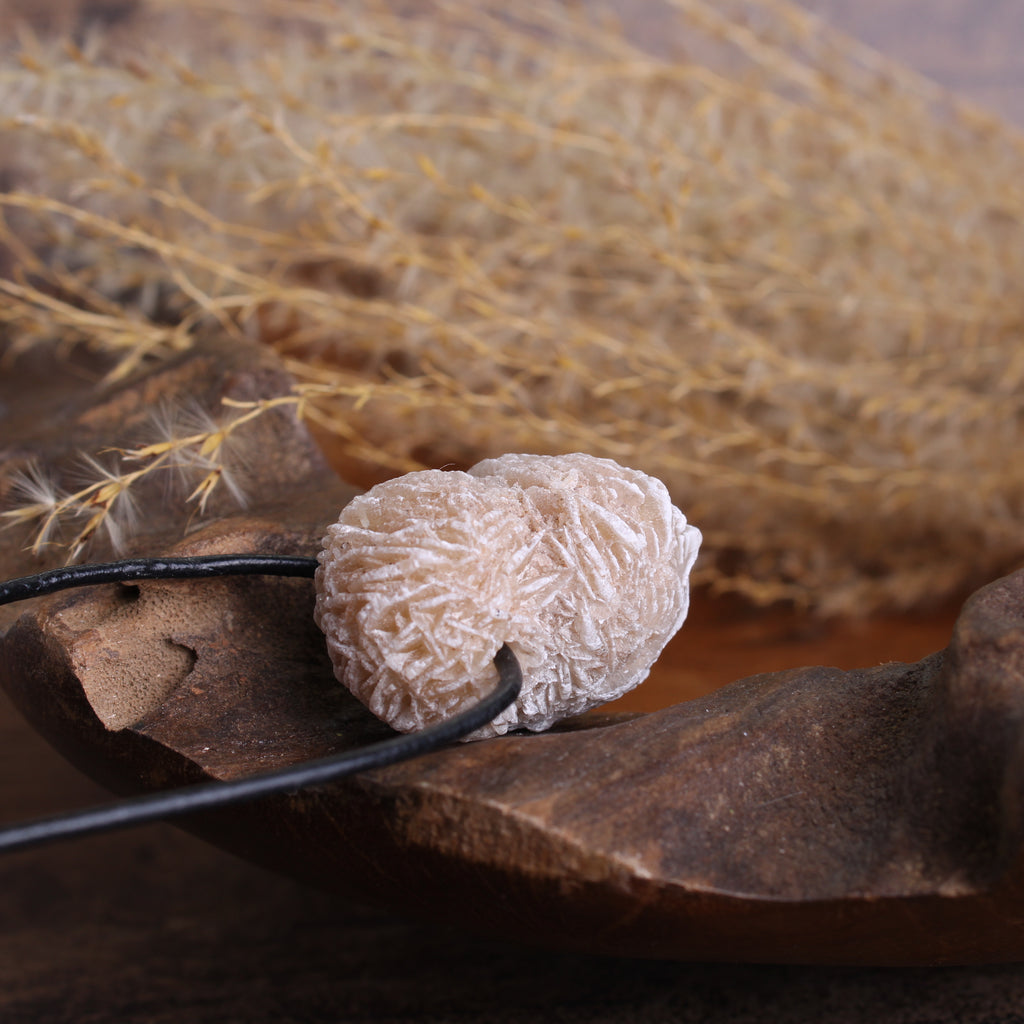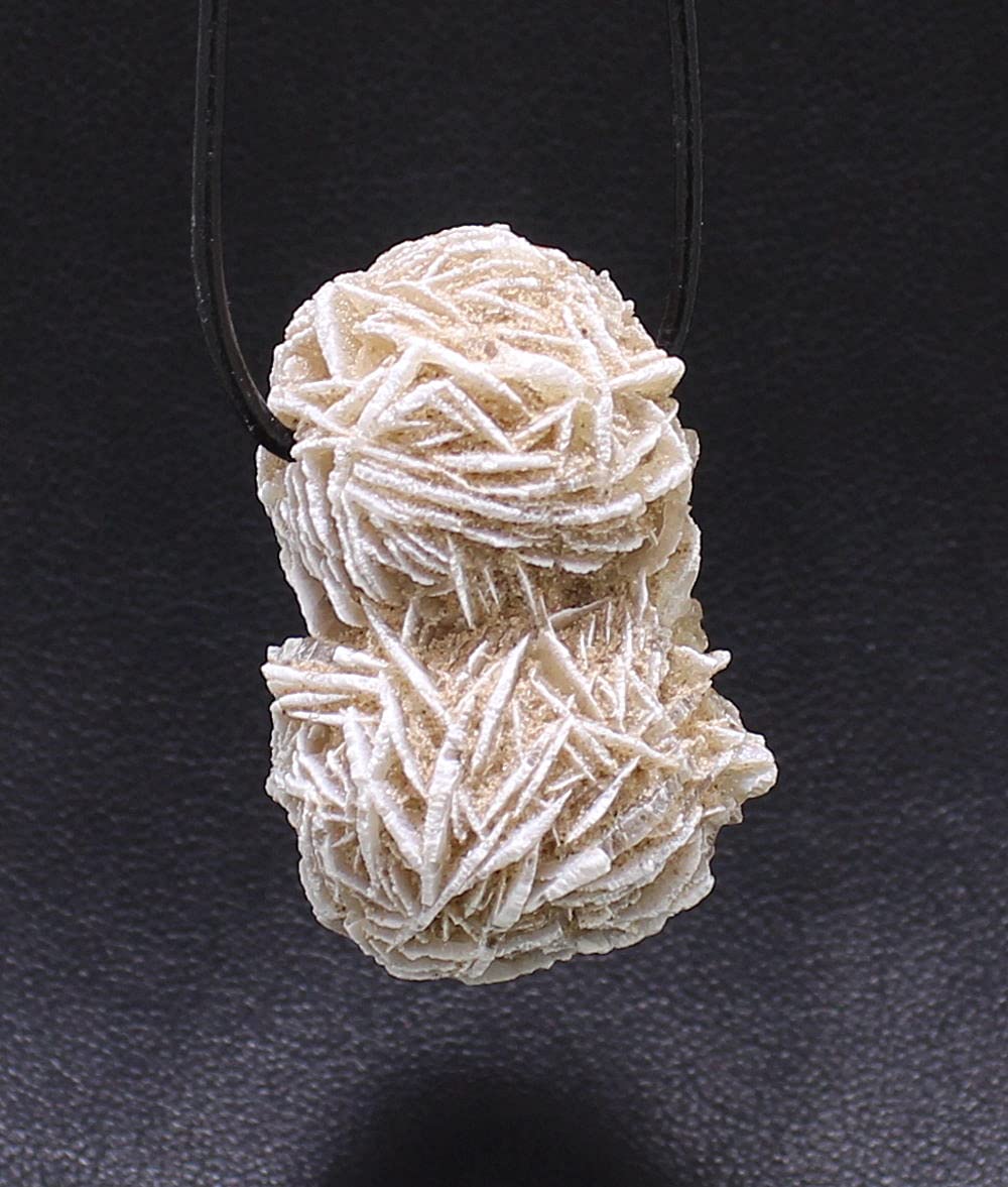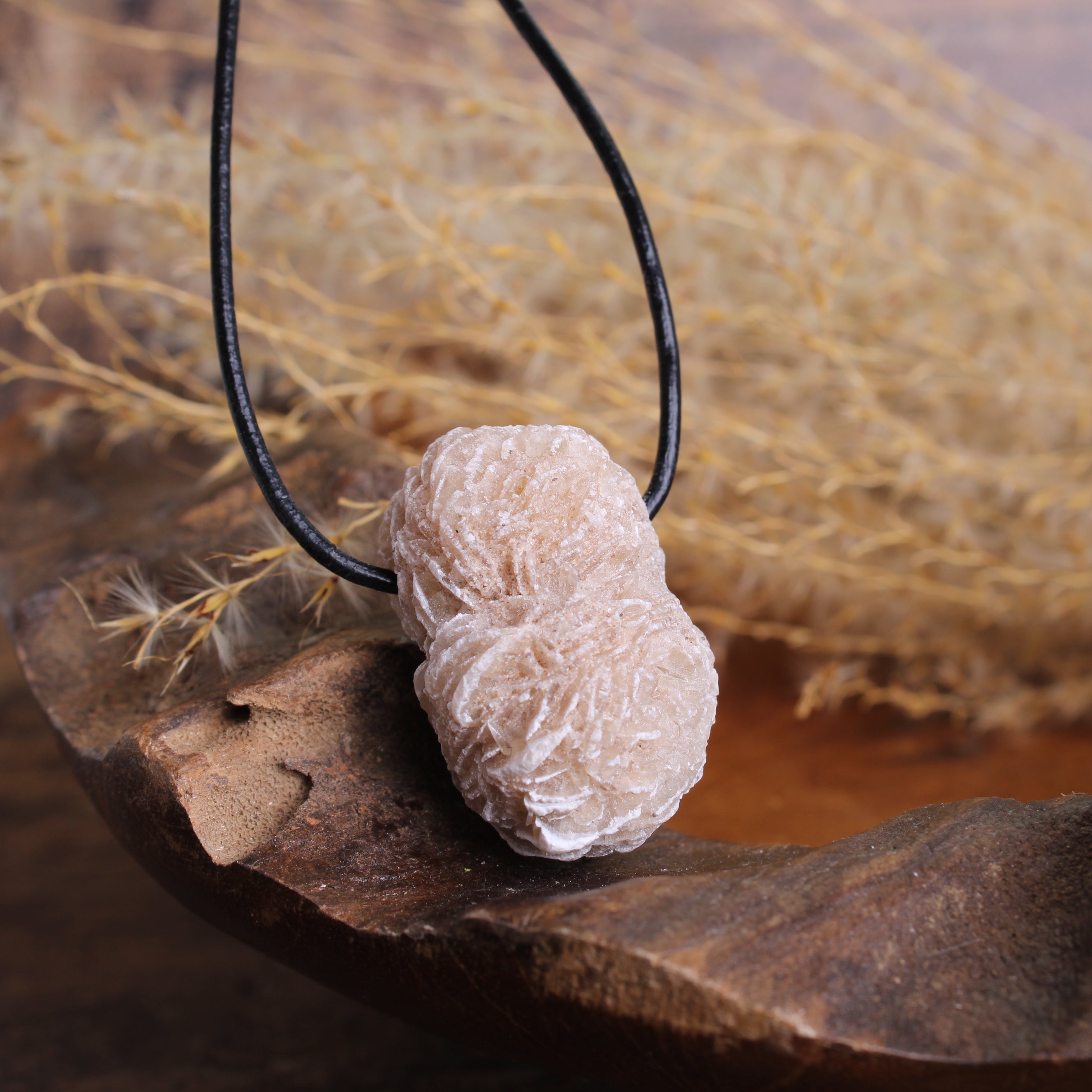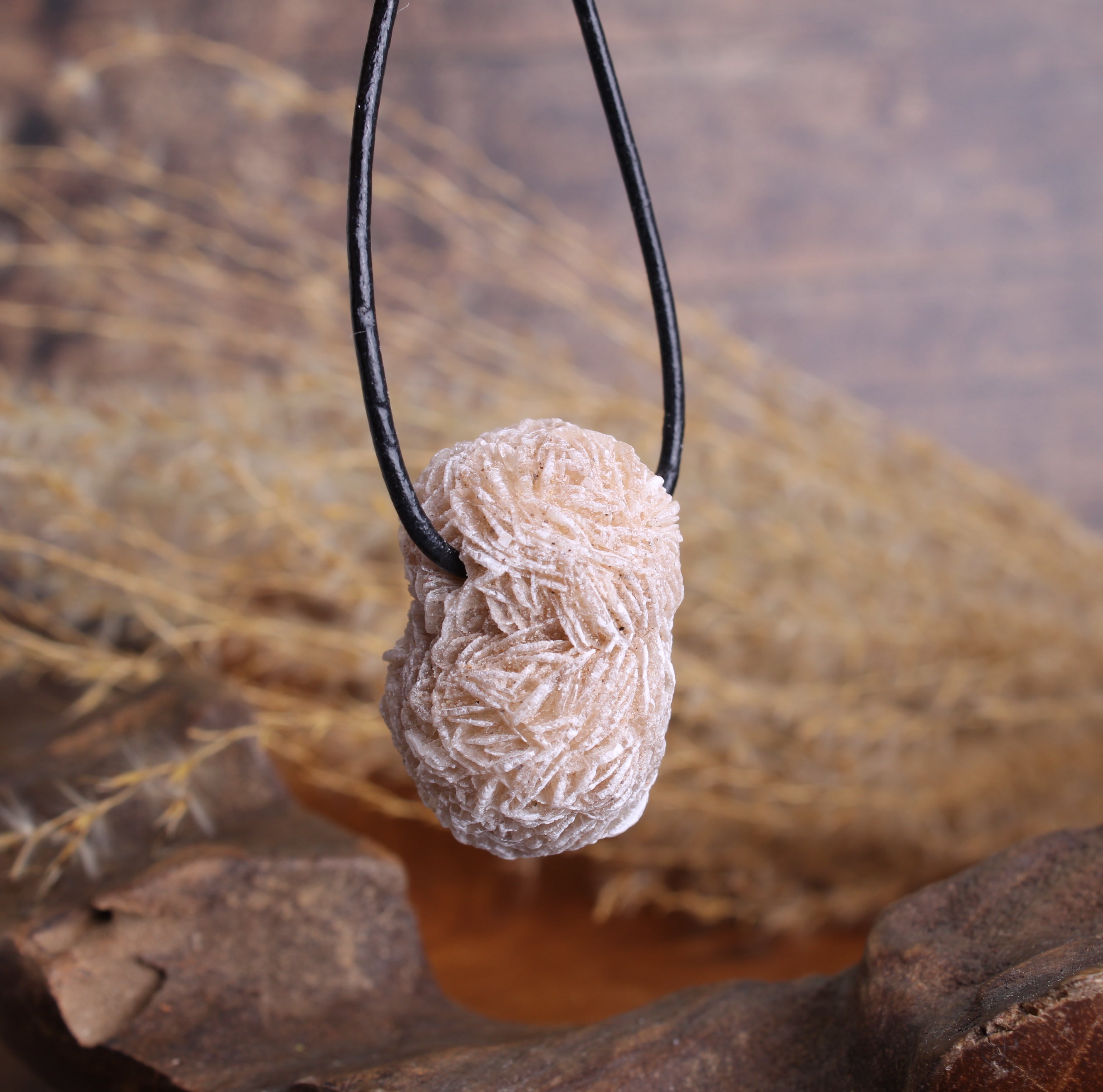 Sandrose Anhänger – gebohrtes Einzelstück – Naturstein mit 1 m Lederband (kürzbar) – Lieferung im Organzasäckchen