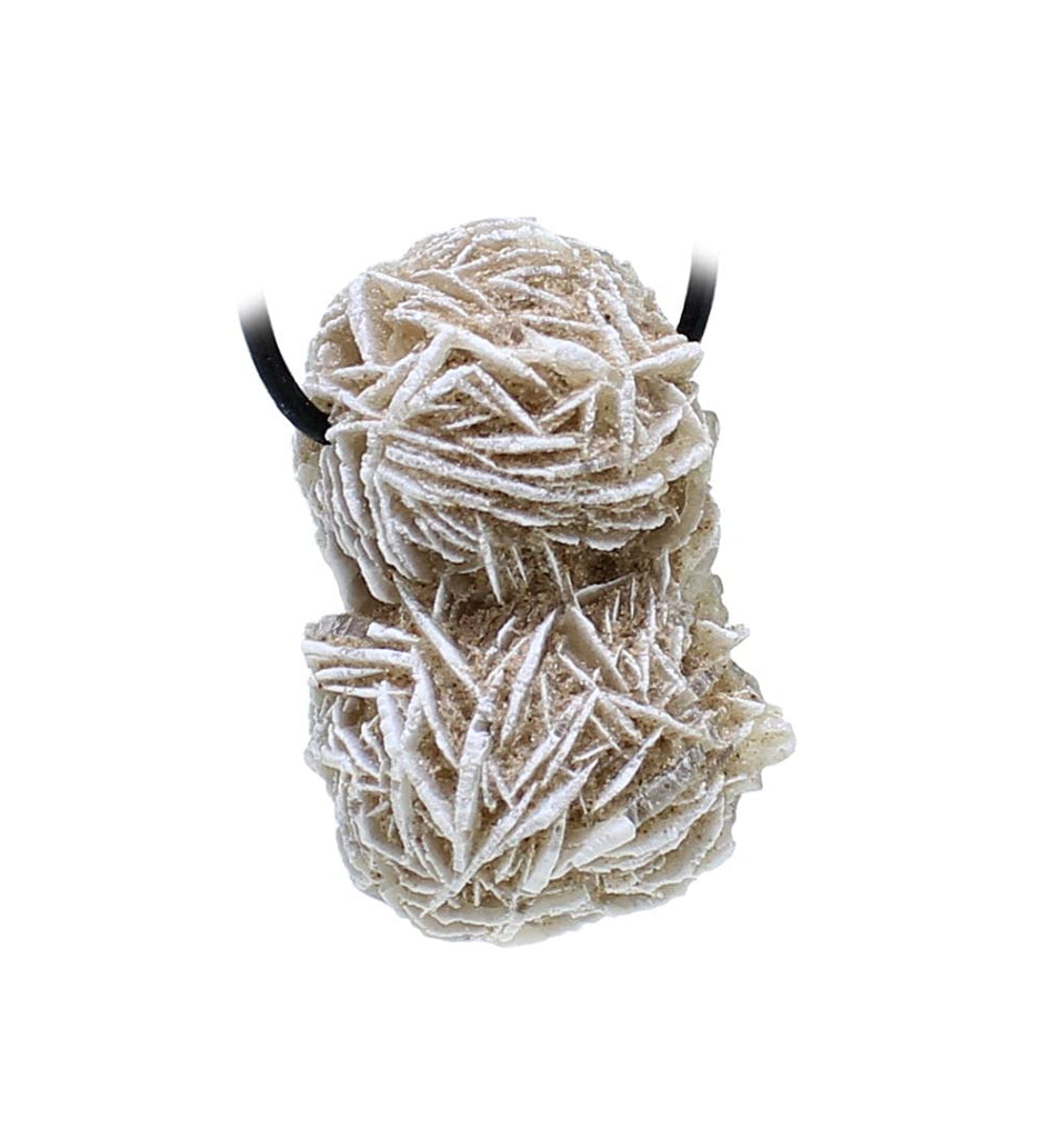 Original Sandrose Naturstein: Du erhältst genau den abgebildeten Anhänger – ein naturbelassenes Unikat mit der typischen, rosettenartigen Kristallstruktur.