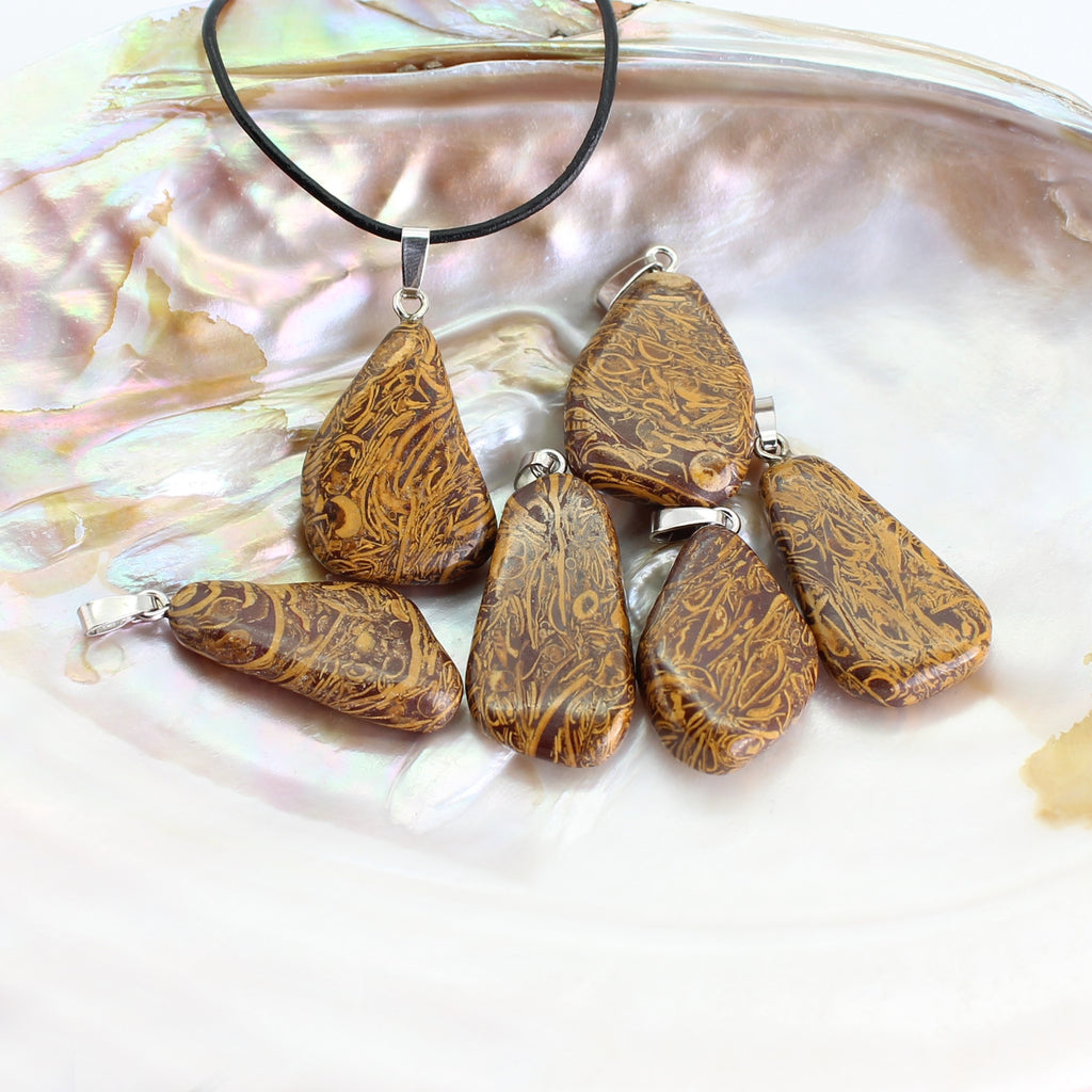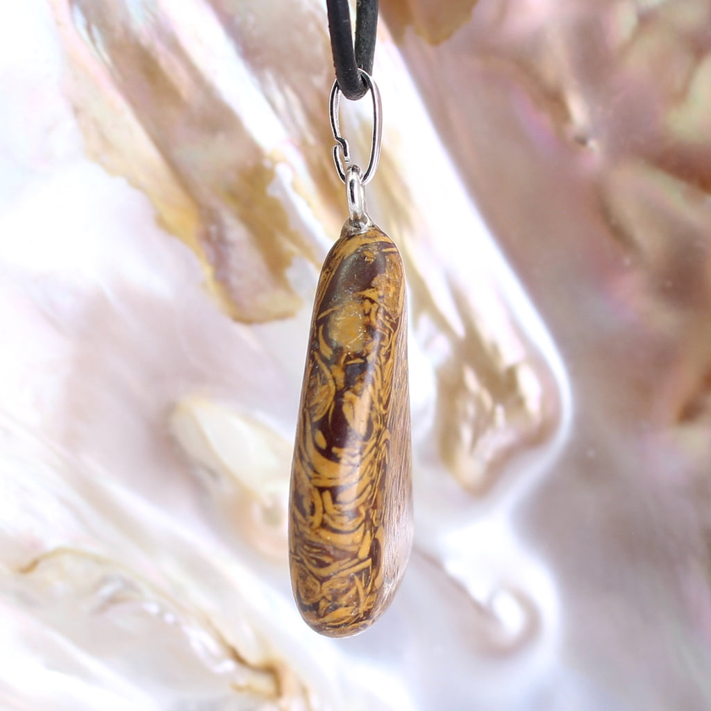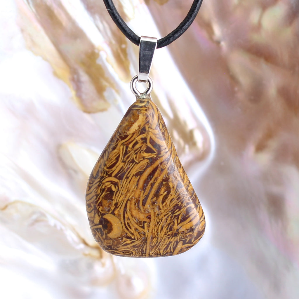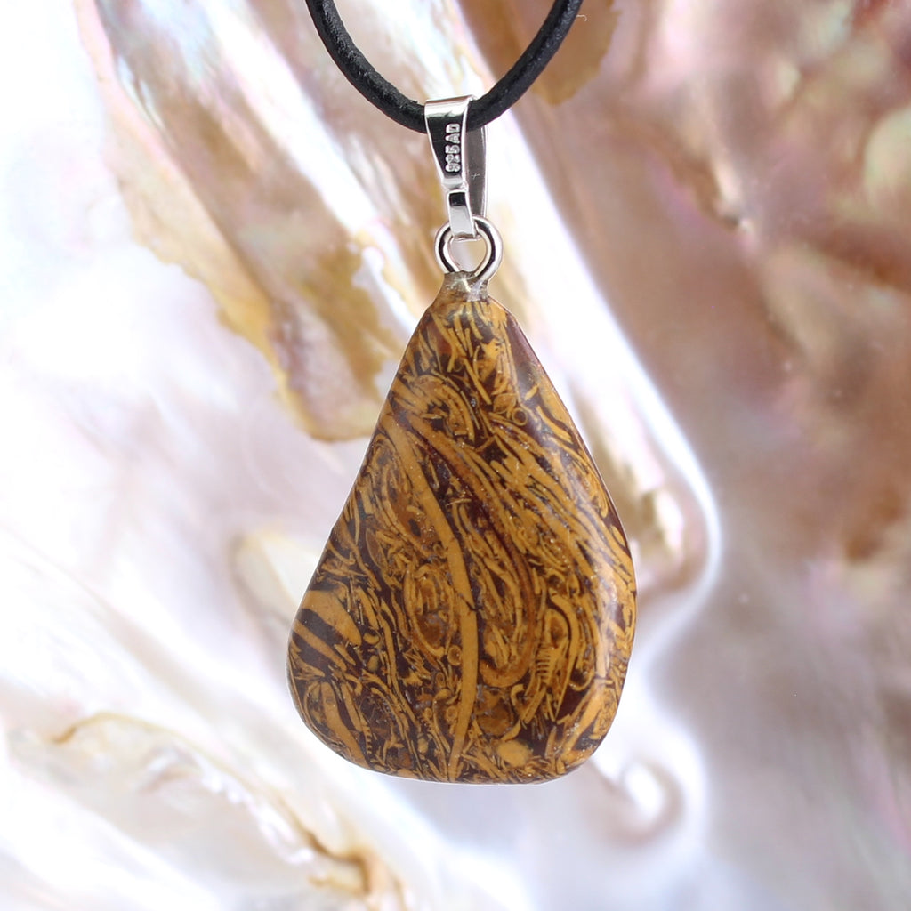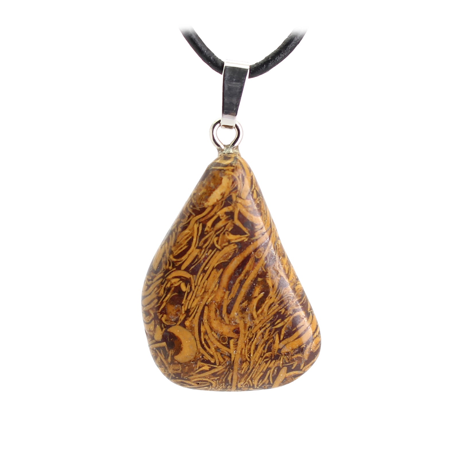 Schlangenjaspis Trommelstein Anhänger Kettenanhänger 925er Silberöse mit Lederband