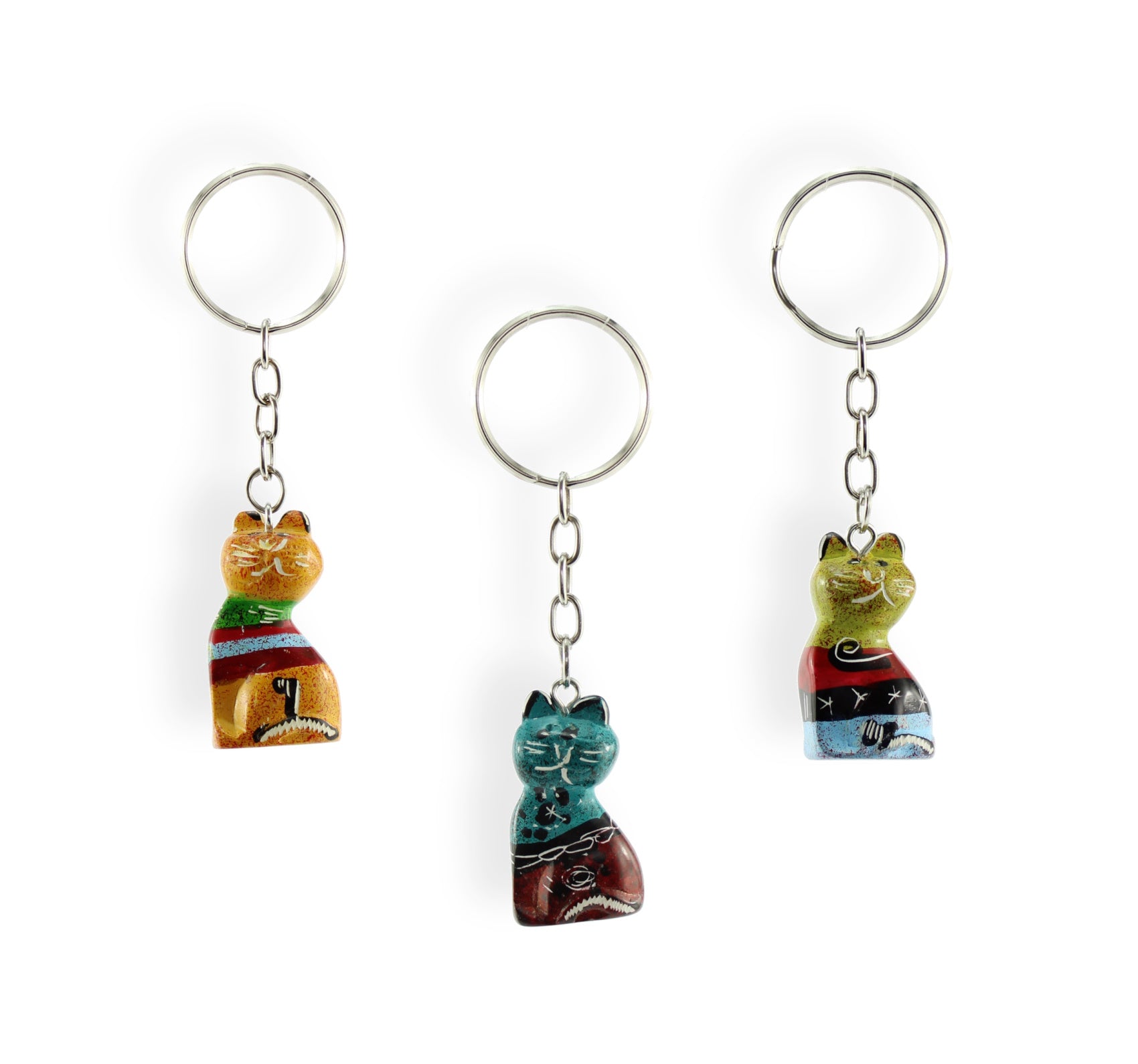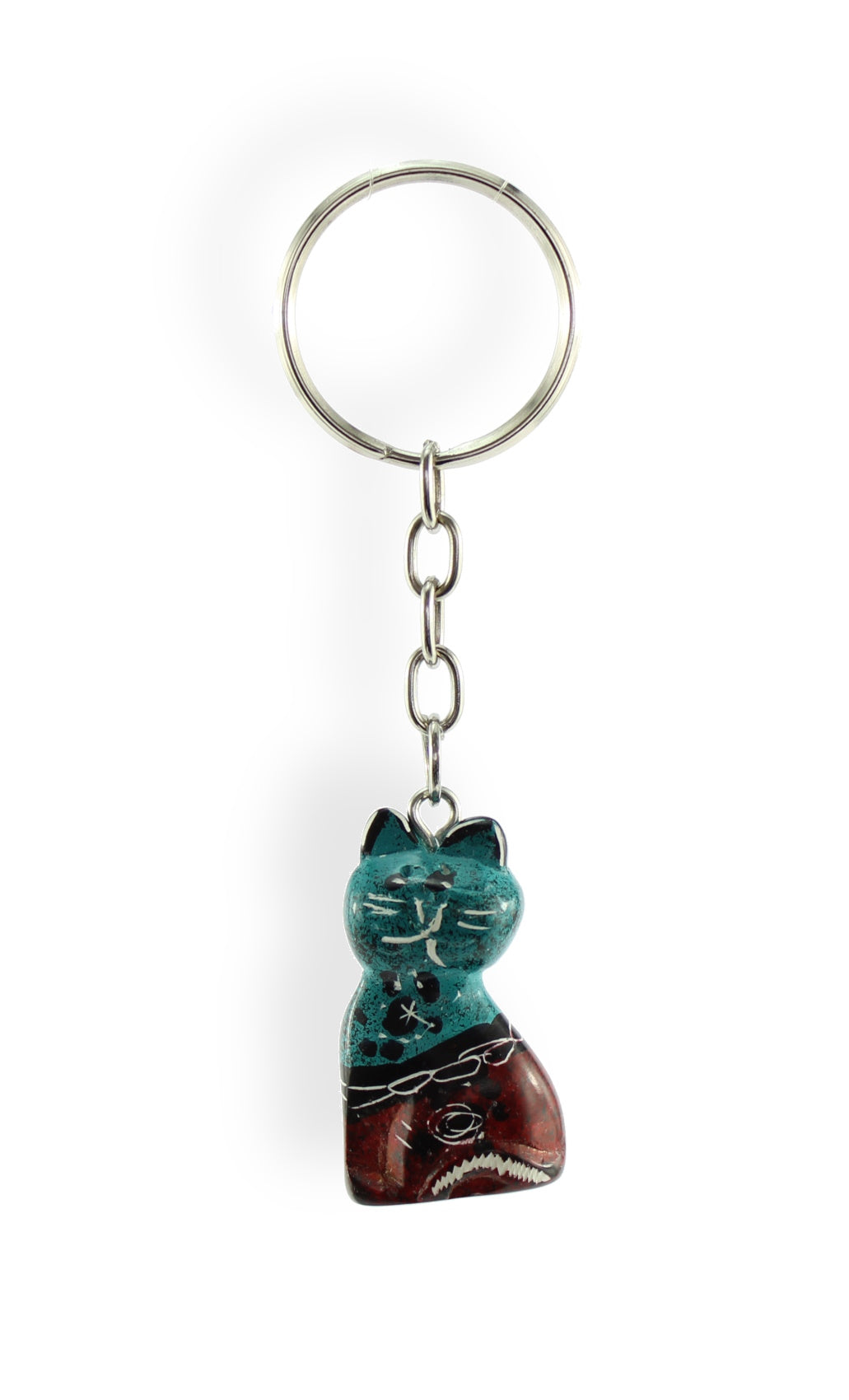 Speckstein Schlüsselanhänger Katze – Handbemalte Figur ca. 35×20 mm mit Metallring, Naturstein-Unikat