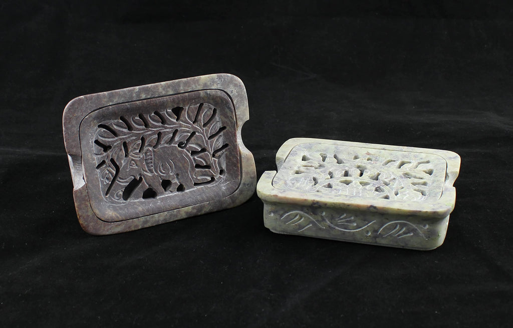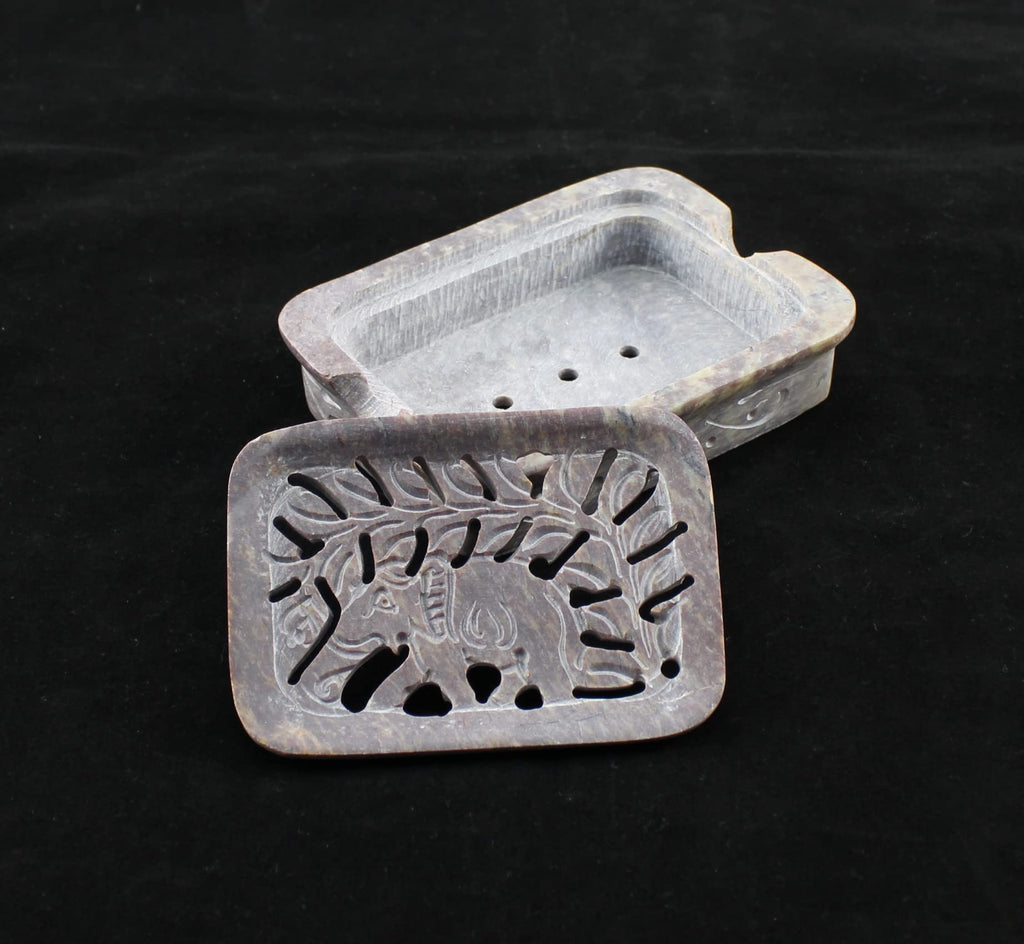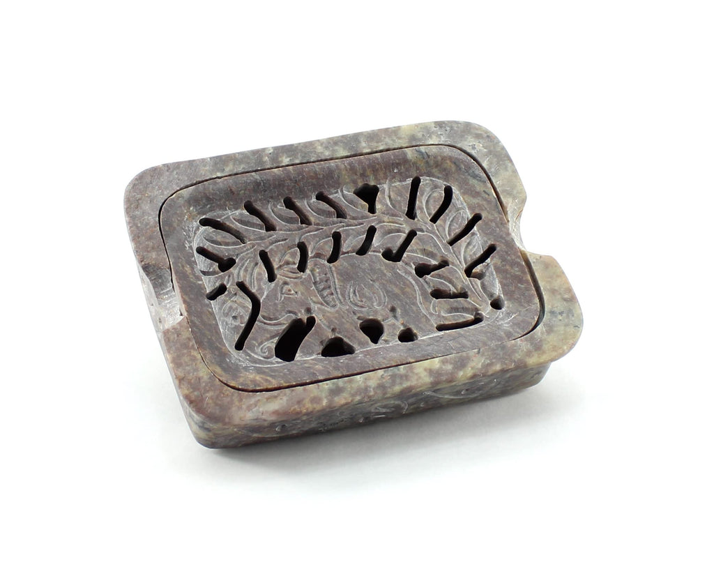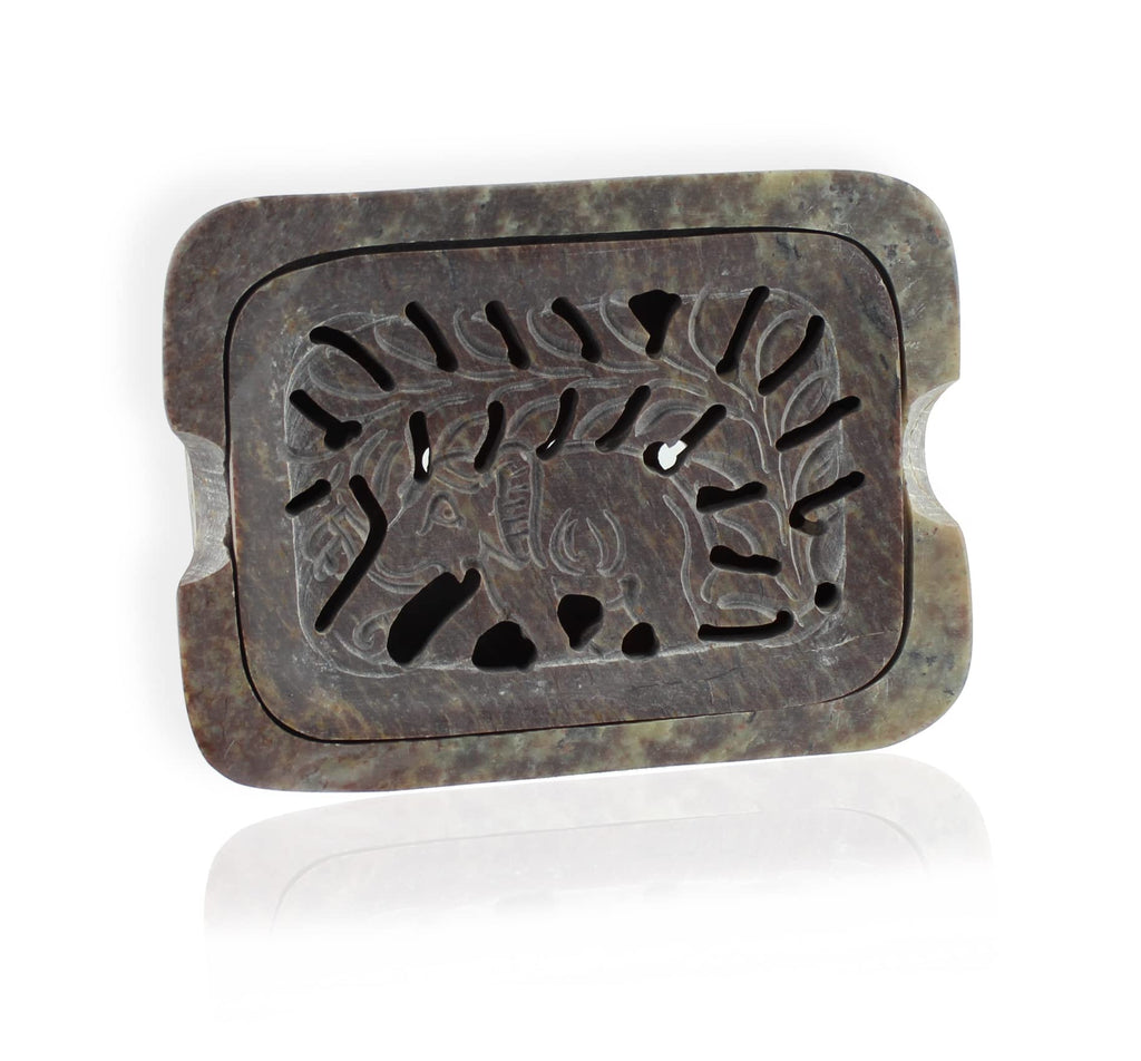 • Sie erhalten eine Seifenschale / Seifenhalter aus Speckstein Motiv Elefant.