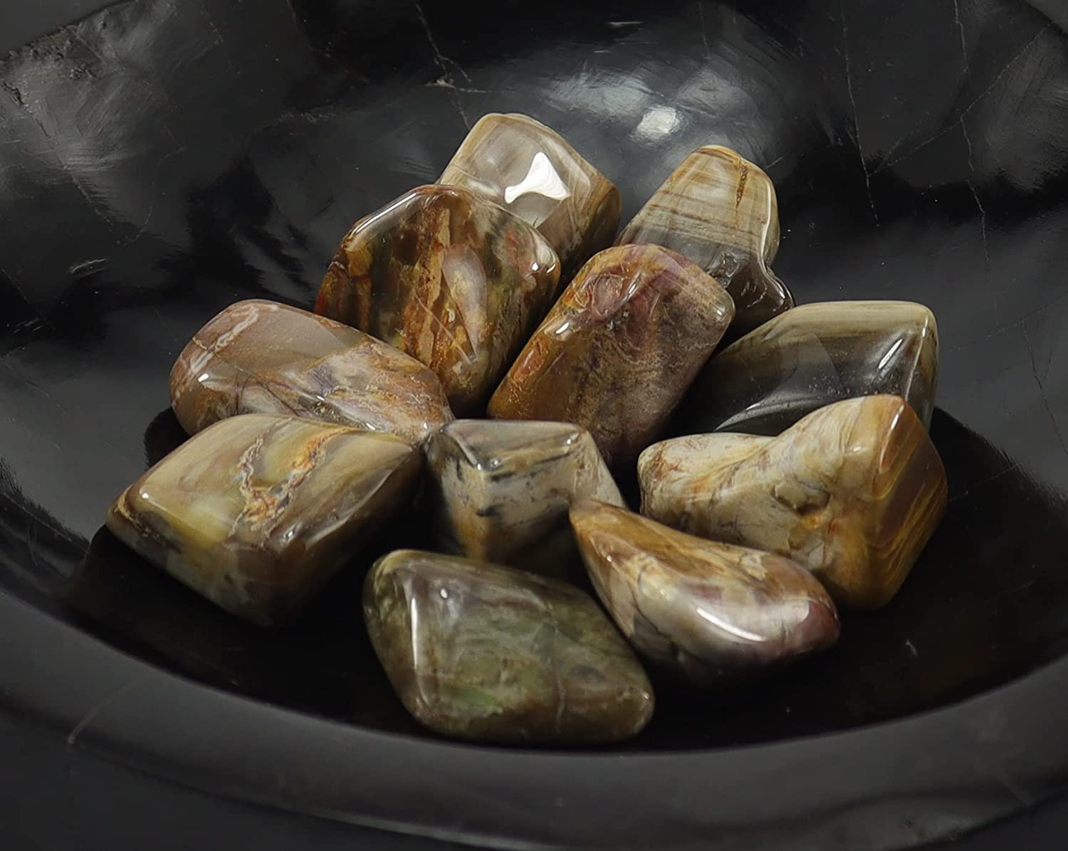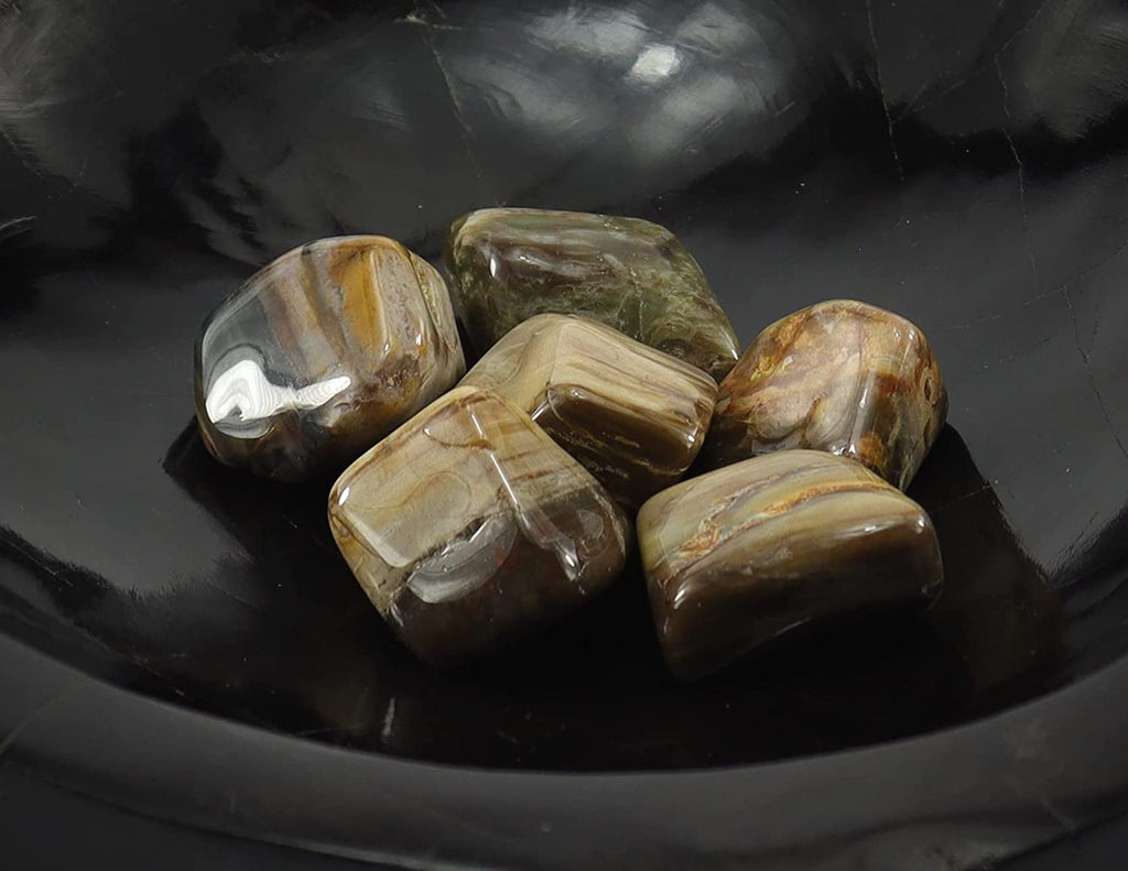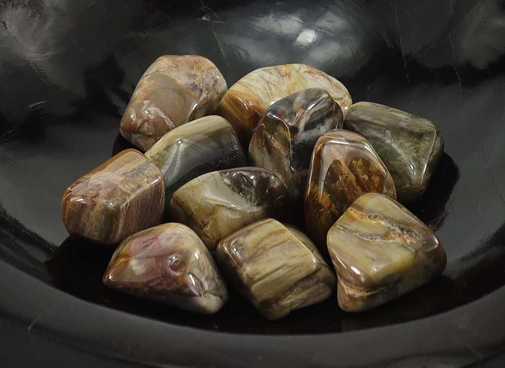 • Sie erhalten hier einen getrommelten Edelstein aus versteinertem Holz.