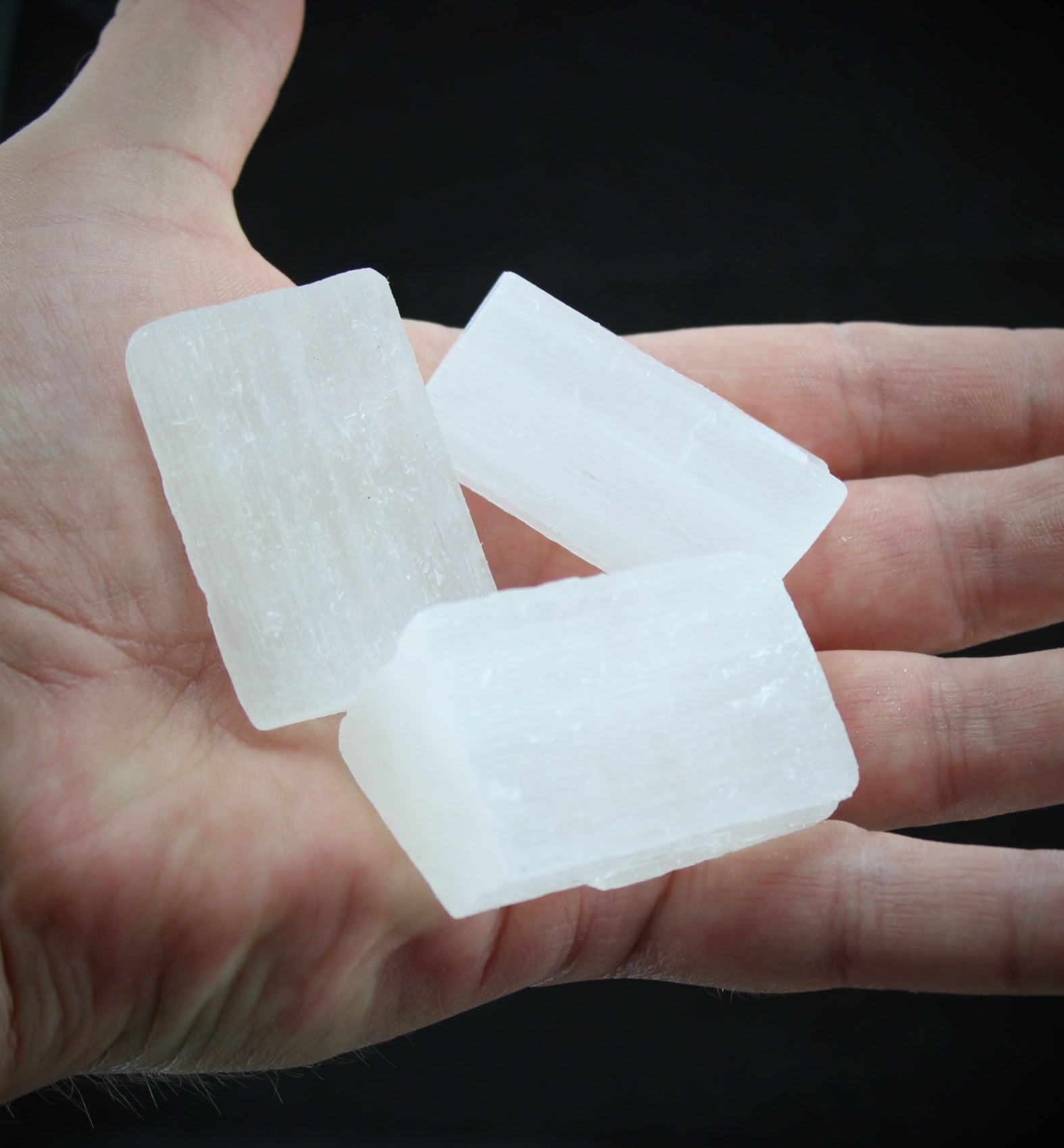 - Sie erhalten einen, 5 oder 30 weiße Selenitkristalle.