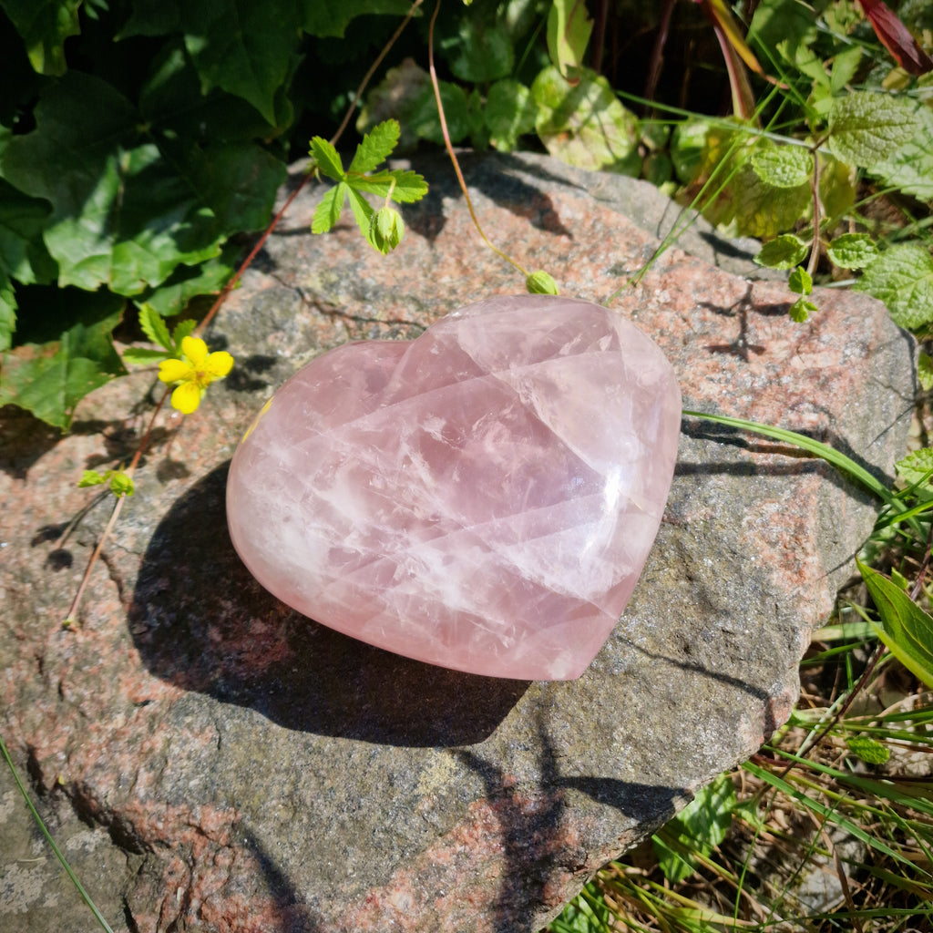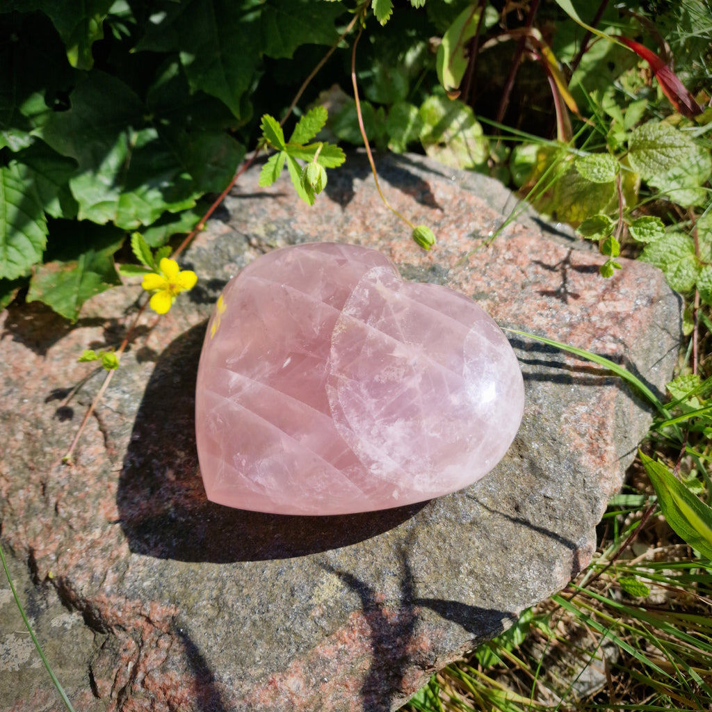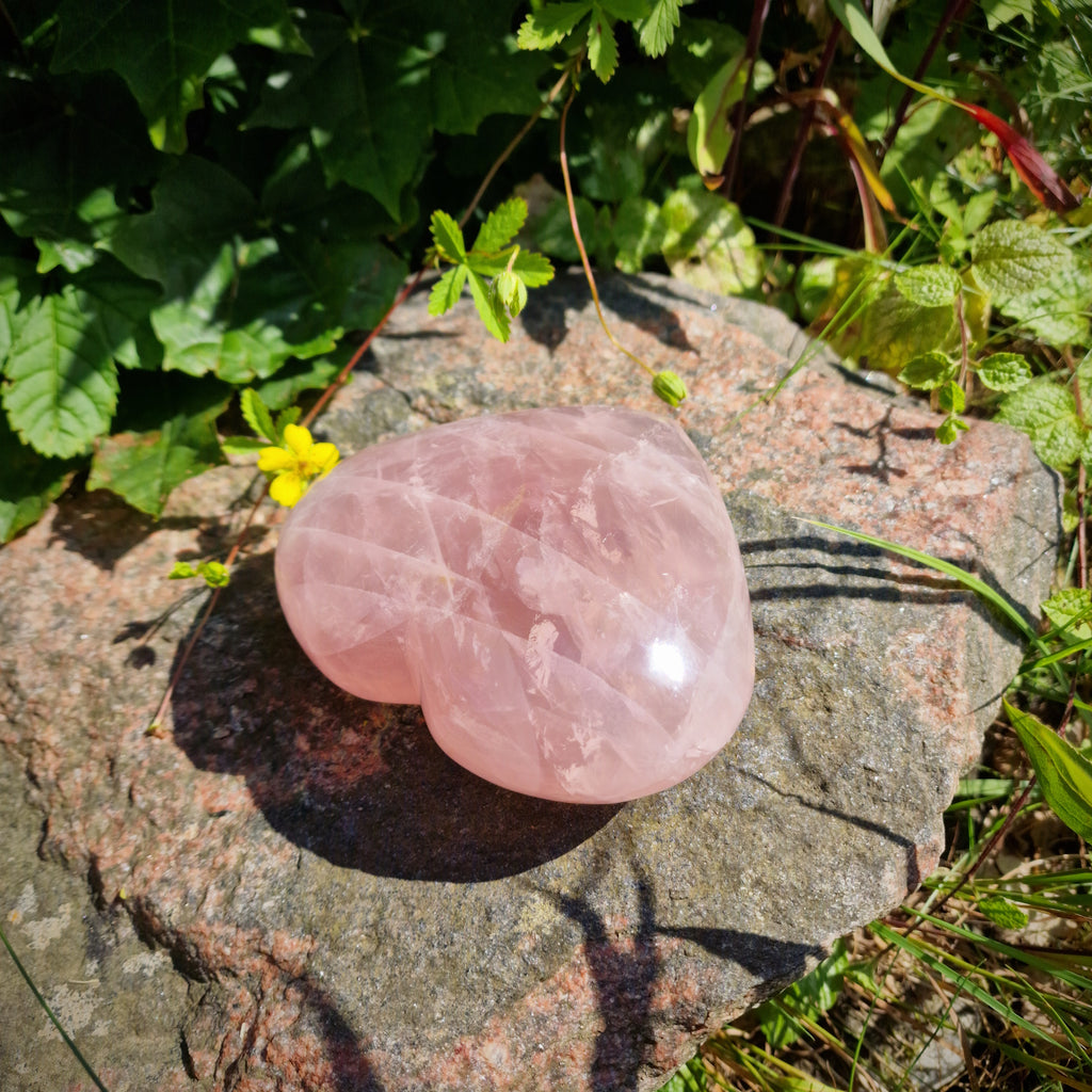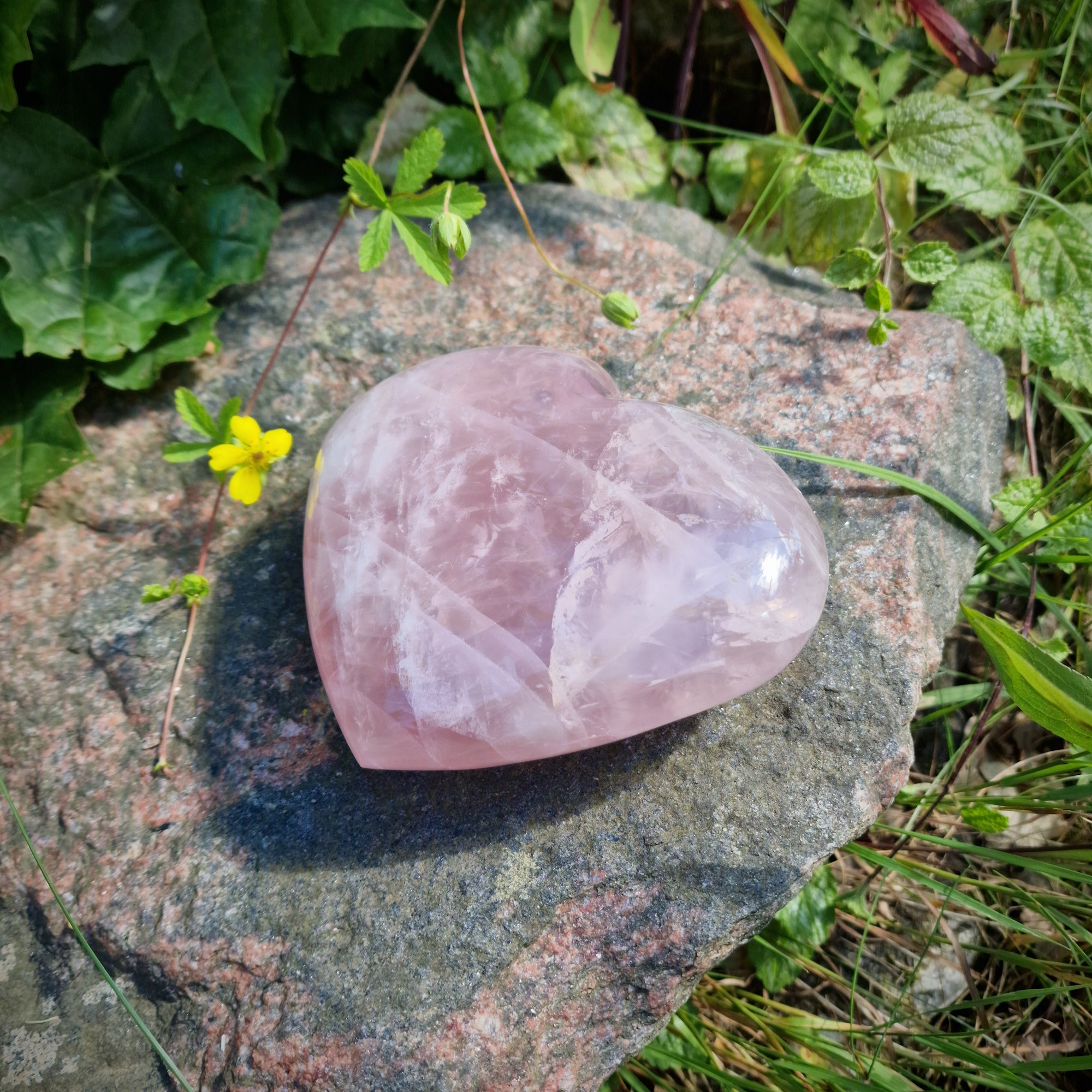 XL Rosenquarz Edelstein Herz Dekoherz Wohnaccessoire Dekoration Handgefertigt ca. 965 g (Madagaskar)