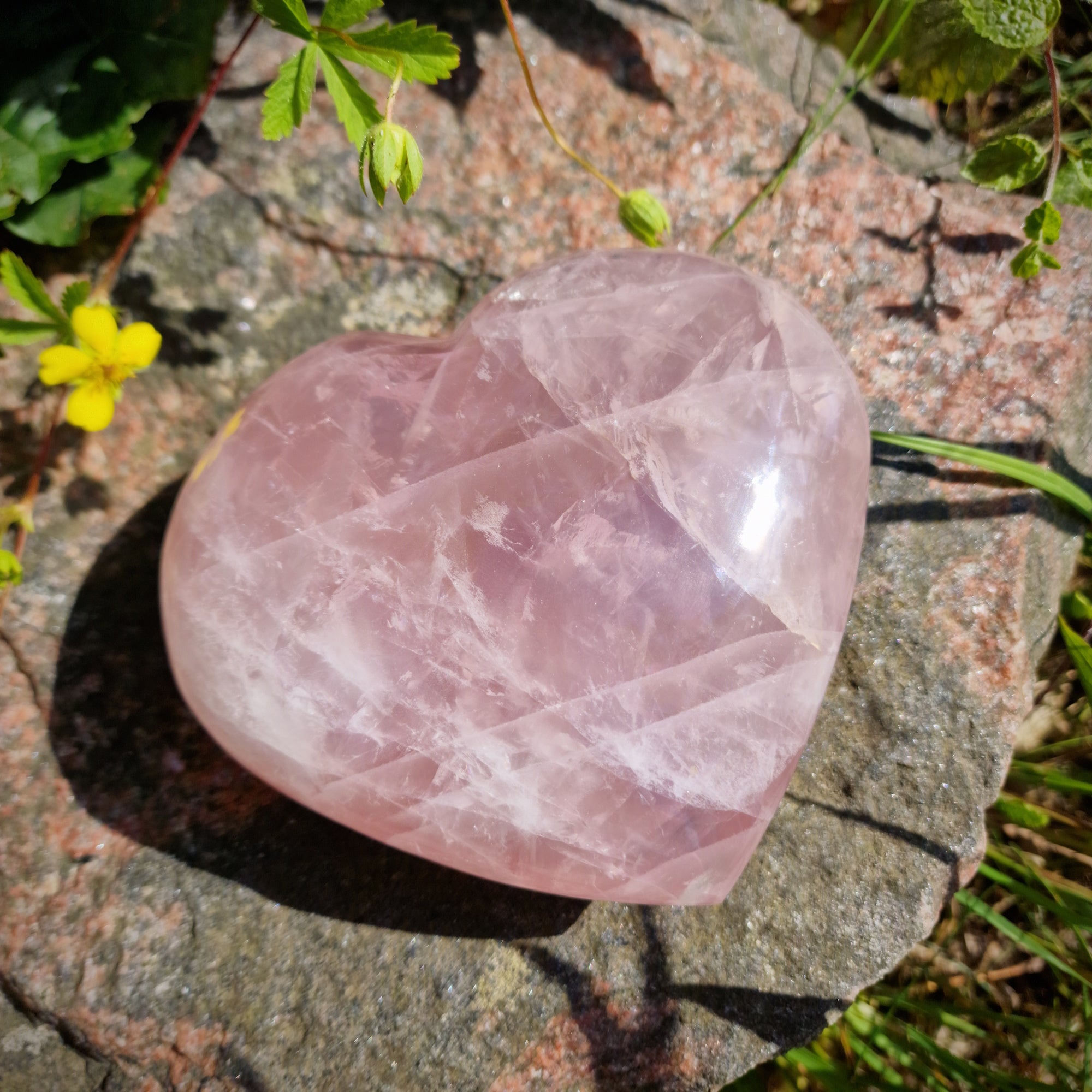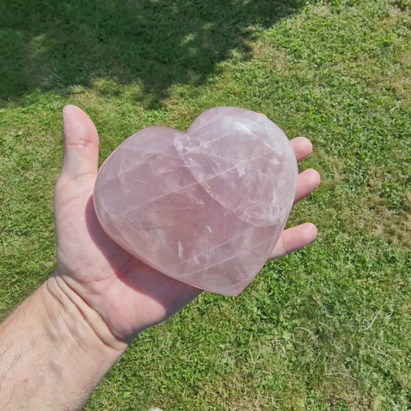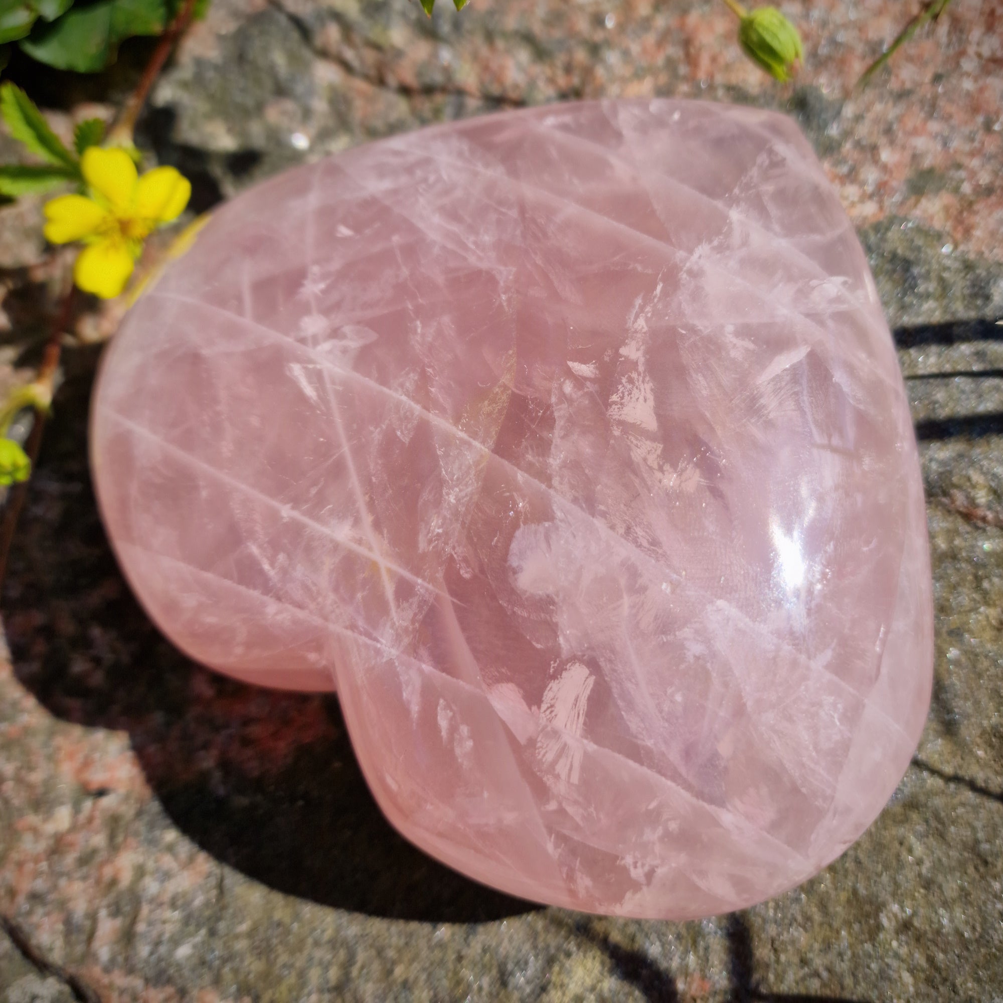 XL Rosenquarz Edelstein Herz Dekoherz Wohnaccessoire Dekoration Handgefertigt ca. 965 g (Madagaskar)