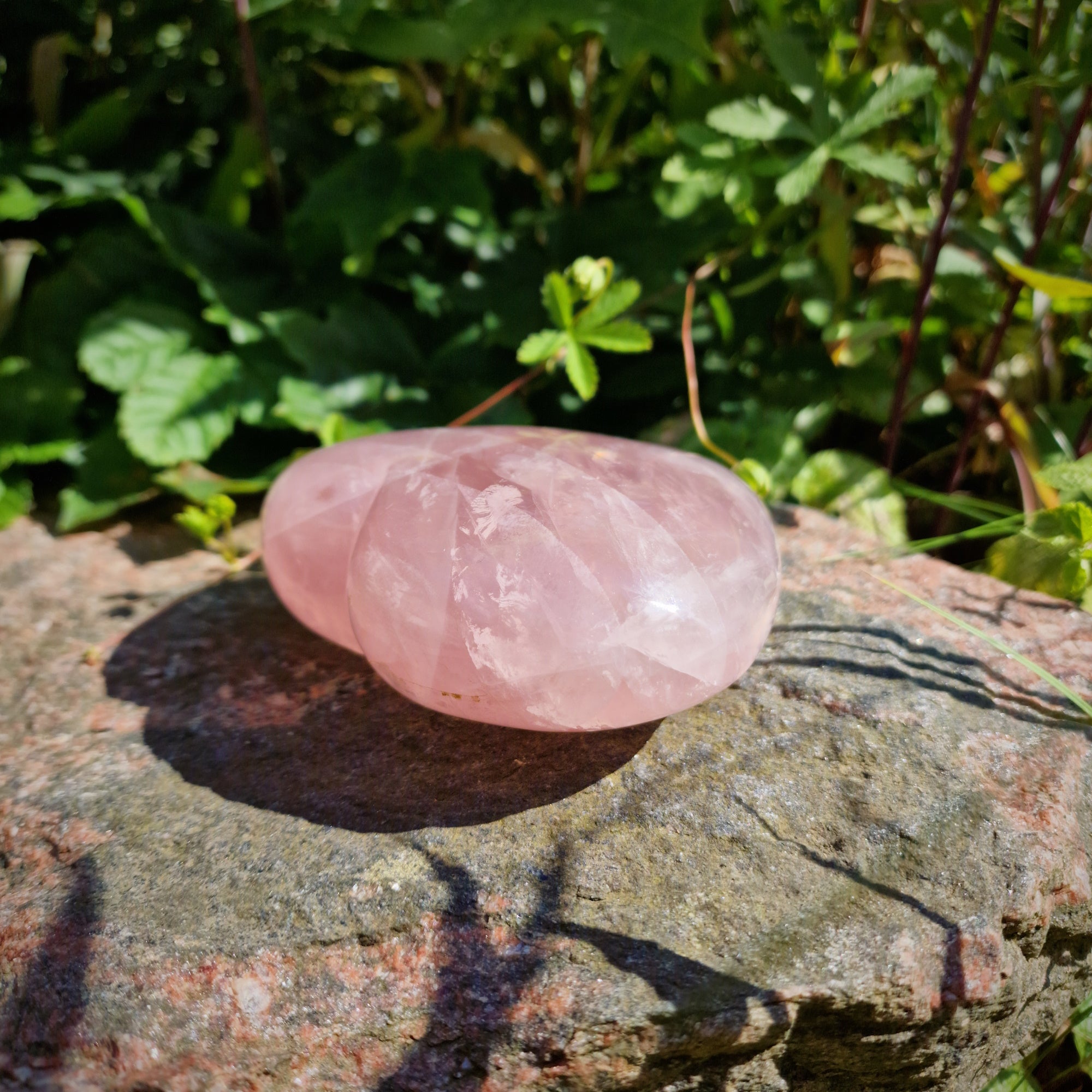 Sie erhalten das abgebildete Herz aus dem Rosenquarz Edelstein vom Foto.